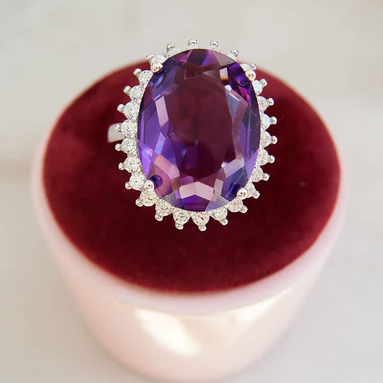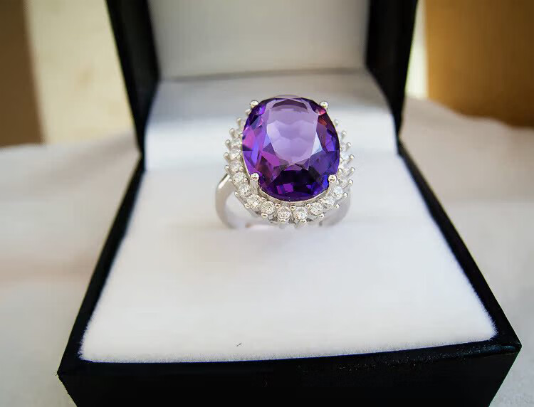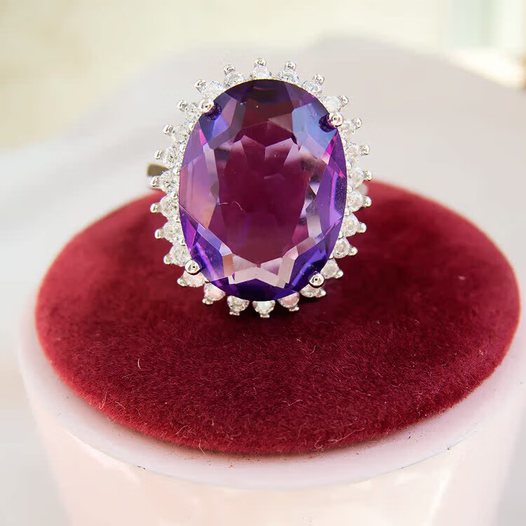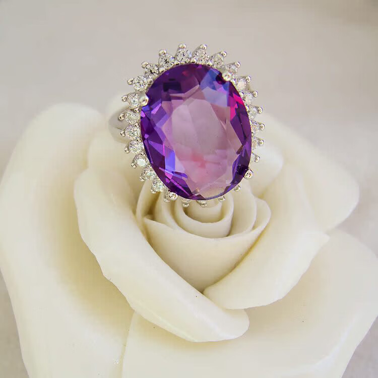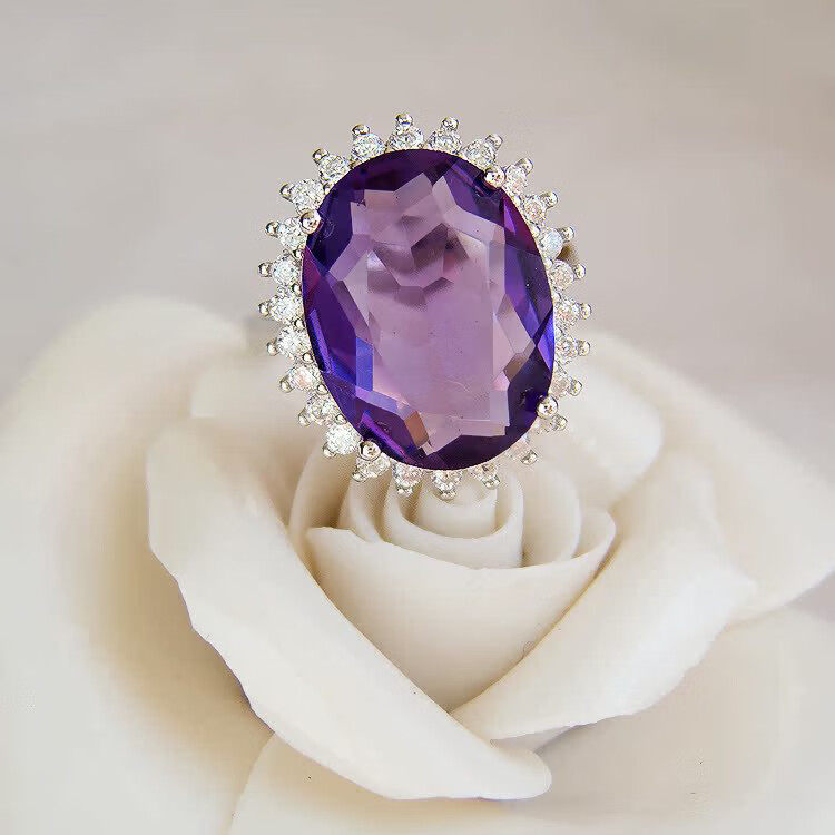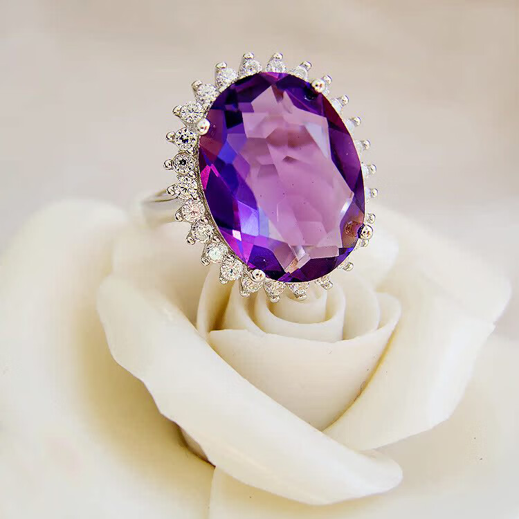 Nevistine Clear AAA Amethyst Ring Women's 925 Silver Large Crystal Gemstone Index Finger Ring 520 Gift Women's Amethyst Ring