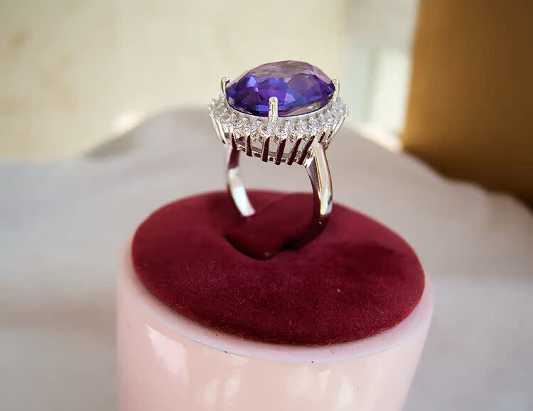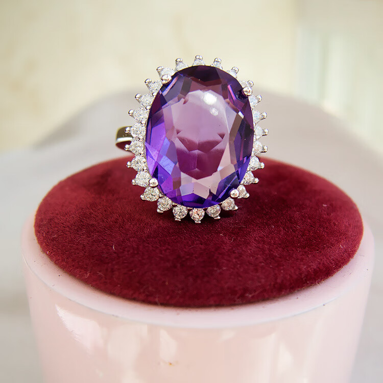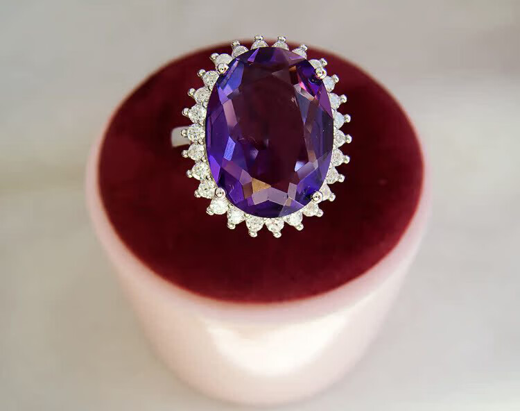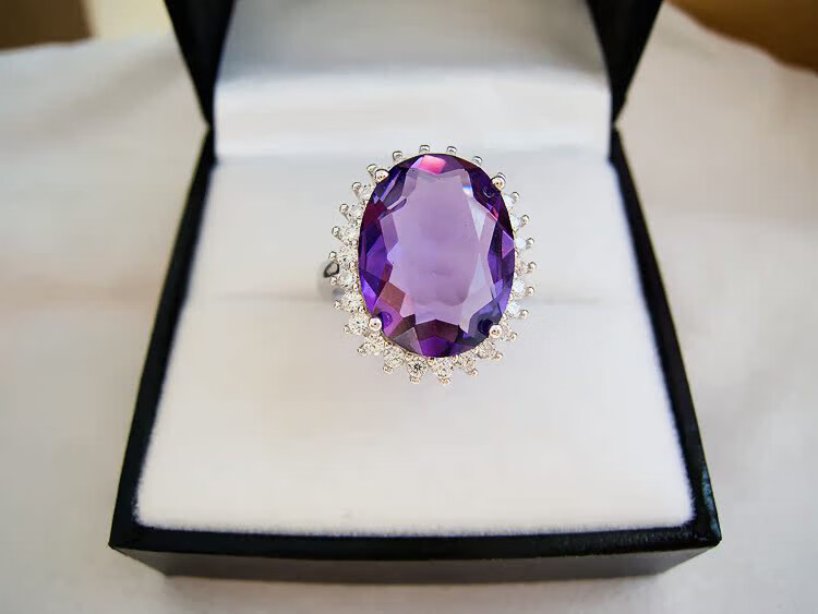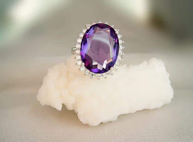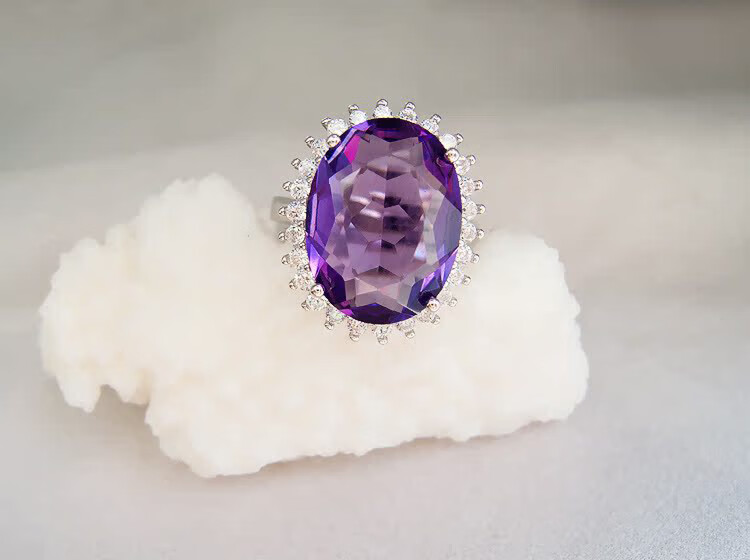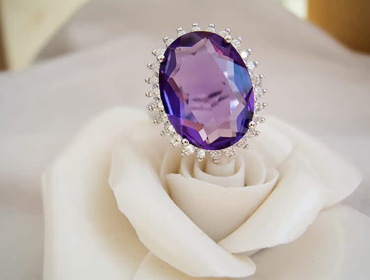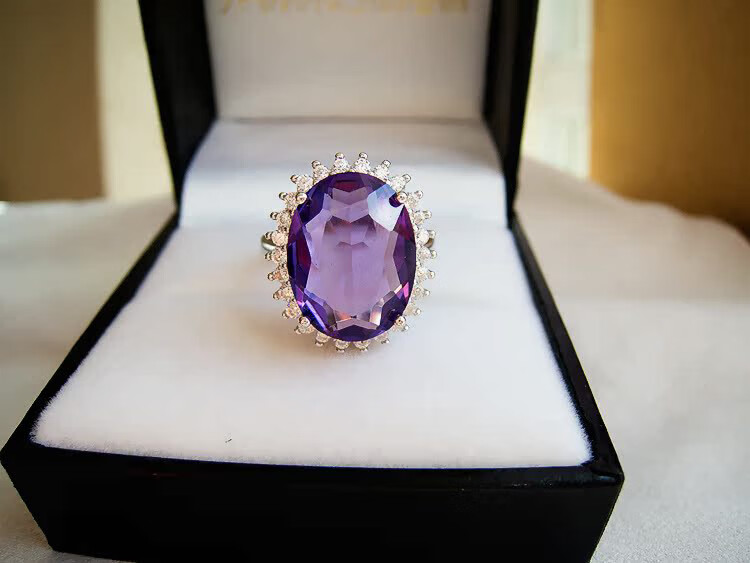 Nevistine Clear AAA Amethyst Ring Women's 925 Silver Large Crystal Gemstone Index Finger Ring 520 Gift Women's Amethyst Ring