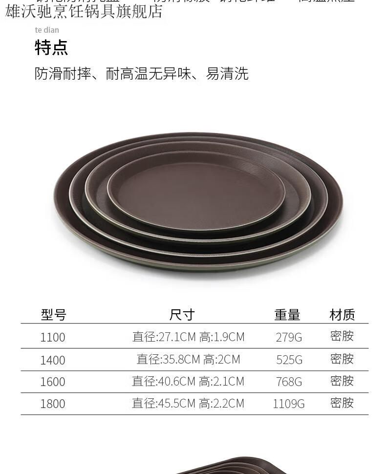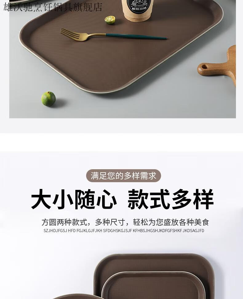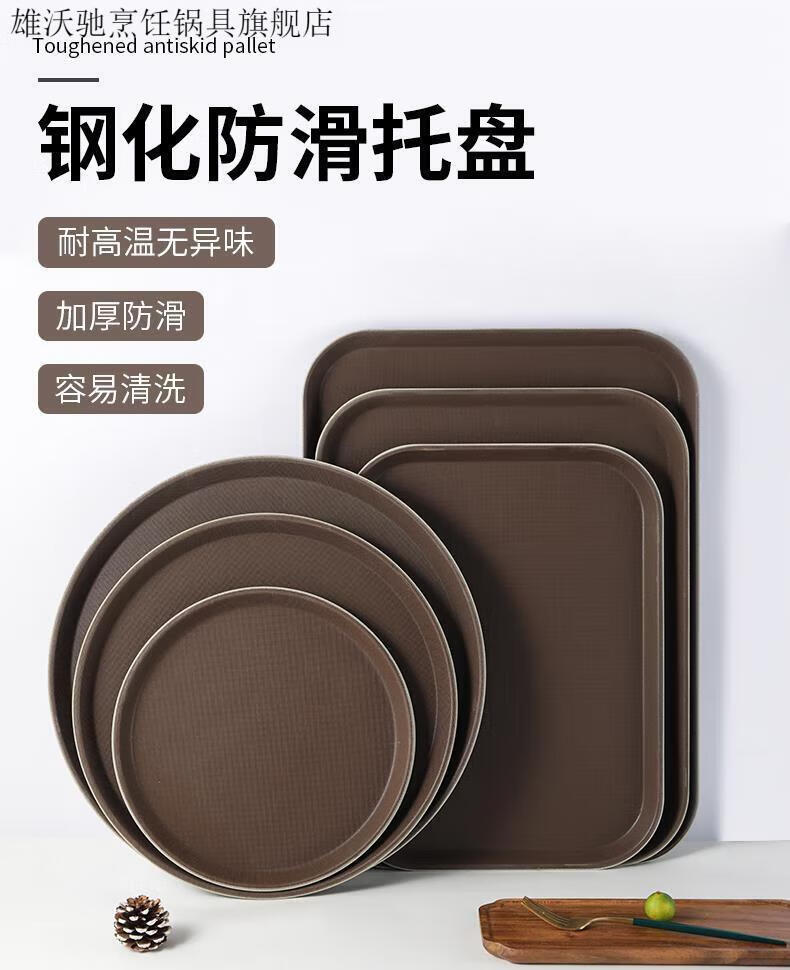 Xiongwochi non-slip plastic tray rectangular bar restaurant serving tray hotel supplies tableware round commercial 1400 round