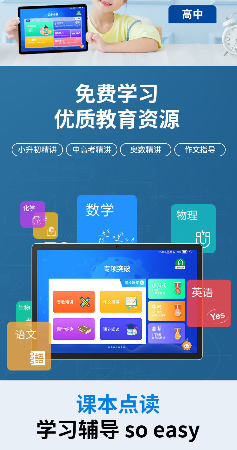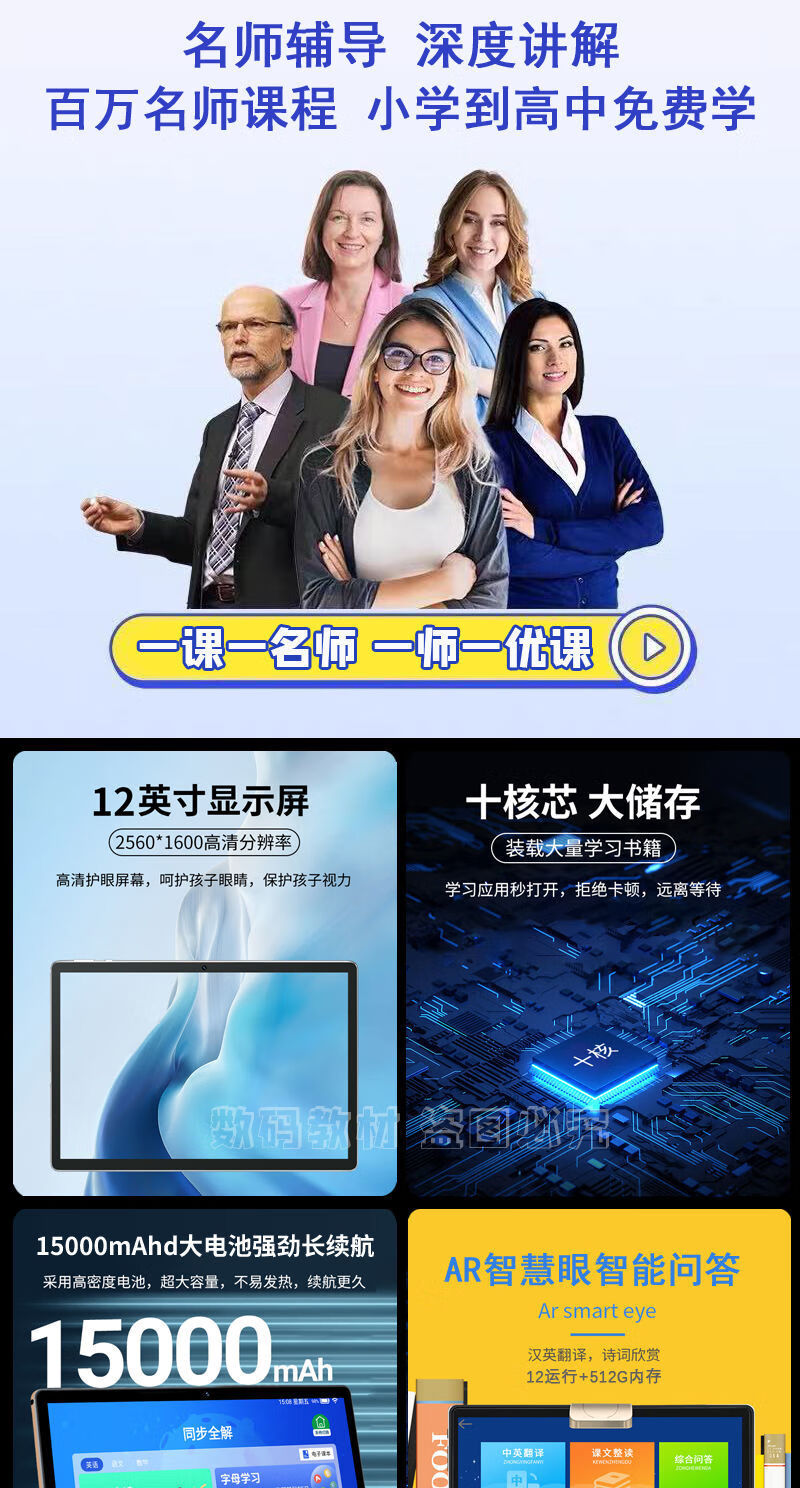 New product 12-inch paper-like eye protection screen primary school to high school comprehensive reading tutoring student learning machine tablet blue 128G regular version comes with leather case and stylus