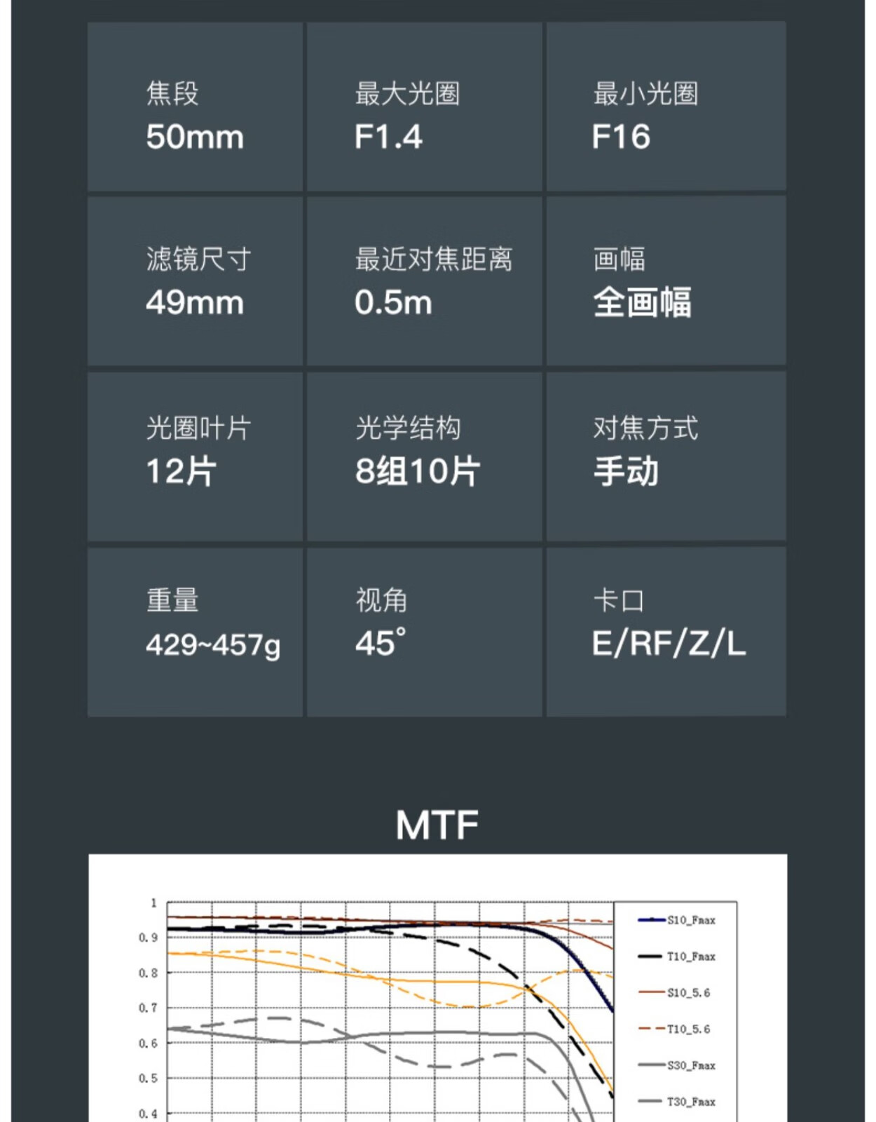 Mingjiang 50mm f1.4 full-frame fixed focus lens, large aperture portrait, mirrorless domestic GM manual full-frame, manual focus, Nikon Z mount, official standard, free UV+ND