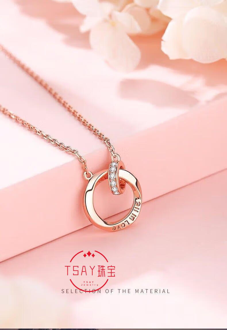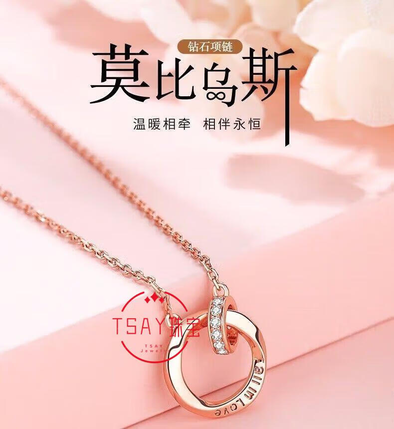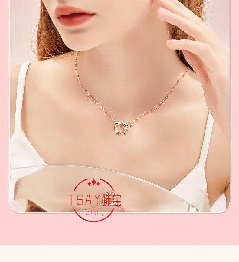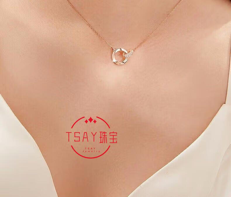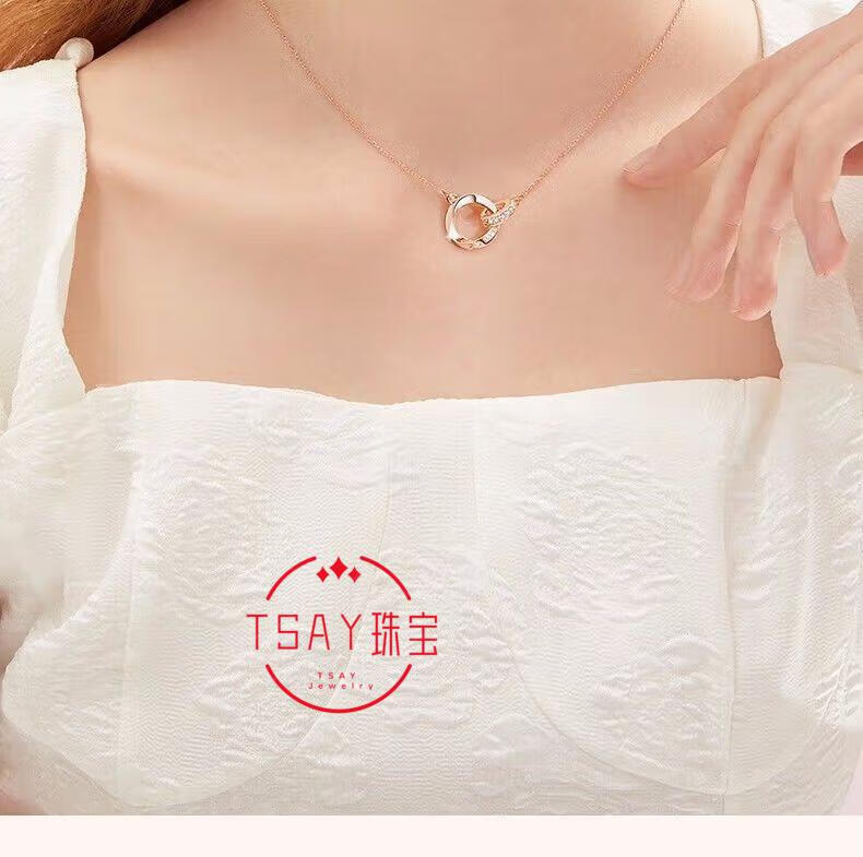 DL 1998 Fat Donglai same style pt950 platinum double ring necklace for women new rose gold long lasting pendant AU750 lock small waist platinum necklace + gift box 3.68g x 45cm