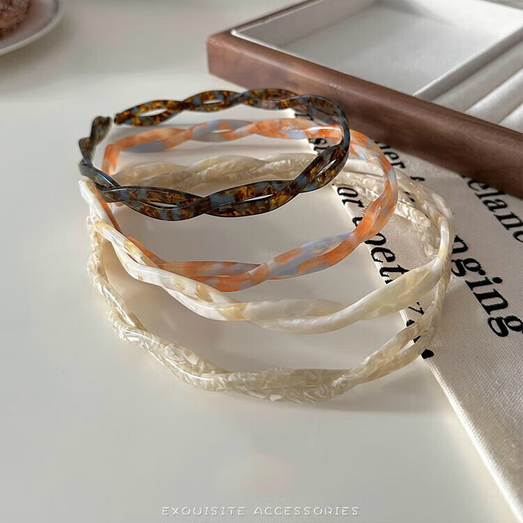 Xiao Panda Zhao Lusi's same style acetic acid twist headband for women 2025 new temperament versatile hair accessories non-slip pressure hair band toothed headband Zhao Lusi blue brown