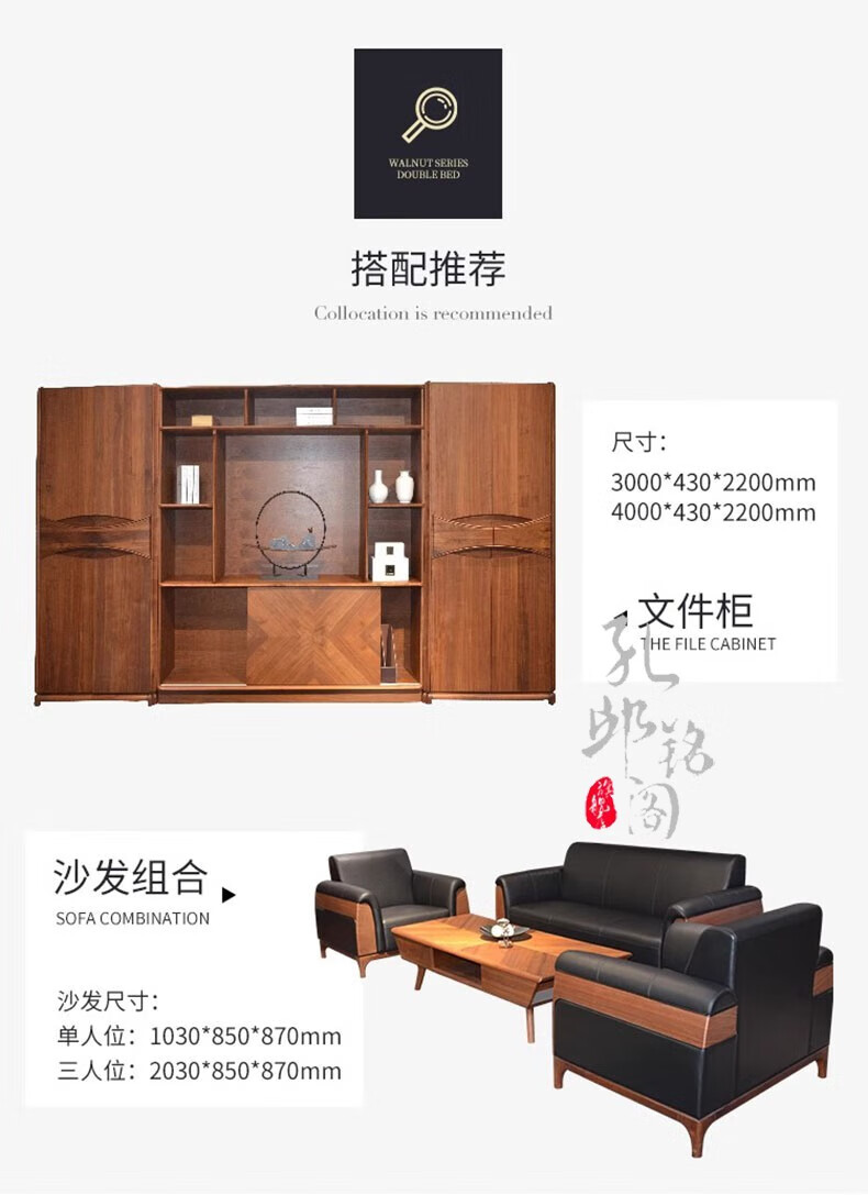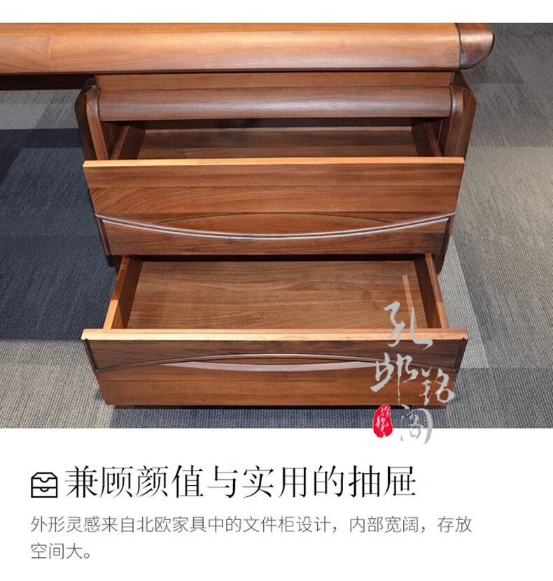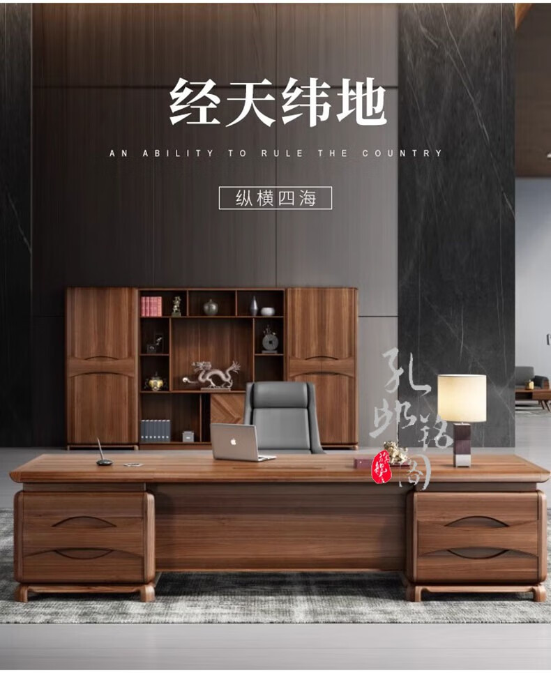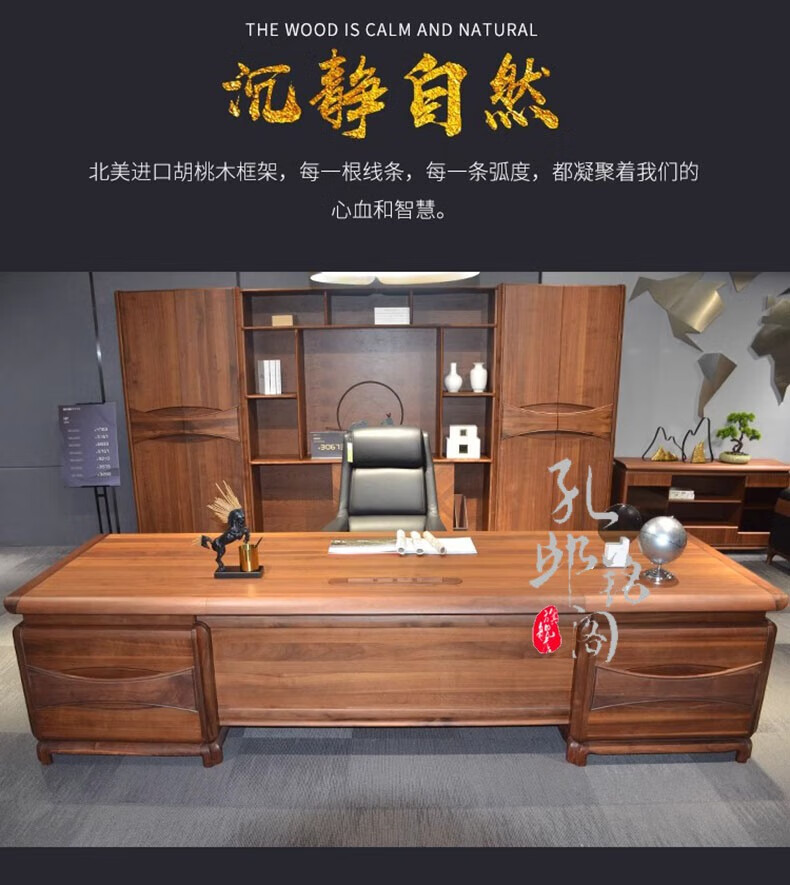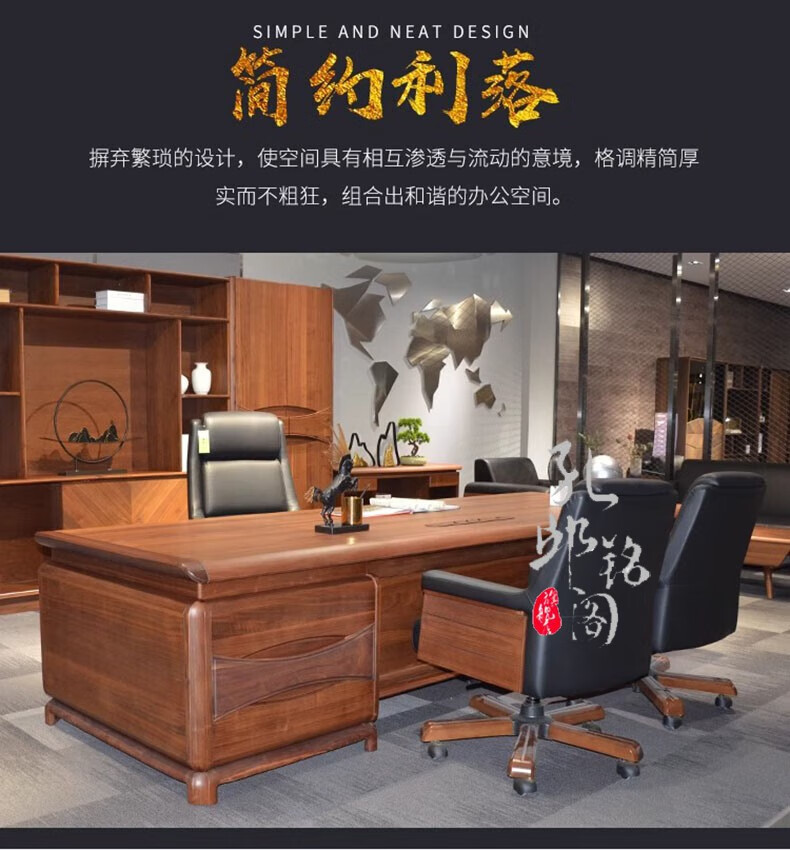 Kong Qiu Mingge high-end solid wood office desk and chair boss table light luxury new Chinese walnut president table executive desk manager table combination 2.4 meters boss table