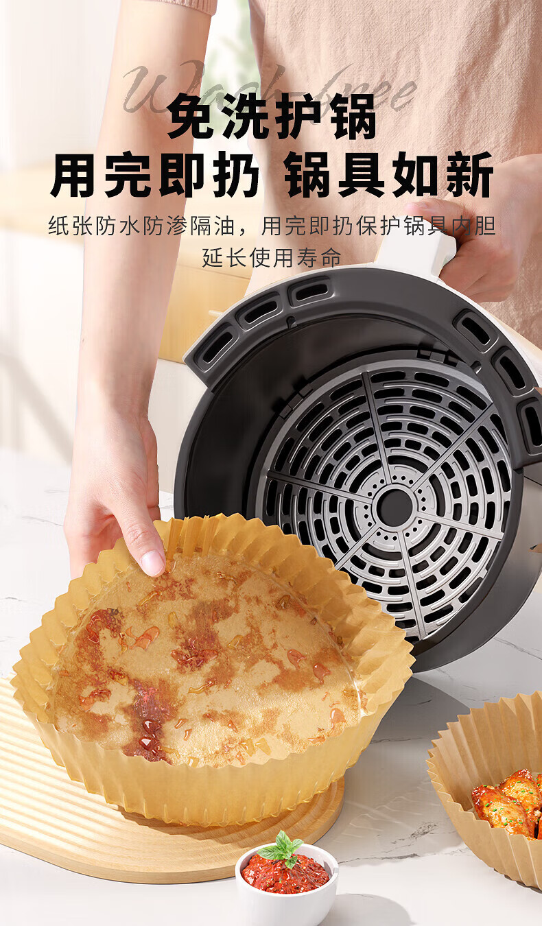TNBROTHERS special paper tray for air fryer, silicone oil paper tray for frying pan, household baking oil-absorbing paper pad, barbecue paper, large size 20 sheets (for 3-5 liters, diameter 16cm)