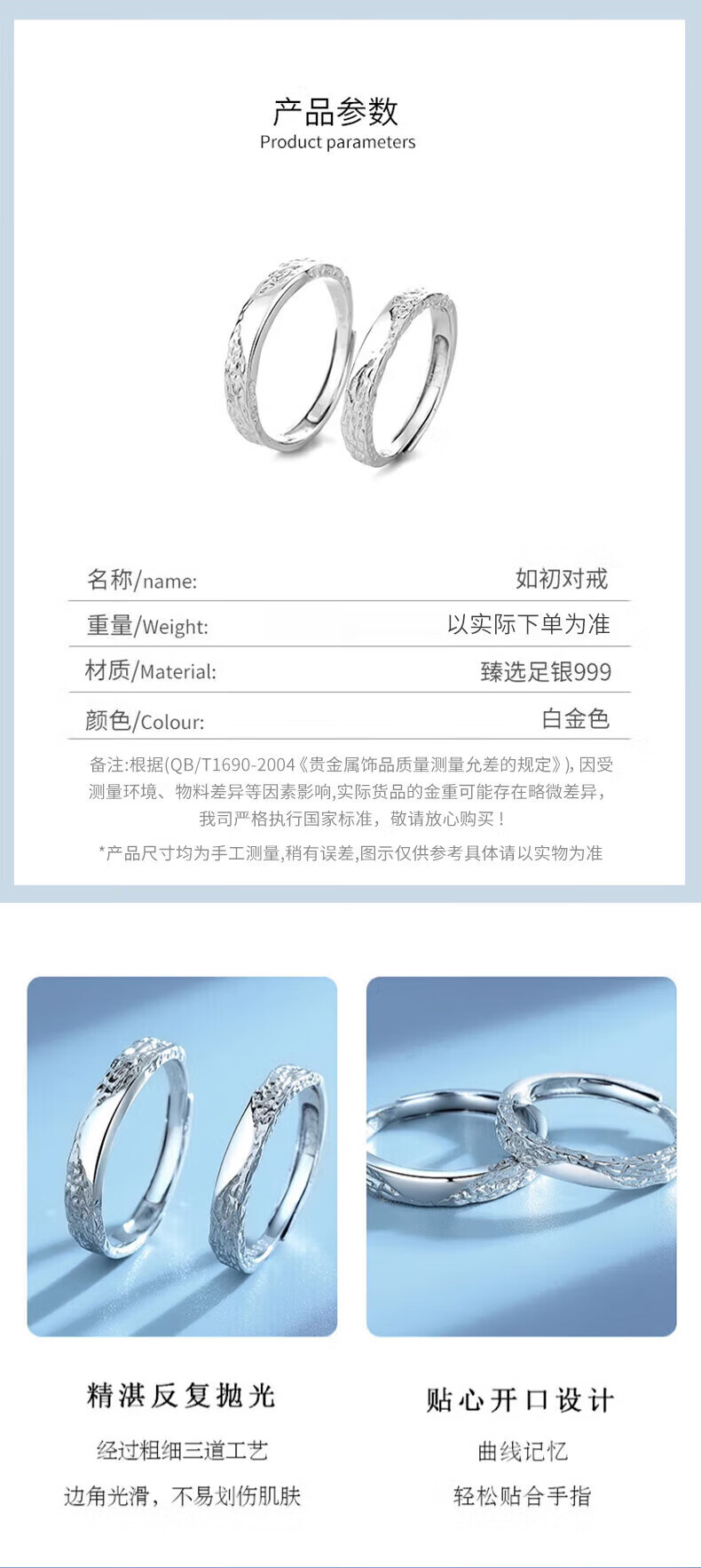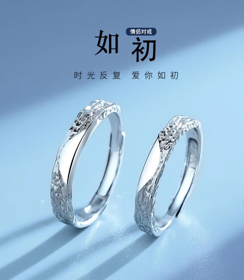 China Gold (CHINA GOLD) S999 Silver Love You As Ever Couple Ring Men and Women Live Mouth Rings Valentine's Day Practical Birthday Gift Commemoration Jingsuda* Love You As Ever Ring Couple Pair