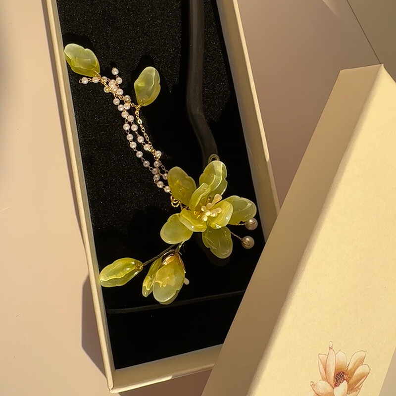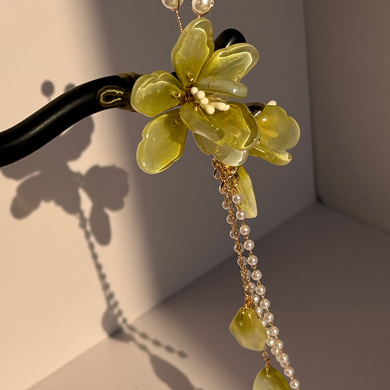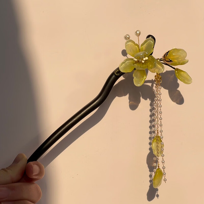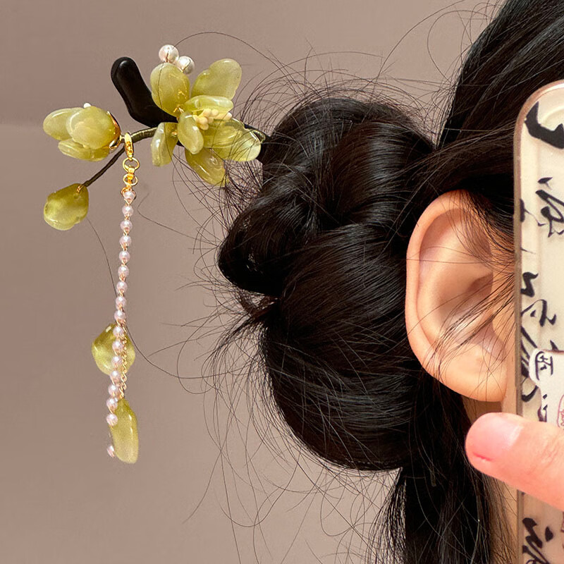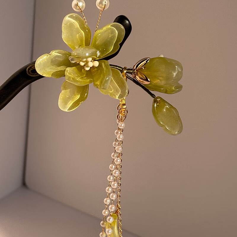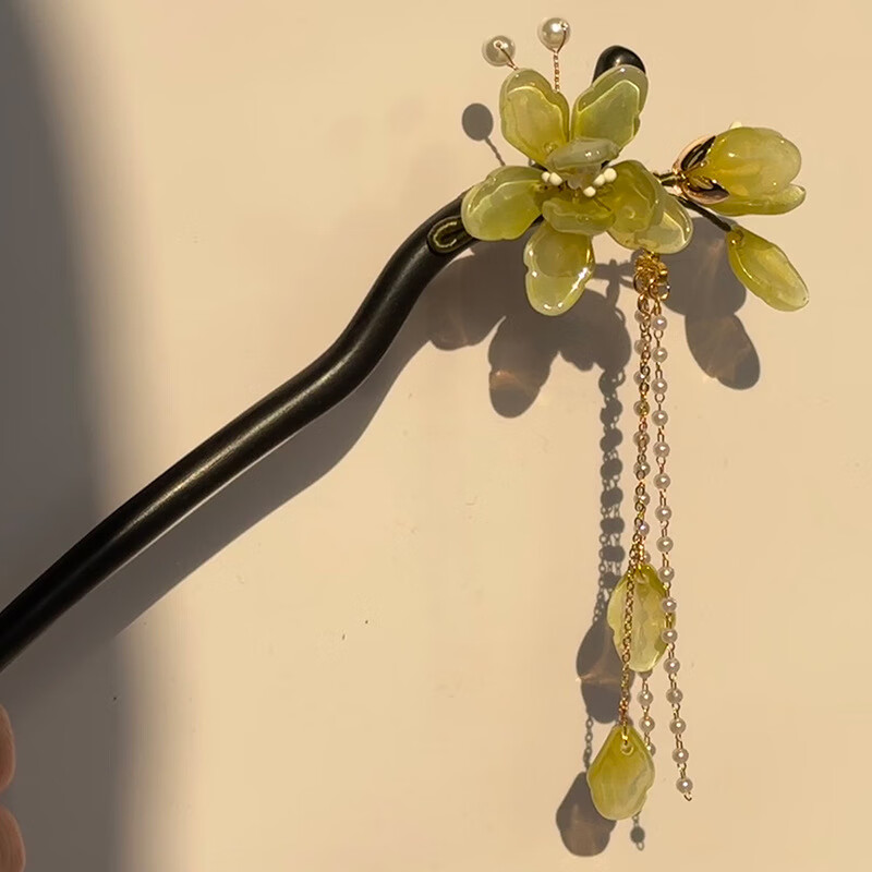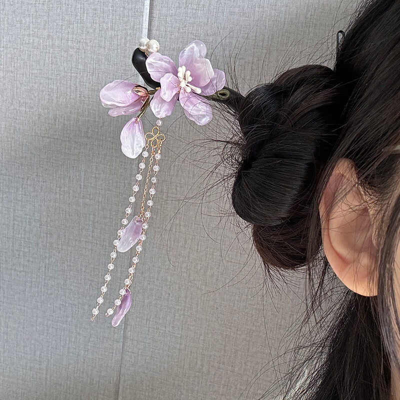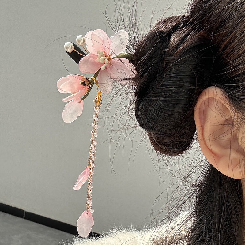 Miande hairpin original national style ancient style daily updo new Chinese style glazed hairpin Hanfu cheongsam headdress Taoyao-light pink with tassels