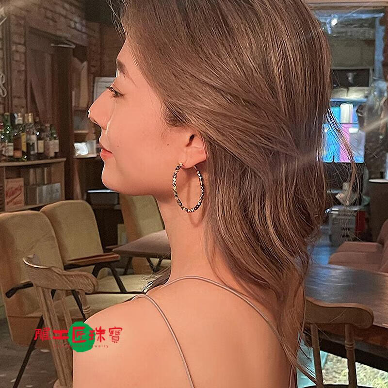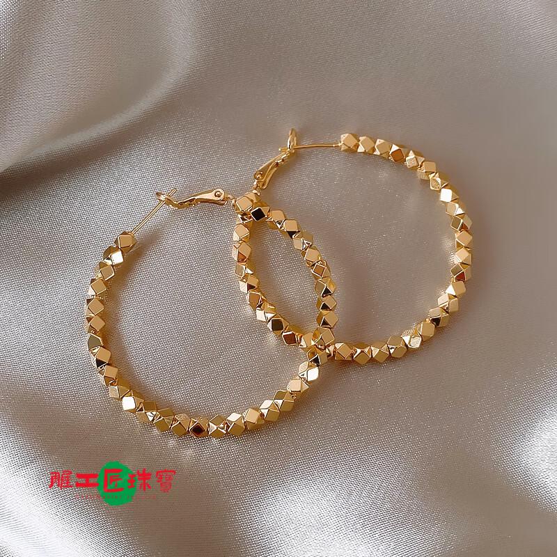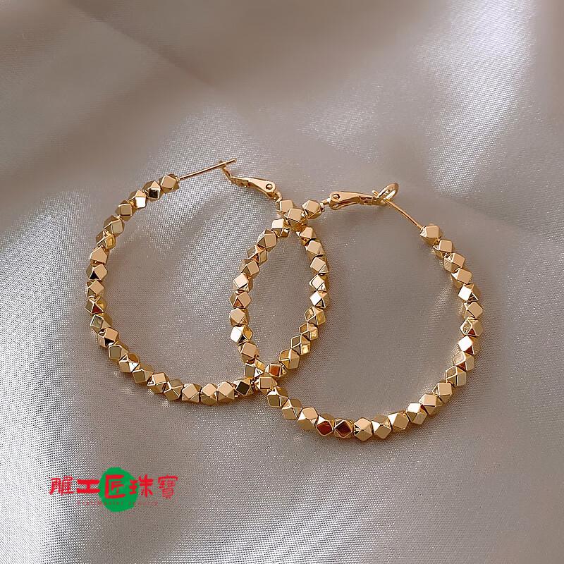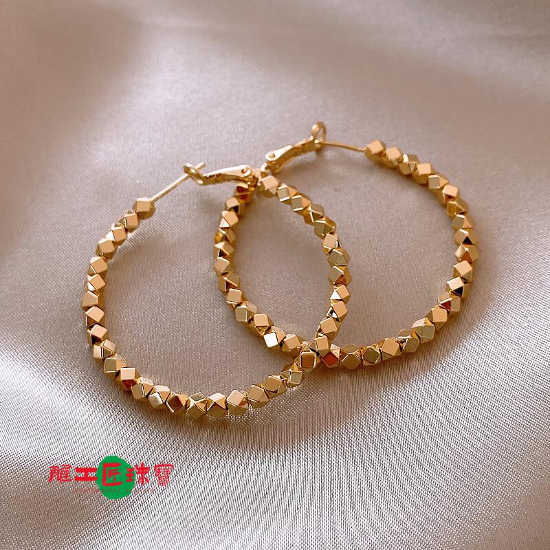 Fat Donglai's same style 18k gold large hoop earrings 2024 new k gold plain hoop women's hoop color gold gold design diameter 4cm