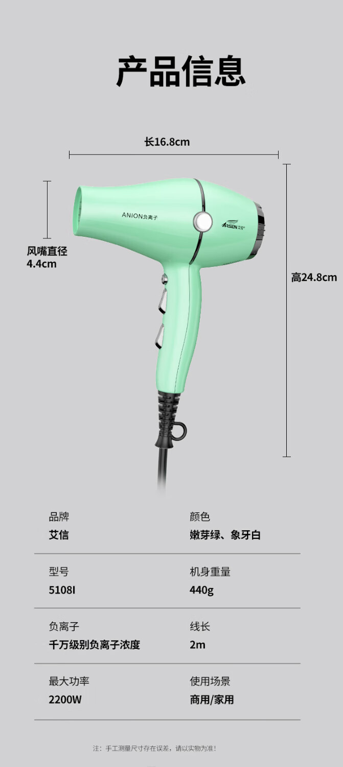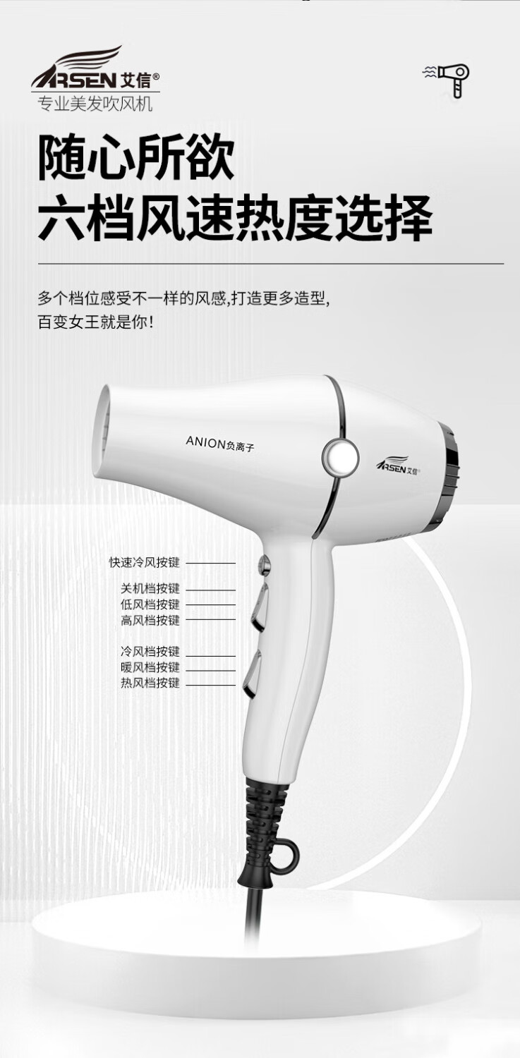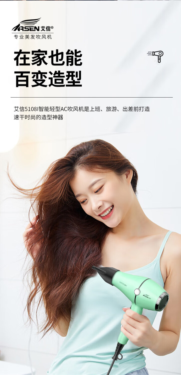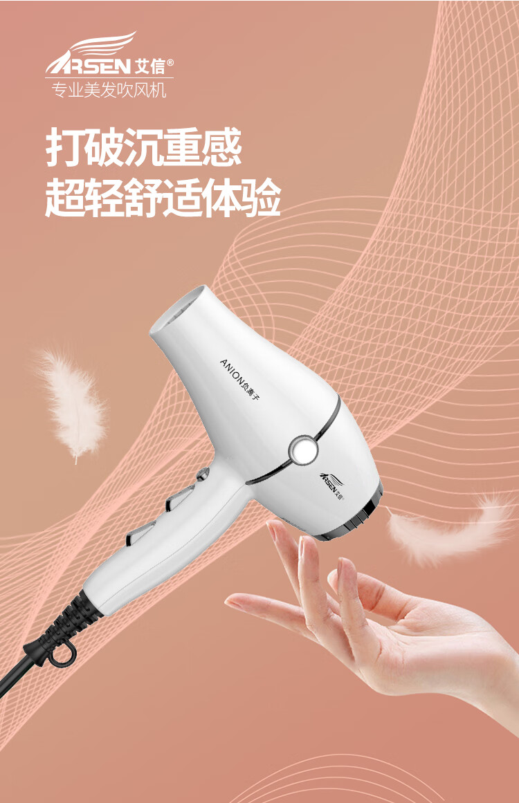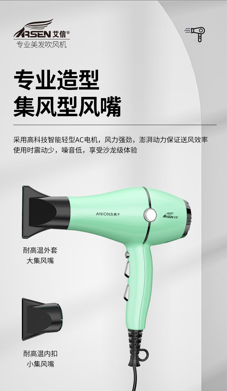 Aisin new generation hair dryer for hair salons 5108 hair dryer for hairstylists 2200W high power quick drying barber shop high wind styling household negative ion hair care 5108 white (2000W cost-effective home version 2 meters)