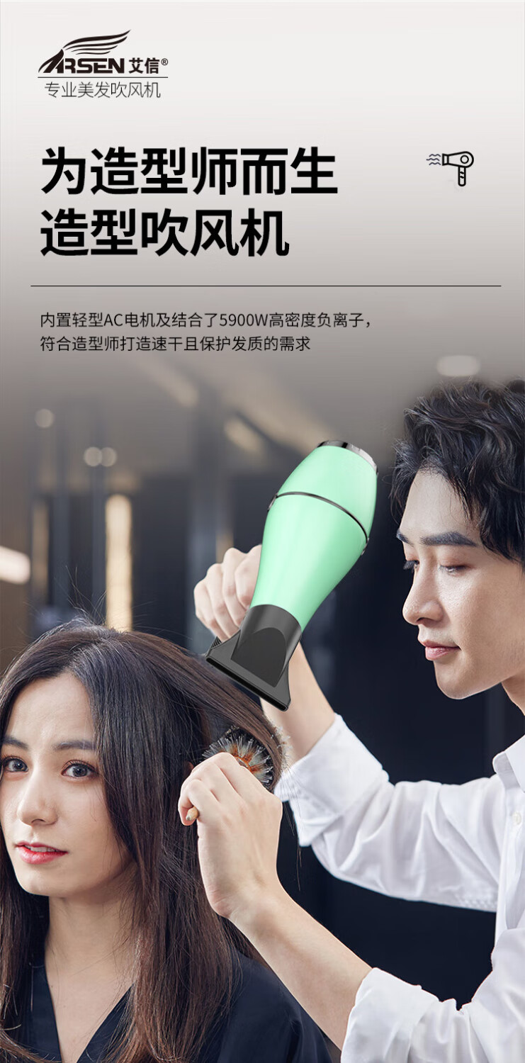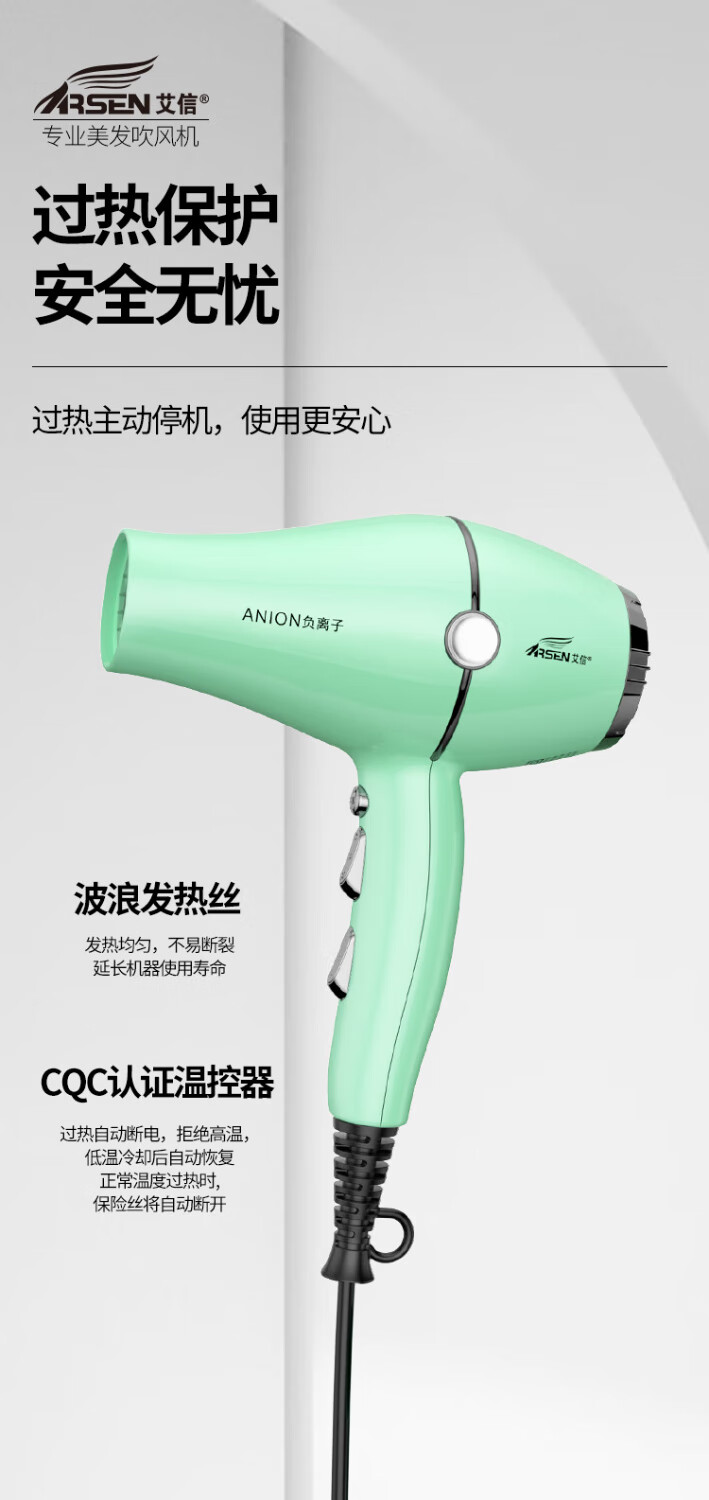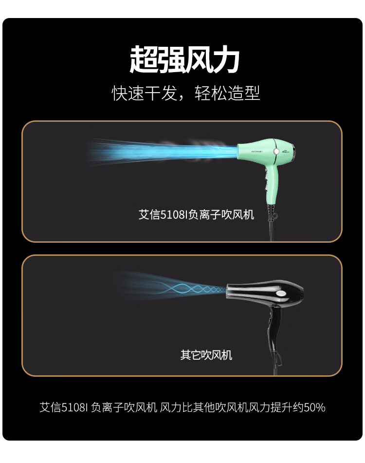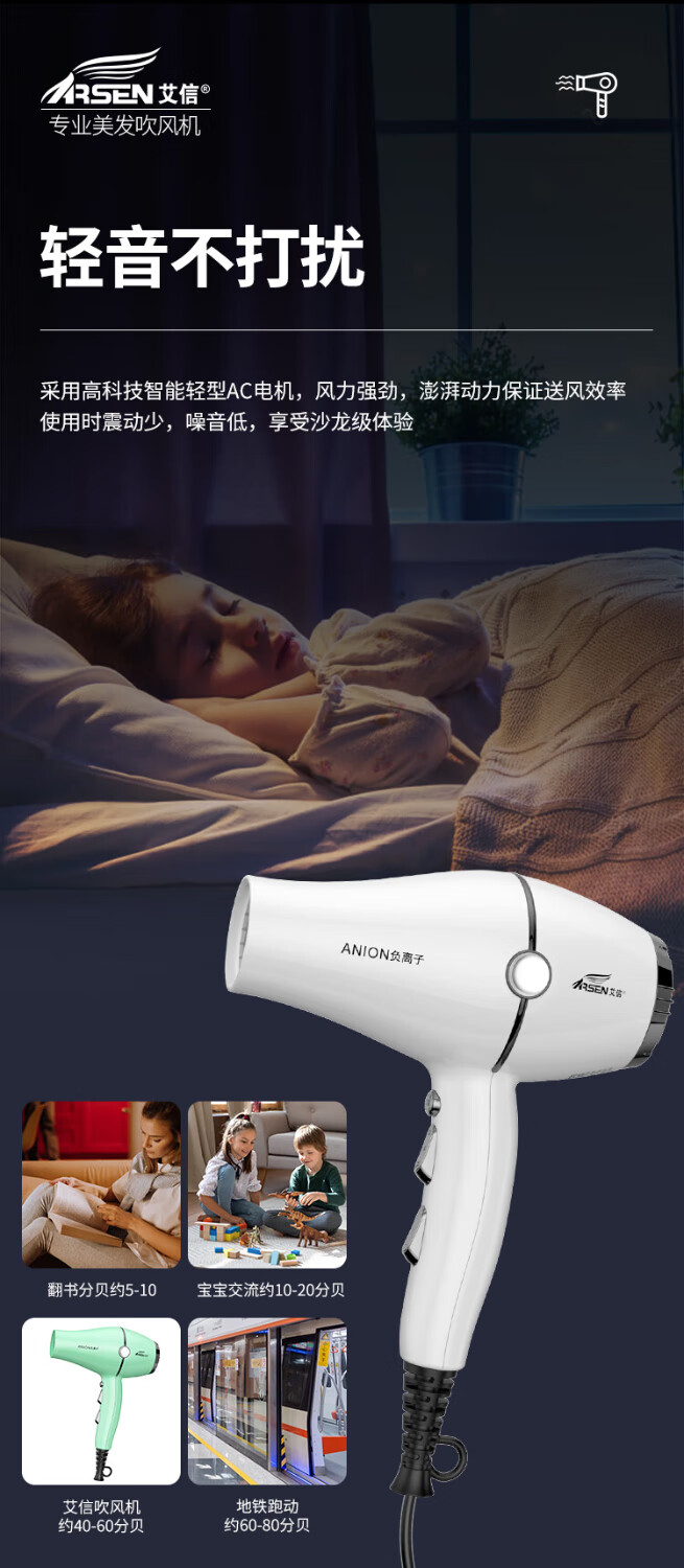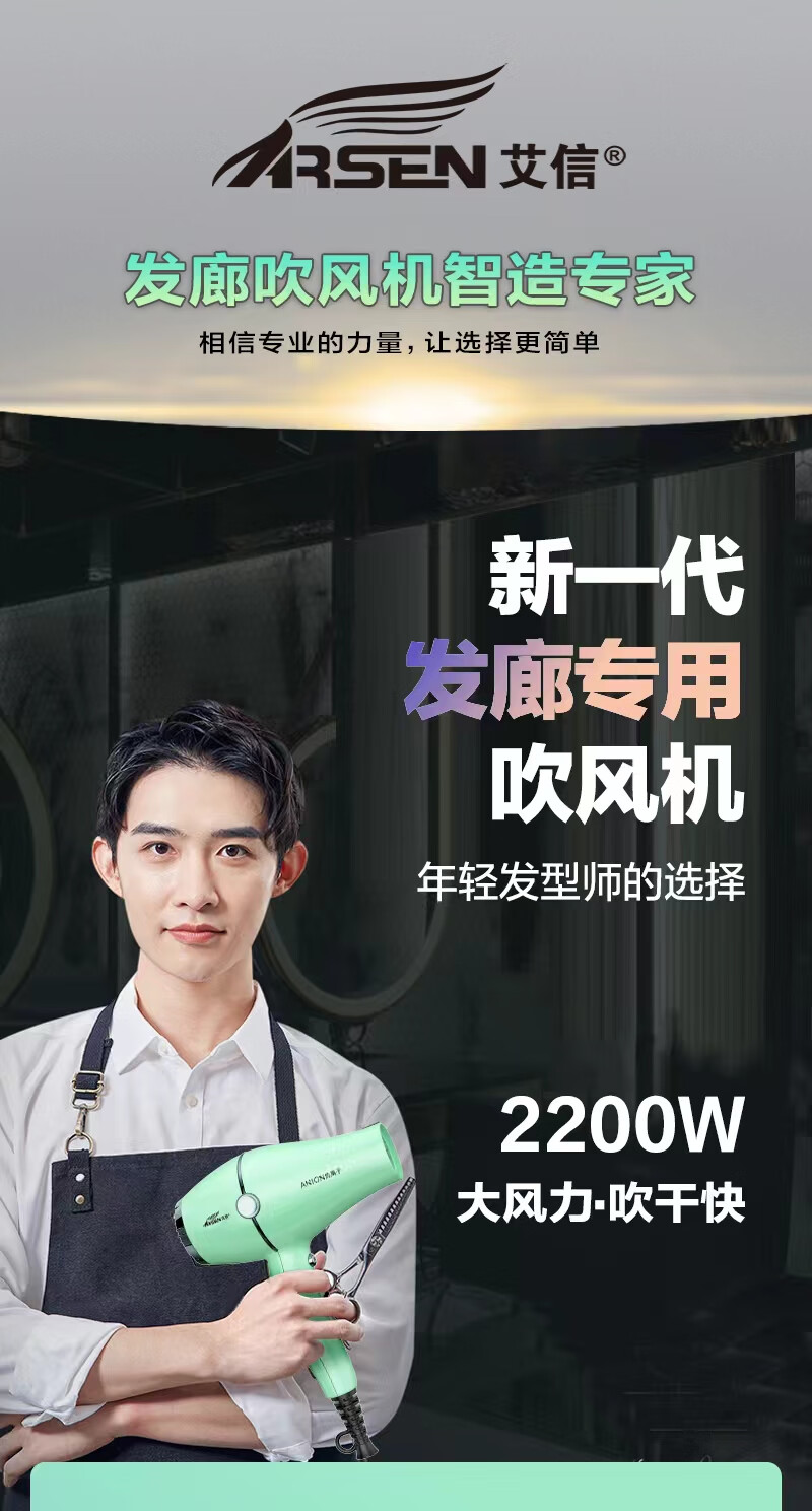Aisin new generation hair dryer for hair salons 5108 hair dryer for hairstylists 2200W high power quick drying barber shop high wind styling household negative ion hair care 5108 white (2000W cost-effective home version 2 meters)