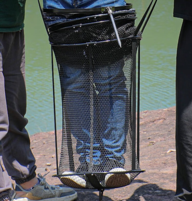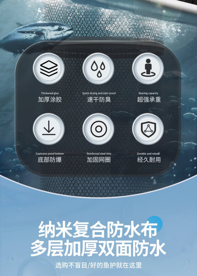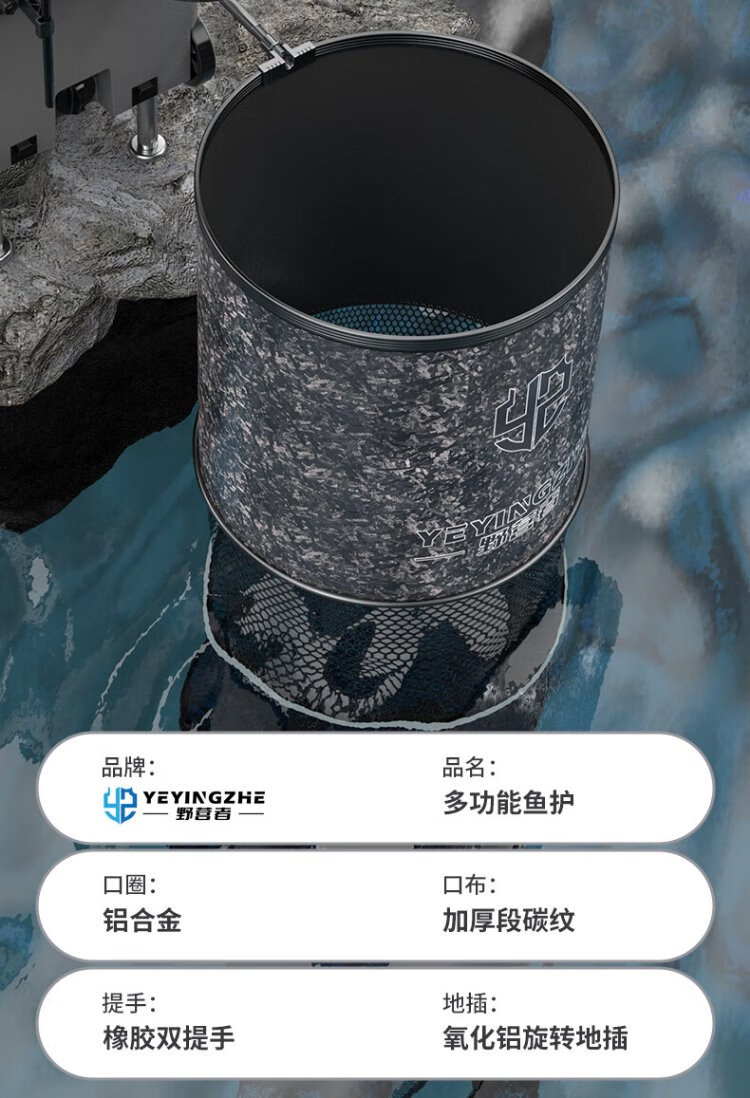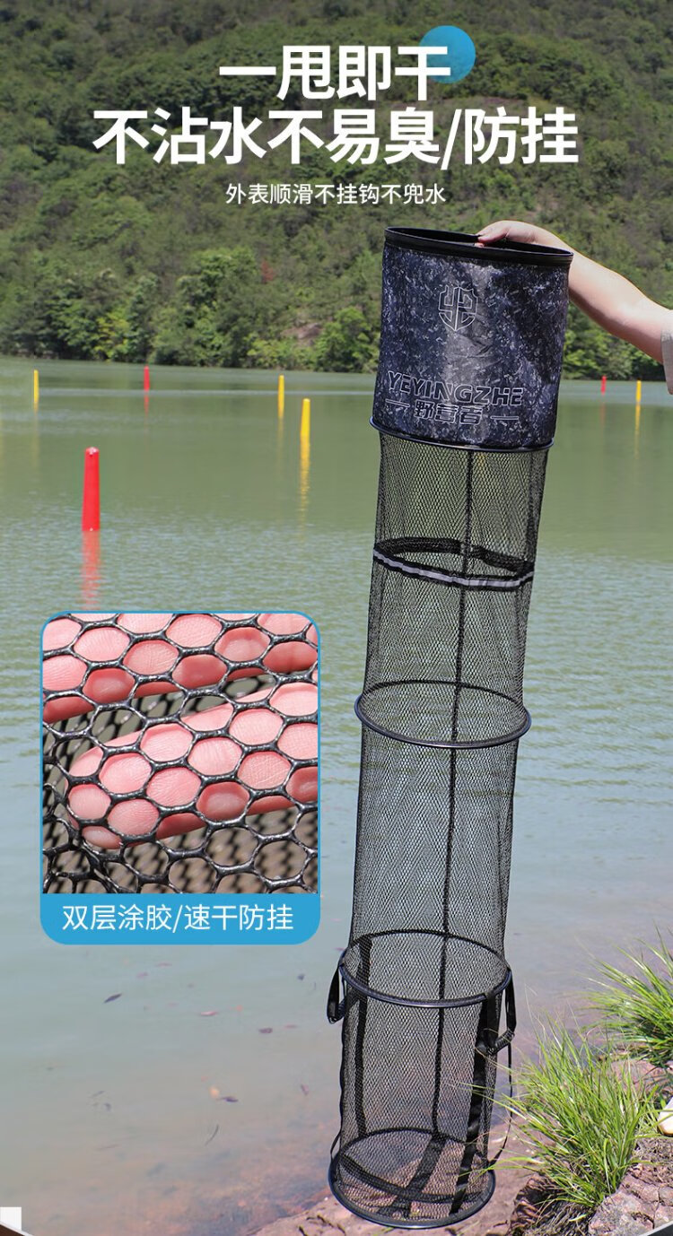 Camper thickened forged carbon pattern round fish protection rubber coated anti-hanging quick-drying special fishing net bag for wild fishing 35cm 2m