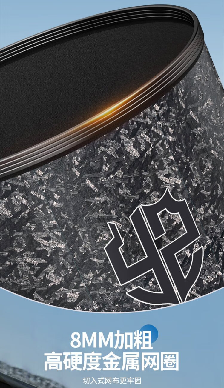 Camper thickened forged carbon pattern round fish protection rubber coated anti-hanging quick-drying special fishing net bag for wild fishing 35cm 2m <Aluminum alloy edge>
