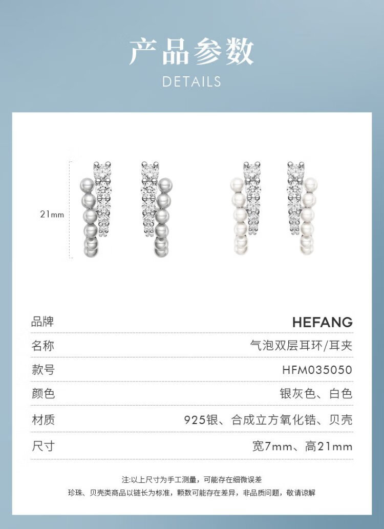 HEFANG He Fang Jewelry Bubble Double Layer Earrings Silver Earrings Light Luxury High-end Feeling Birthday Gift for Girlfriend Silver Gray/Earrings Style