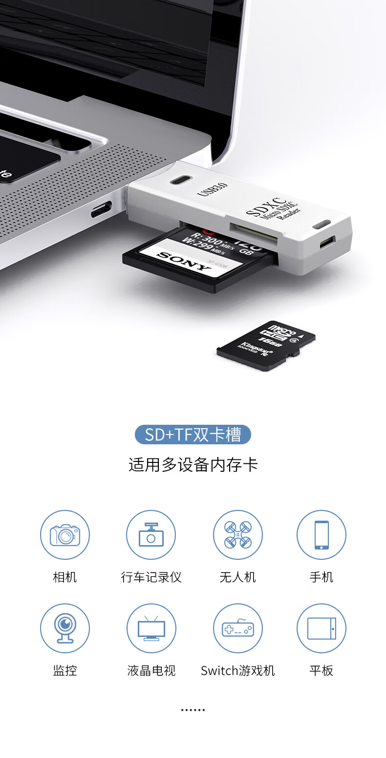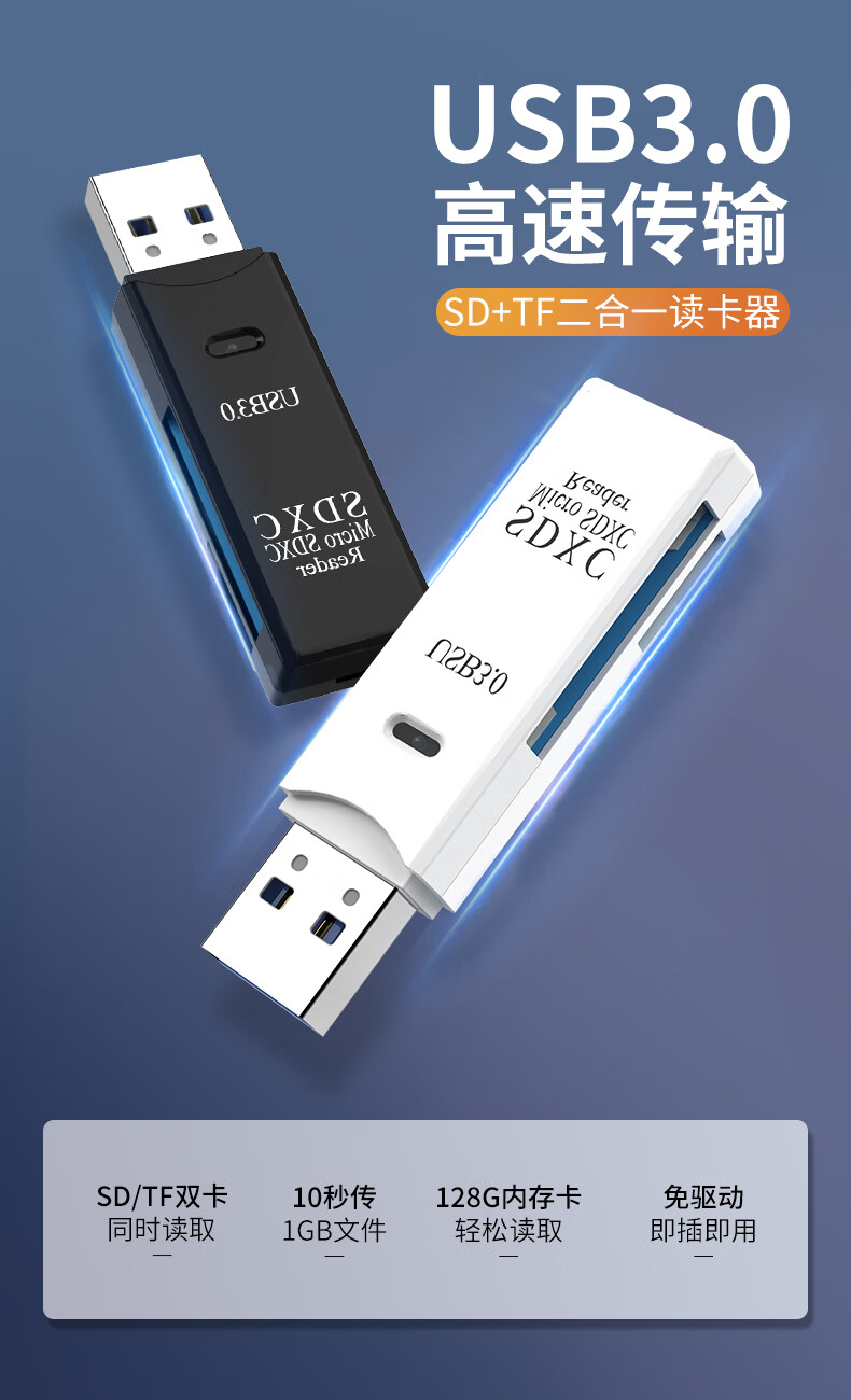 USB dual card reader high-speed multi-function all-in-one sd memory card tf converter typec computer card USB disk otg car universal suitable for camera mobile phone reading black 3.0+ Type-c OTG adapter