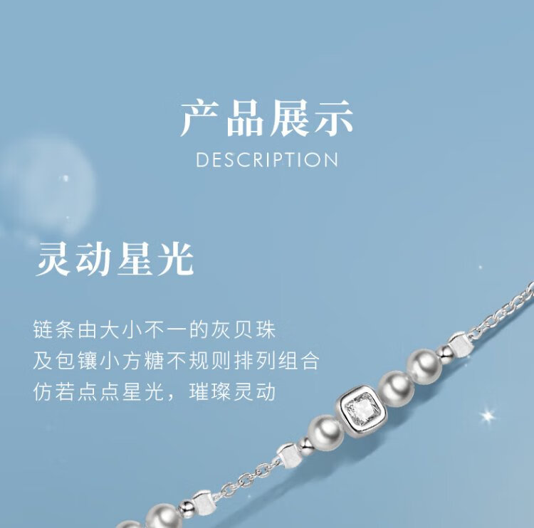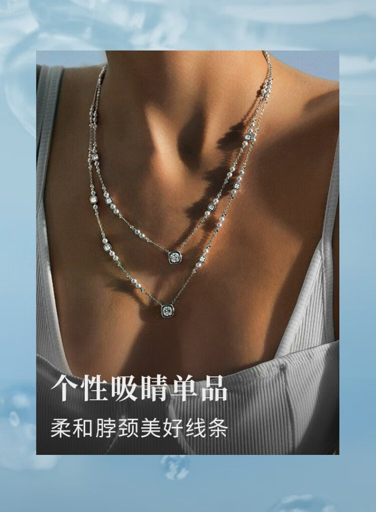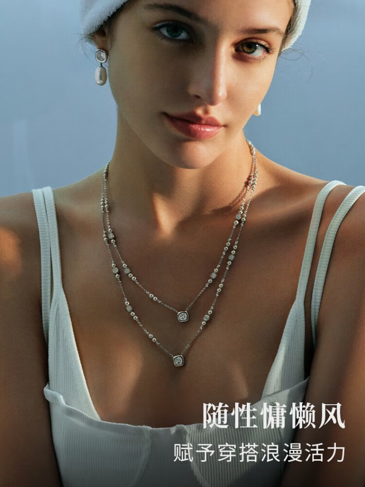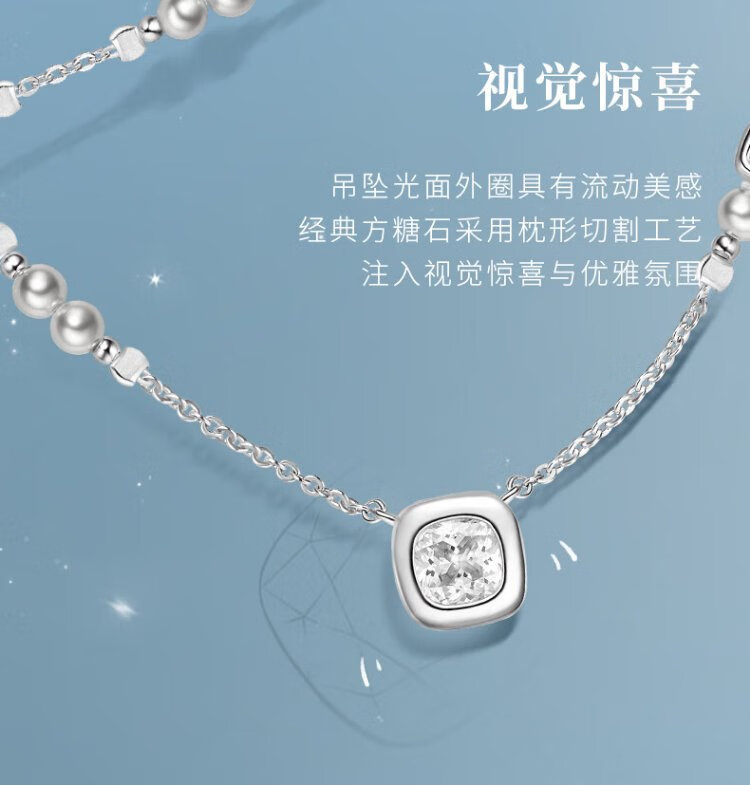 HEFANG Hefang Jewelry Starlight Sugar Cube Long Necklace Necklace for Women Light Luxury and High-end Birthday Gift for Girlfriend Silver Gray