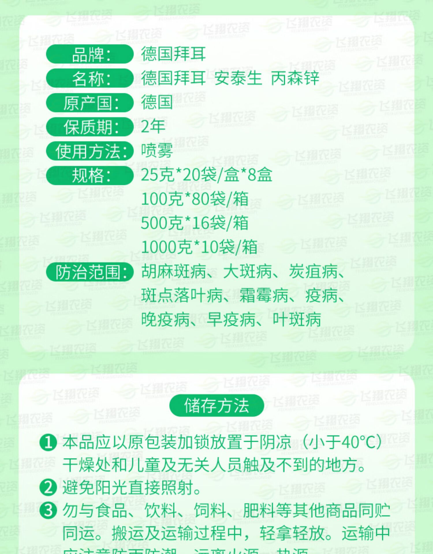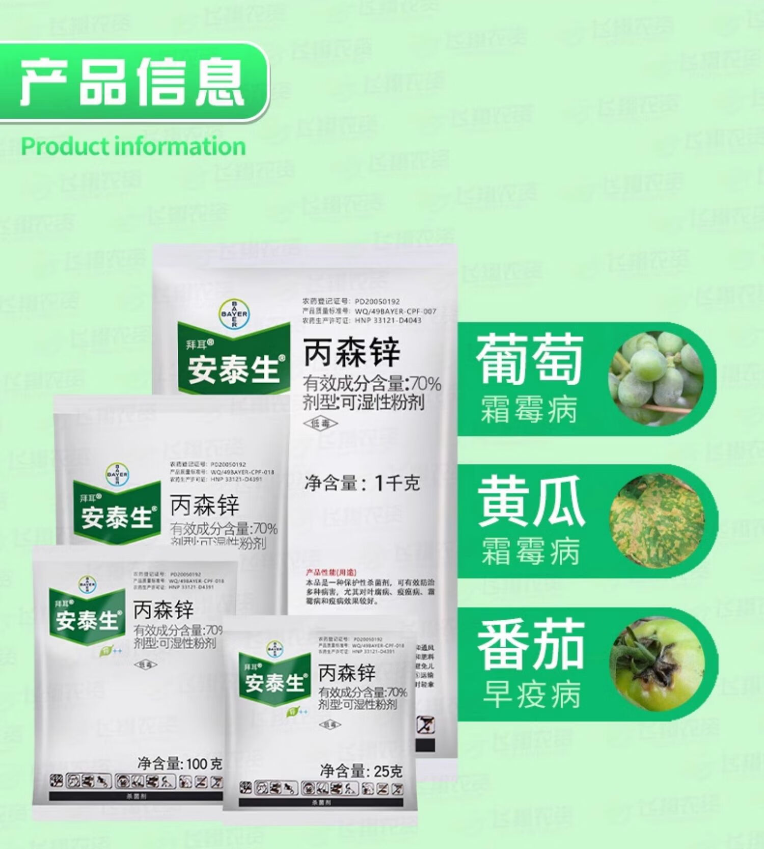 Bayer Antaisyn propionic zinc fruit tree grape cucumber tomato downy mildew early and late blight pesticide fungicide 25g*20 bags