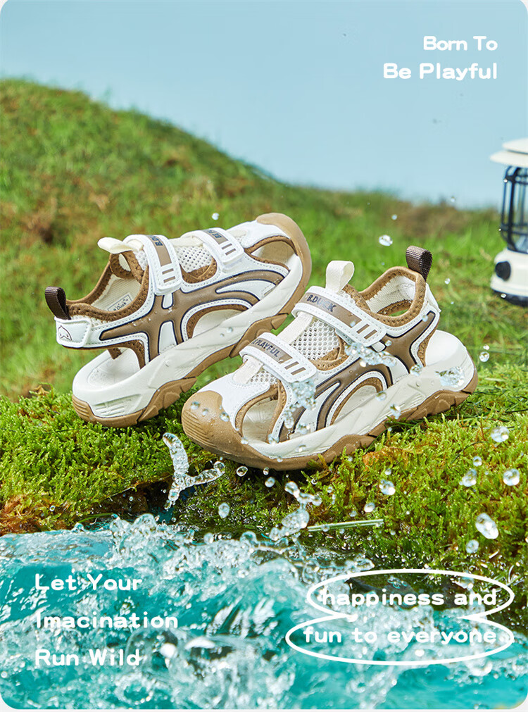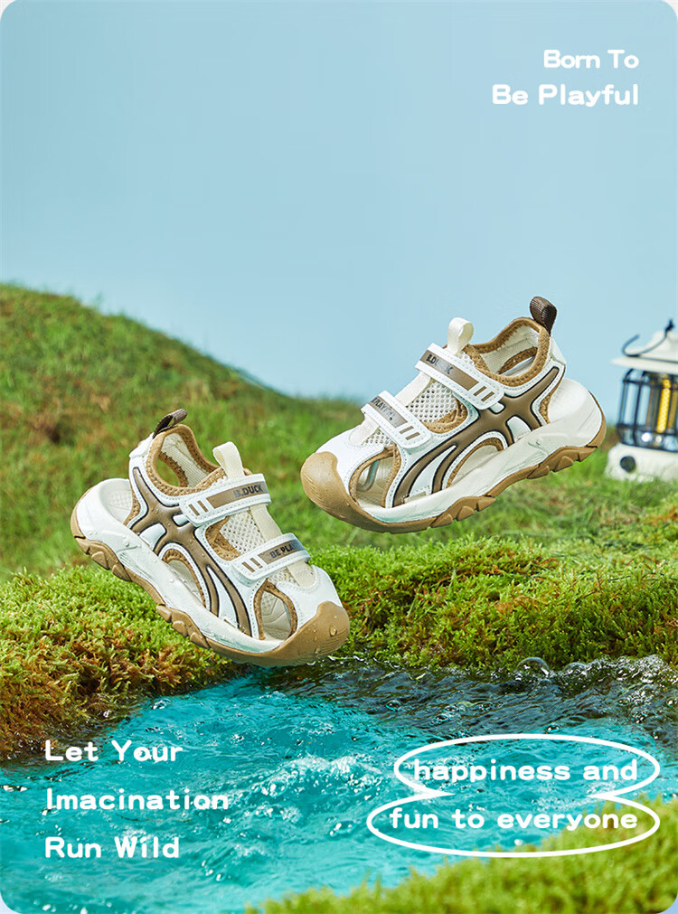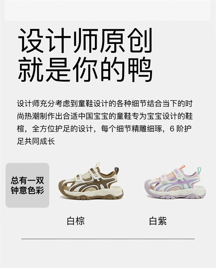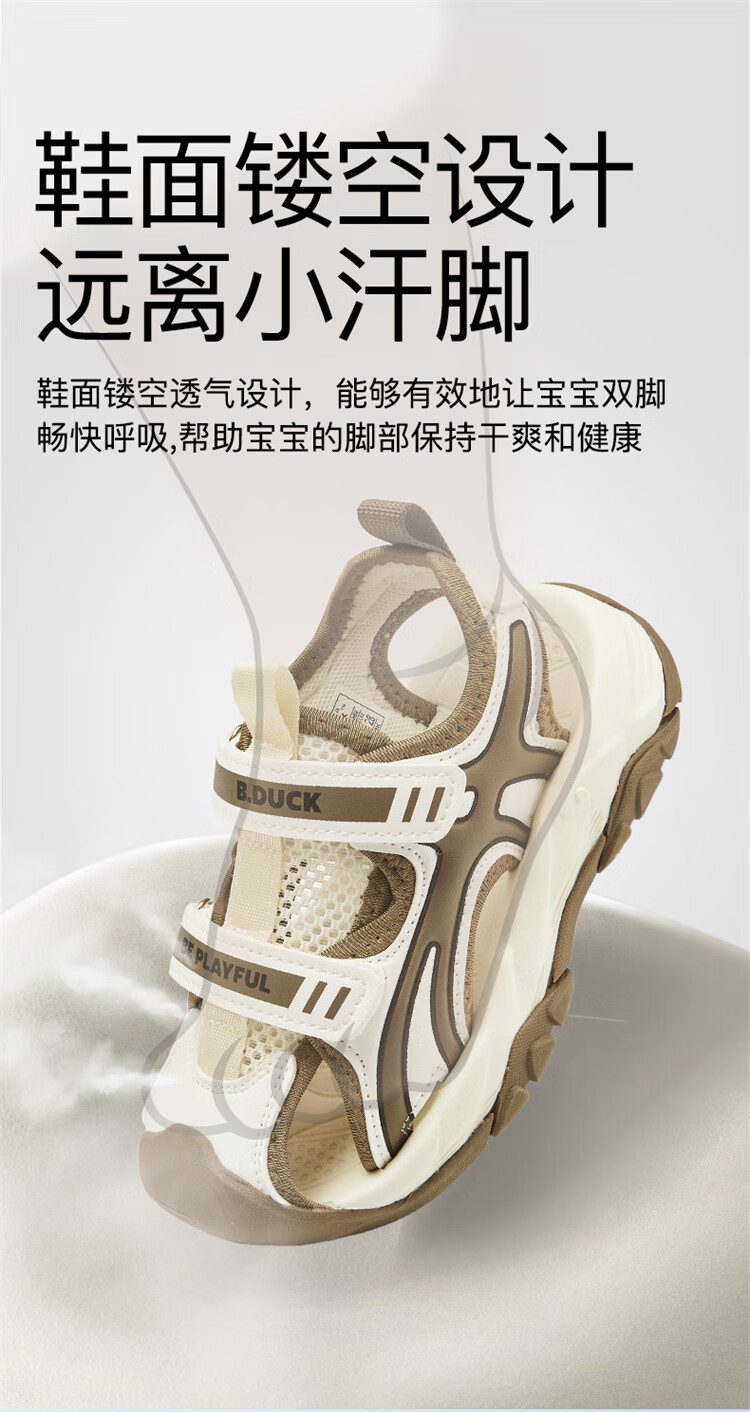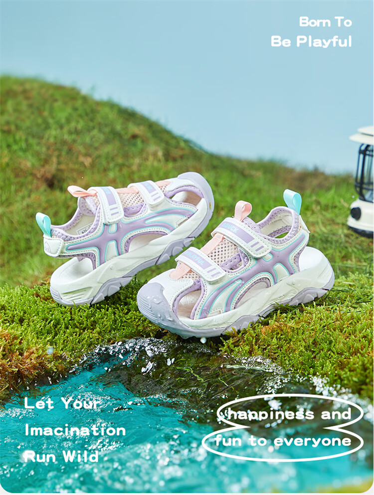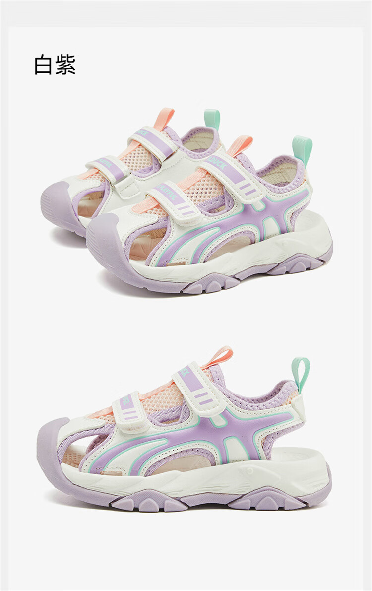 B.Duck Little Yellow Duck Children's Shoes Boys Sandals 2025 New Summer Soft Sole Anti-Slip Children's Beach Shoes Girls Casual Shoes White Purple Size 30 Suitable for Feet Length 18.6-19.3cm