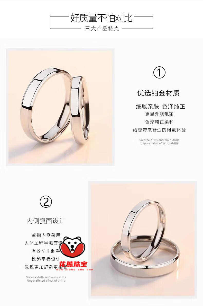 Fat Donglai's same style 18K gold plain ring PT950 platinum platinum glossy couple model men's and women's ring 18k diamond Mobius men's ring single