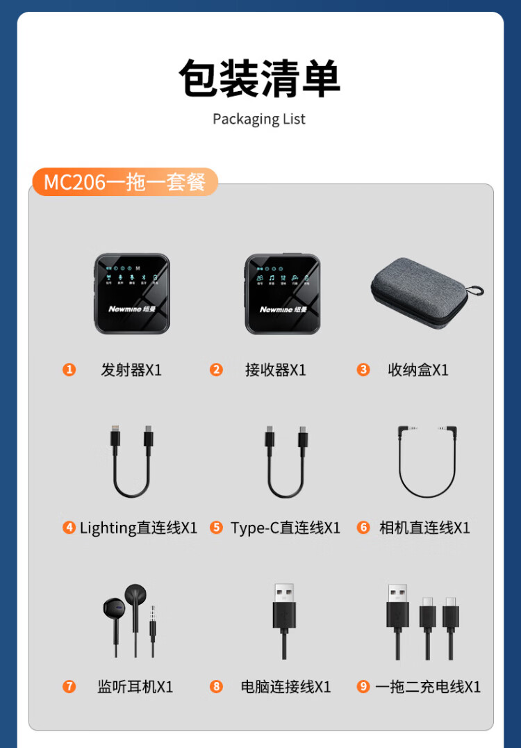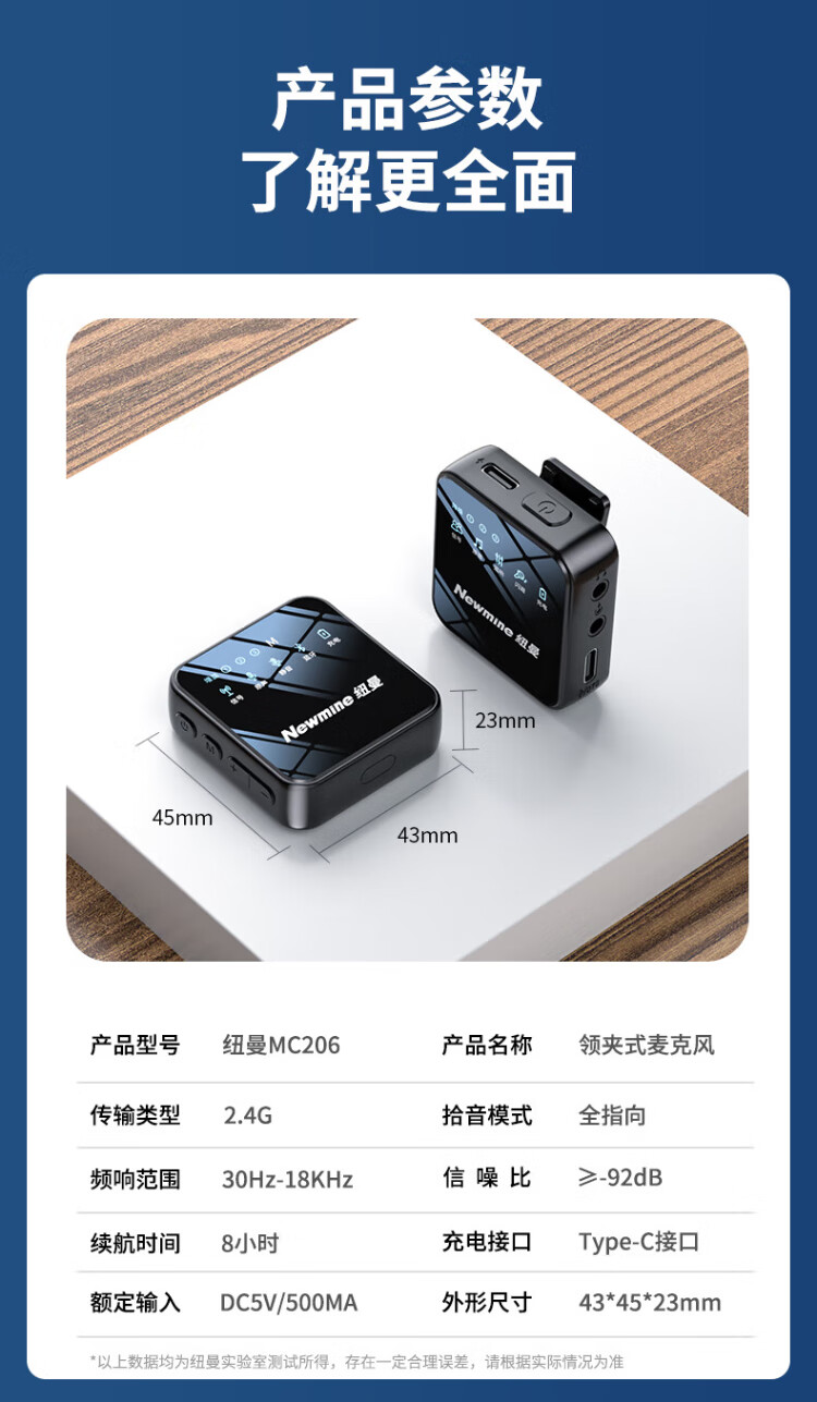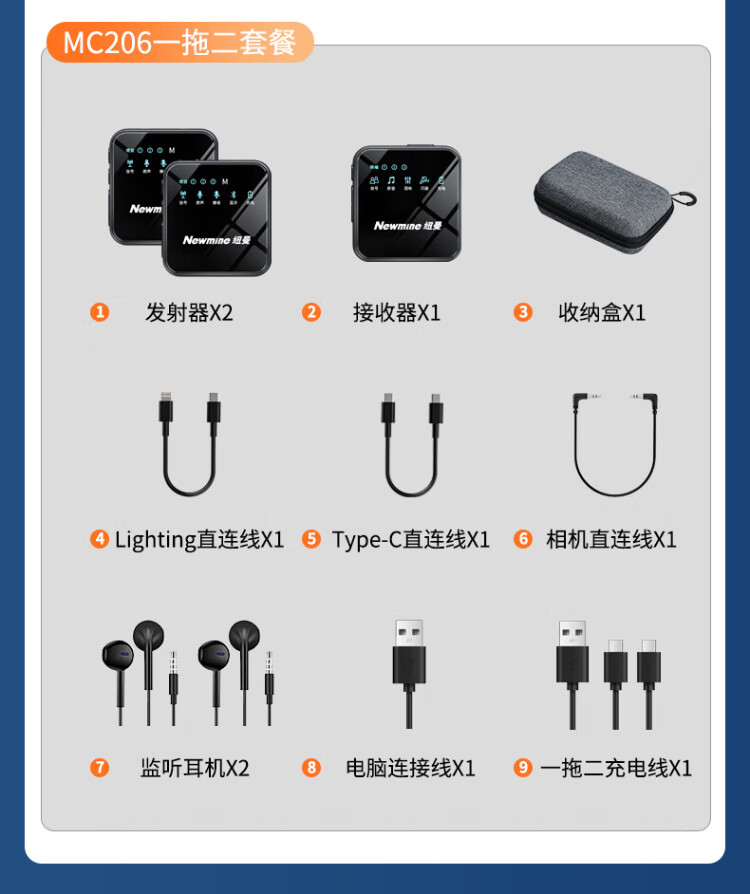 Newman MC206 Wireless Lavalier Microphone Live Sound Card Set Anchor Live Recording Equipment Outdoor Short Video Radio Microphone Douyin Professional Noise Reduction Little Bee Radio Dual Microphone Radio Double Version Apple and Android Universal