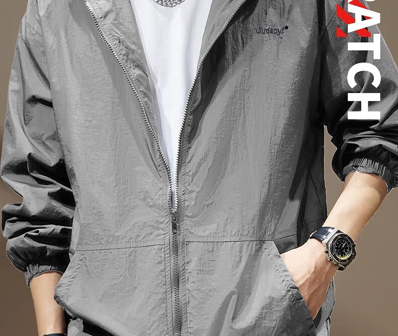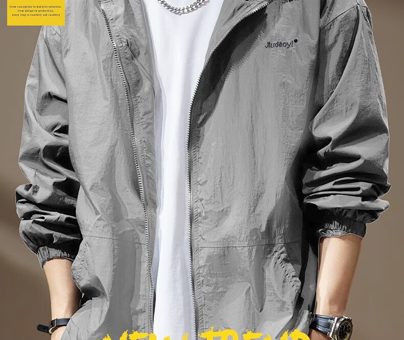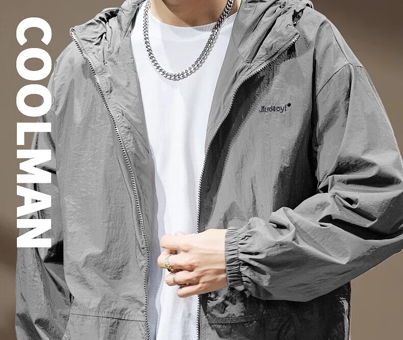 JEEP SPIRIT Jeep ice silk cool outdoor sun protection clothing men's summer thin fishing clothing hooded work jacket men's and women's tops light gray XL suitable for 145-165Jin Jin equals 0.5 kg