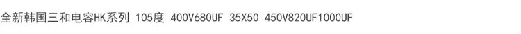 South Korea Sanhe capacitor HK series 105 degrees 400V680UF 35X50 450V820UF1000UF 30X50 450V820UF HK 2 feet