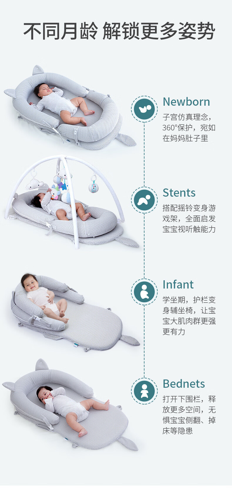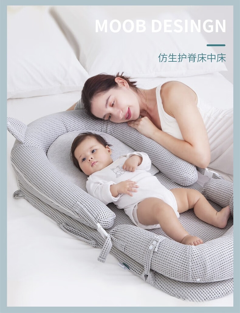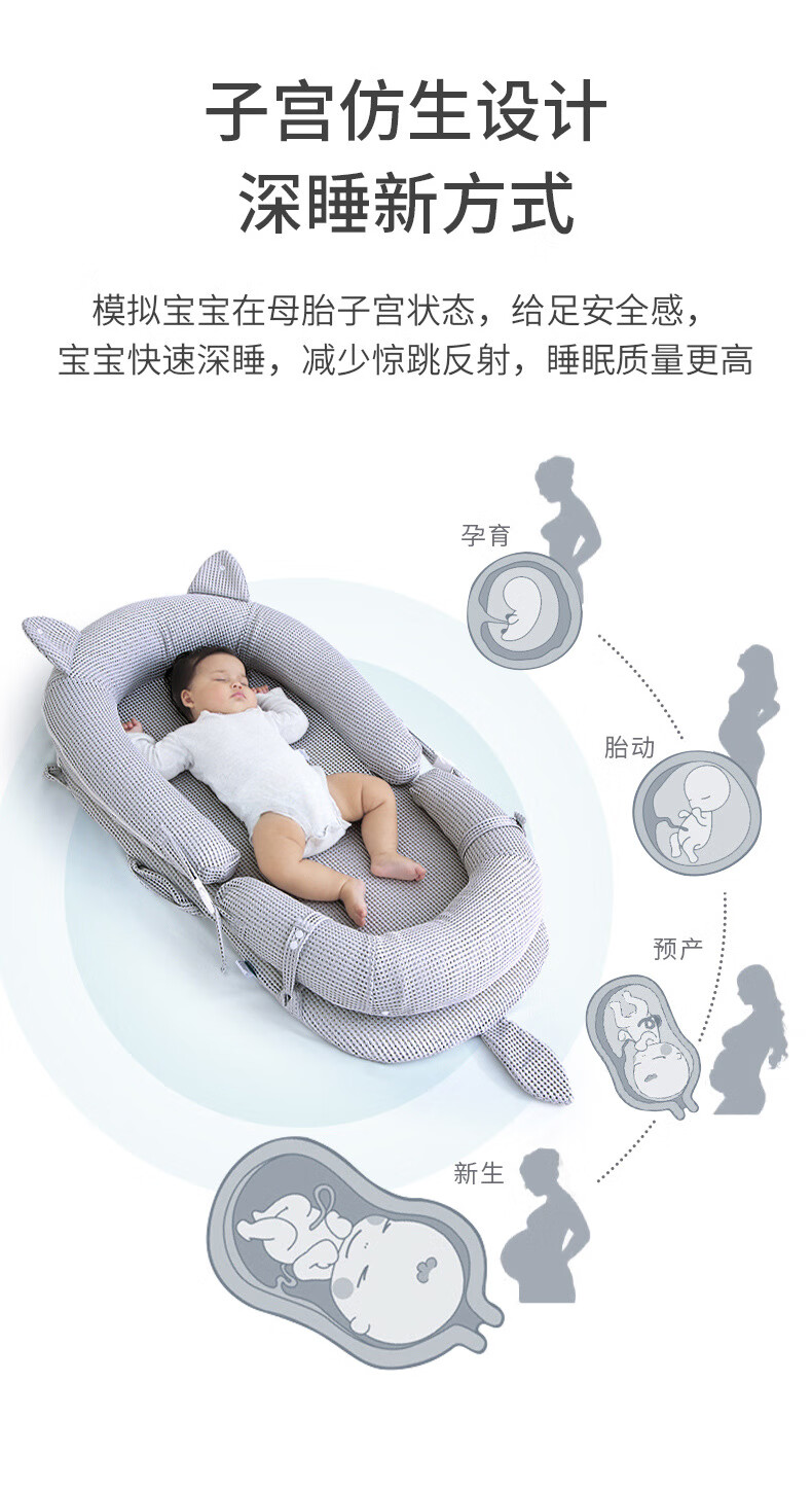 Moon Boat Moon Boat Portable Bed-in-Bed Newborn Uterus Bionic Bed Removable and Washable Cartoon Cradle Travel Crib Little Raccoon Breathable Bed-in-Bed
