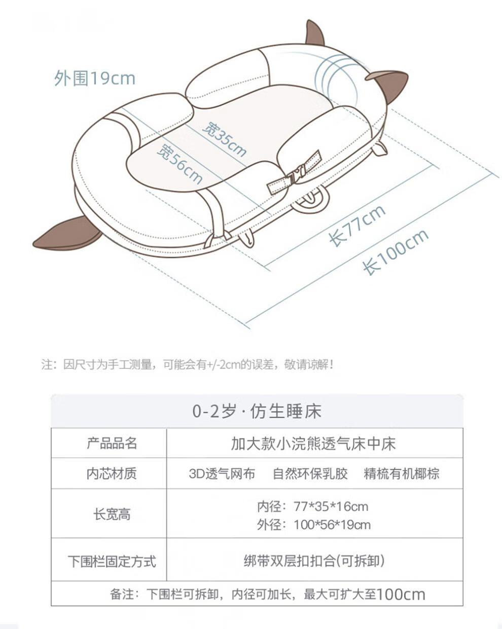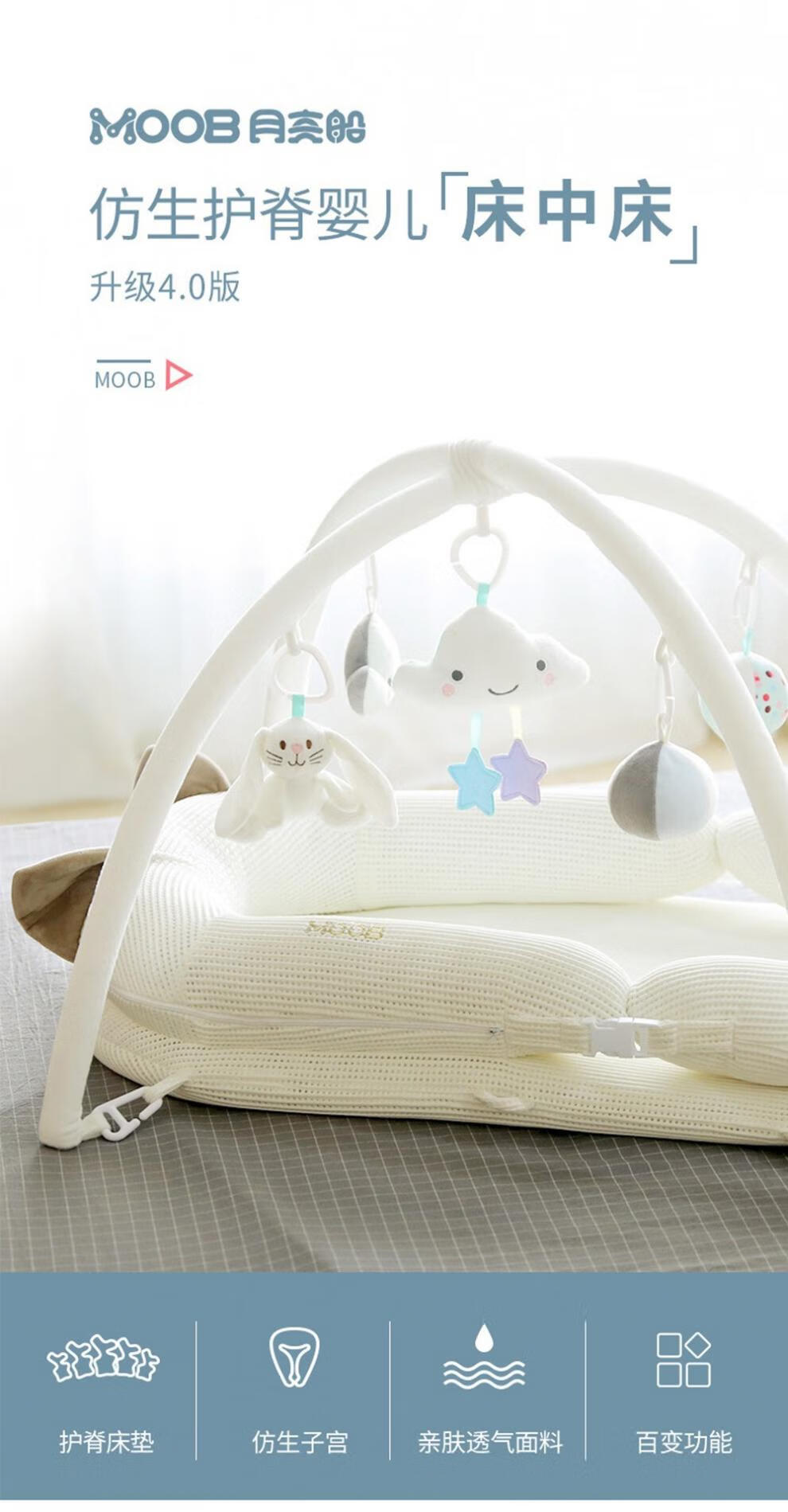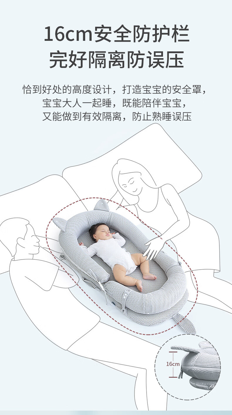 Moon Boat Moon Boat Portable Bed-in-Bed Newborn Uterus Bionic Bed Removable and Washable Cartoon Cradle Travel Crib Little Raccoon Breathable Bed-in-Bed