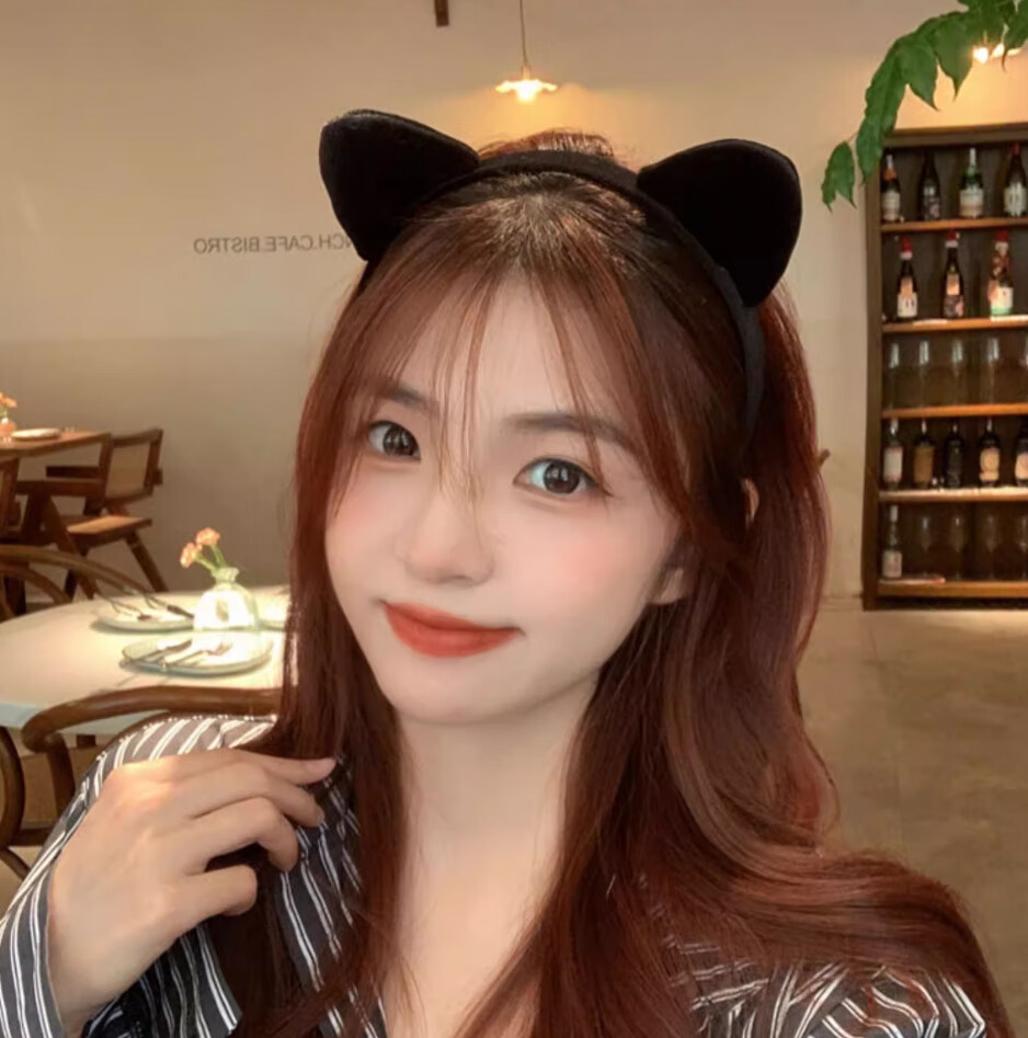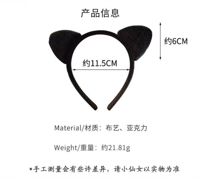 Ombi bear gold velvet cat ear headband for women, cute, super cute and sweet, cute headband, face wash hairpin, hair clip, black