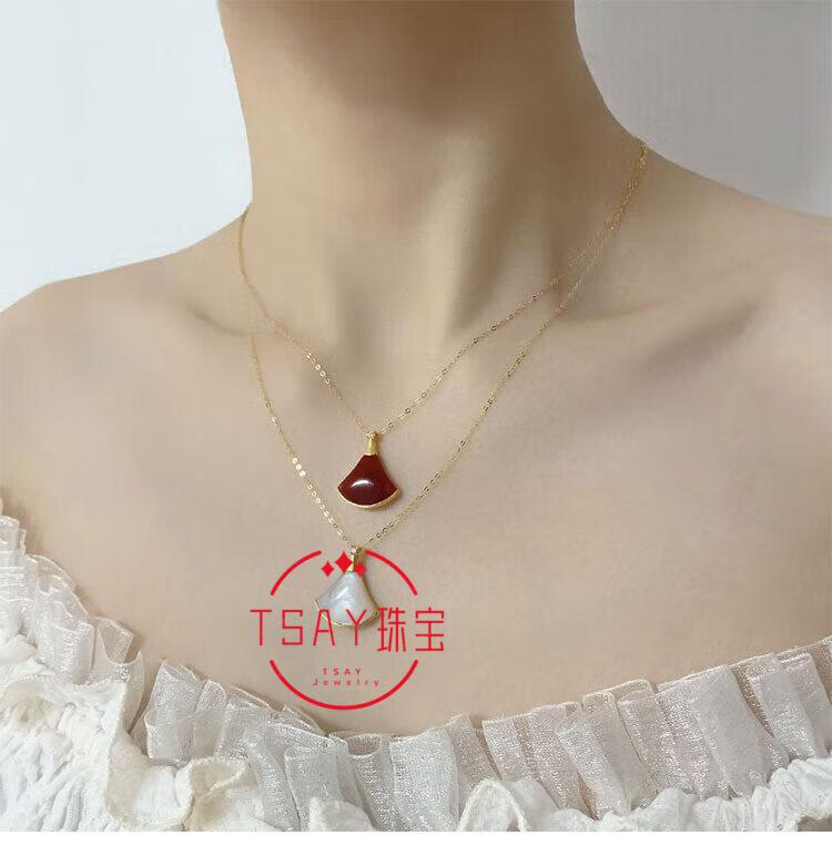 DL 1998 Fat Donglai same style 18k color gold skirt necklace 18K gold skirt pendant au750 rose gold l gold lock rose gold white mother-of-pearl single pendant