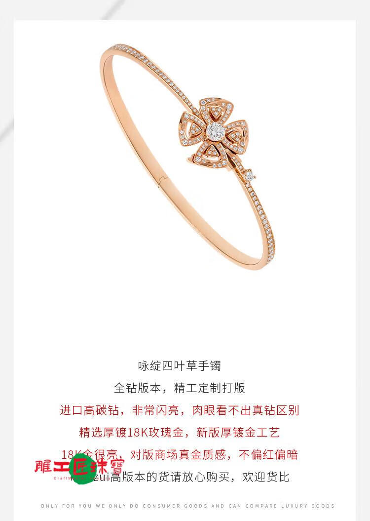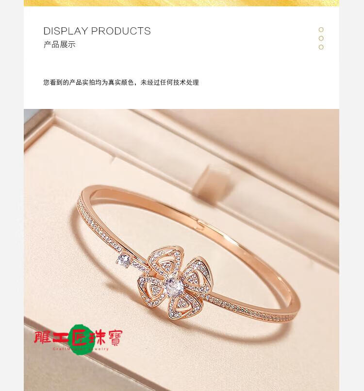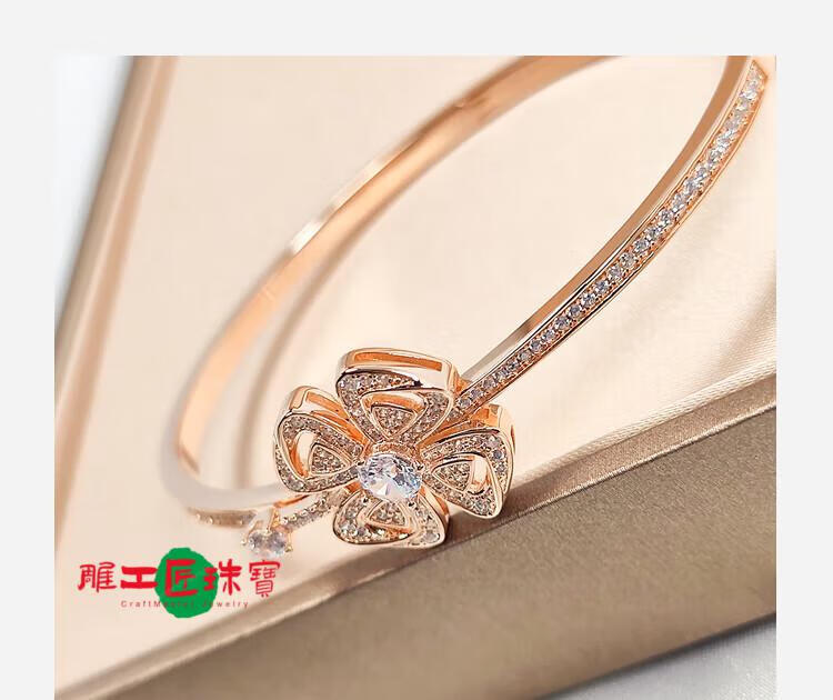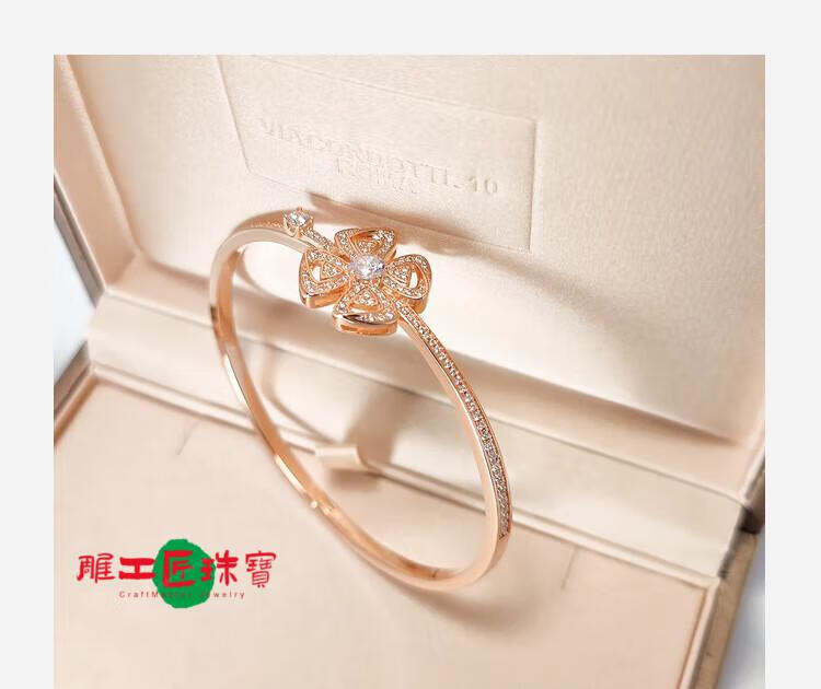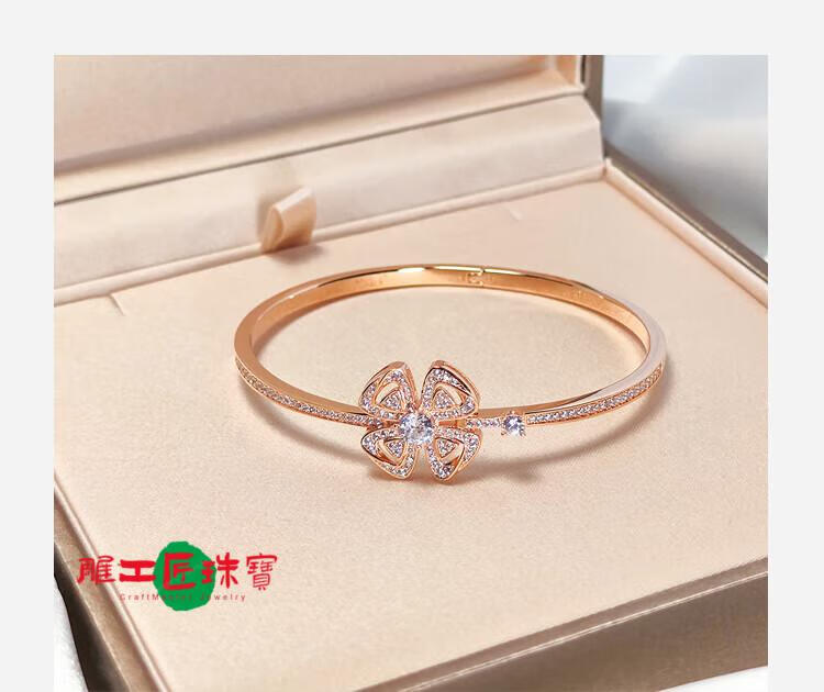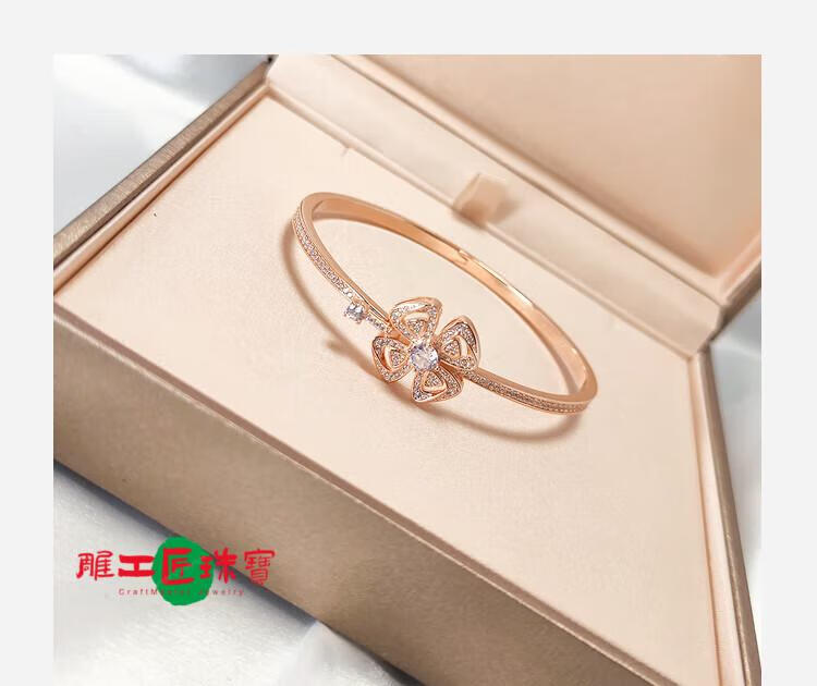 Fat Donglai's same style 18k rose gold bracelet light luxury lucky four-leaf clover flower set with diamonds 18K gold rose color gold rose gold full diamond