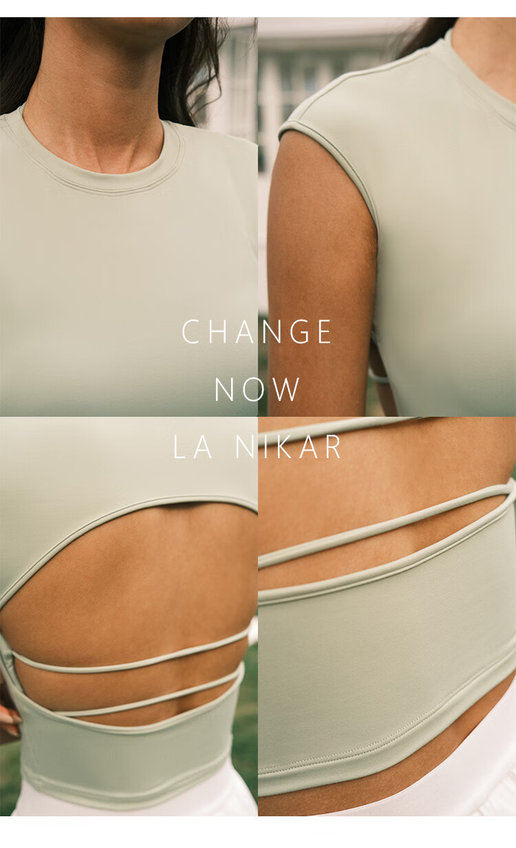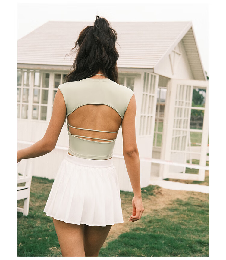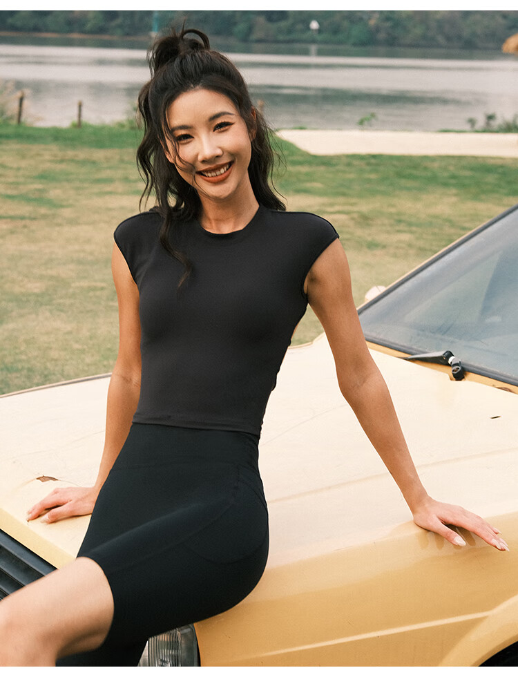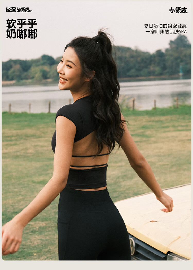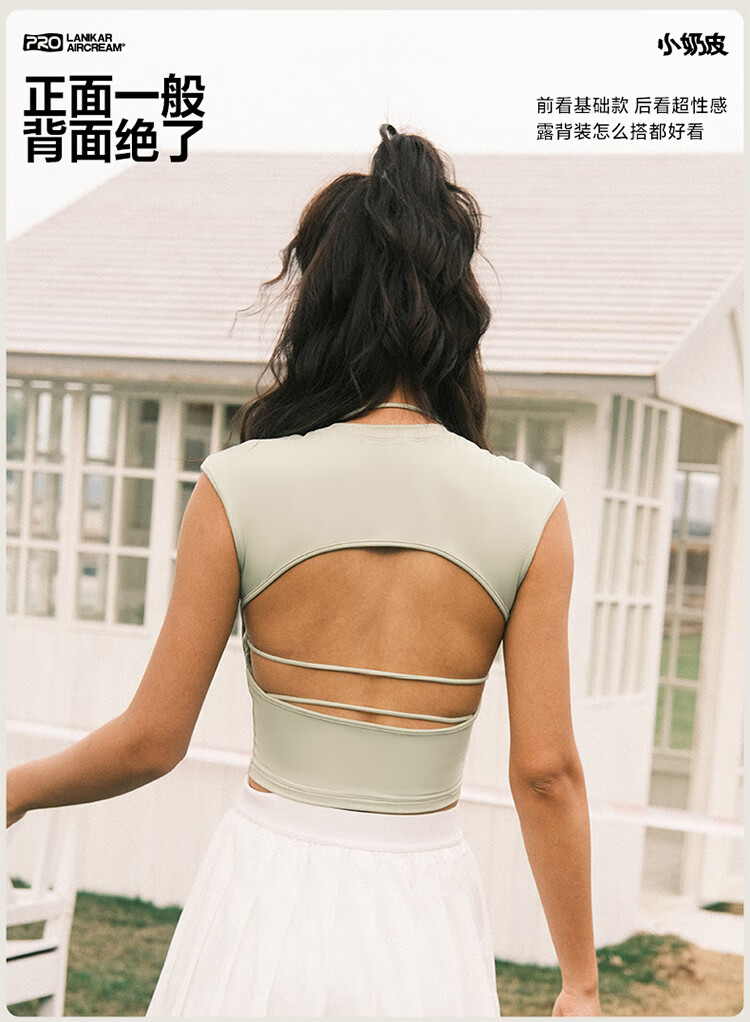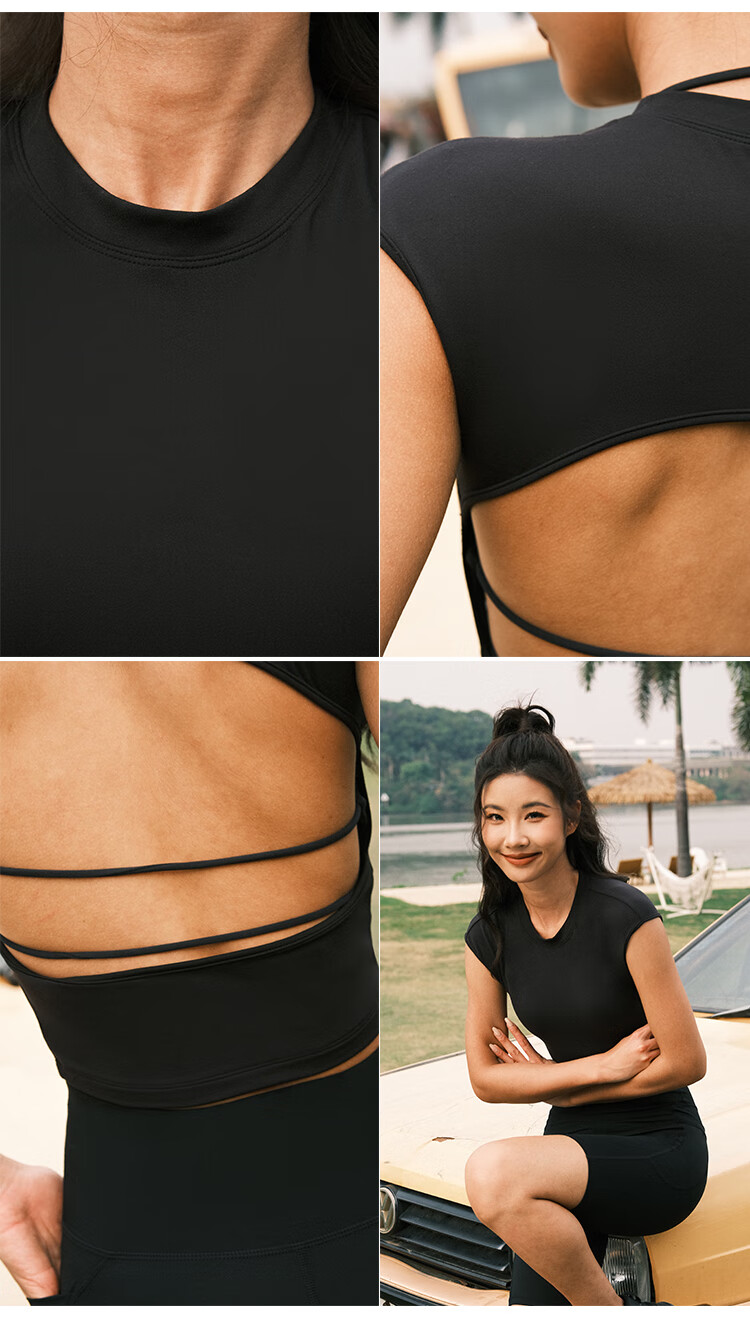 La Nikar sports short-sleeved women's summer design backless yoga top fitness wear running Pilates T-shirt-S1339 graphite black S