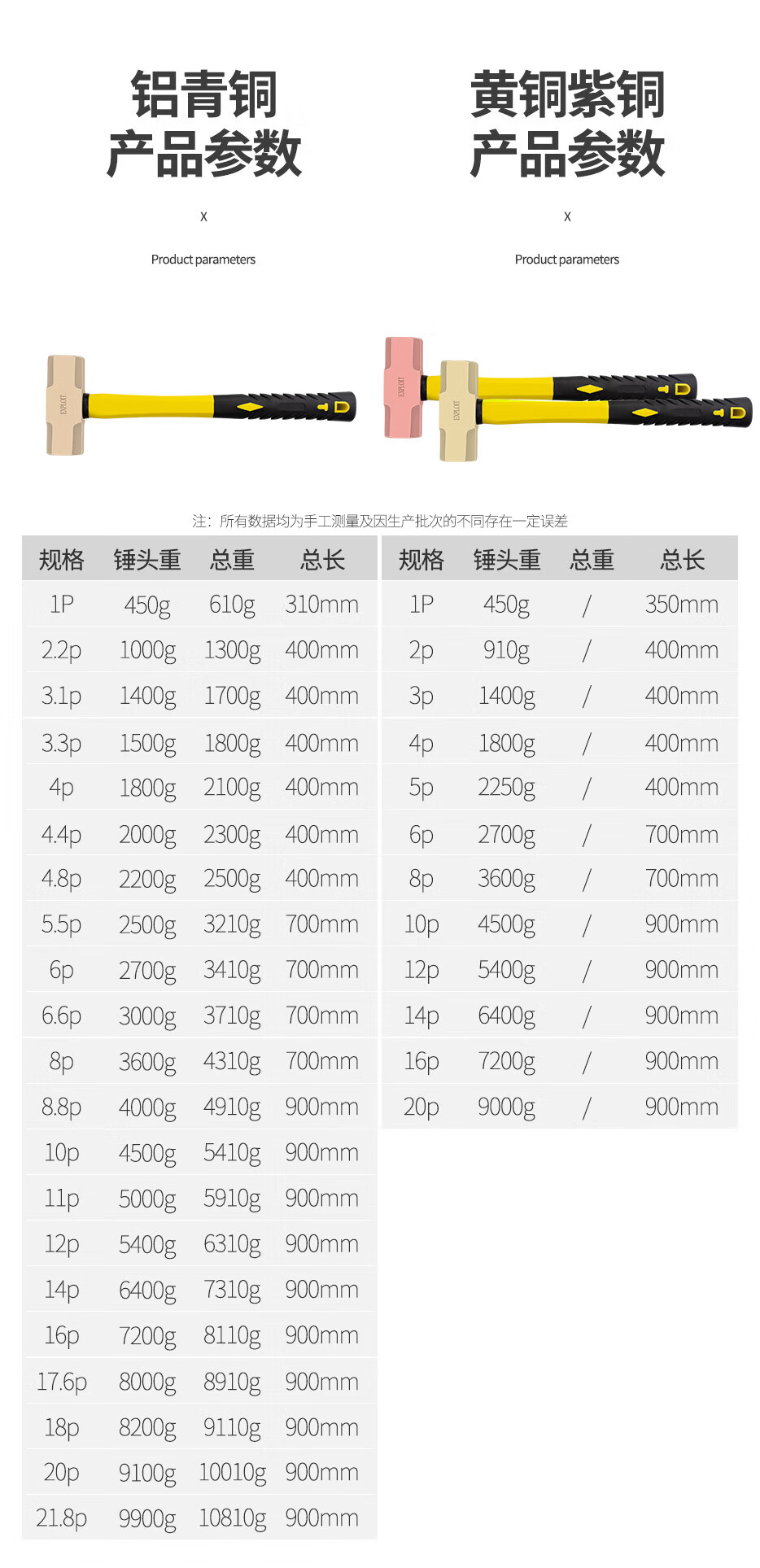 EXPLOIT explosion-proof octagonal hammer non-sparking brass hammer brass 8 pounds