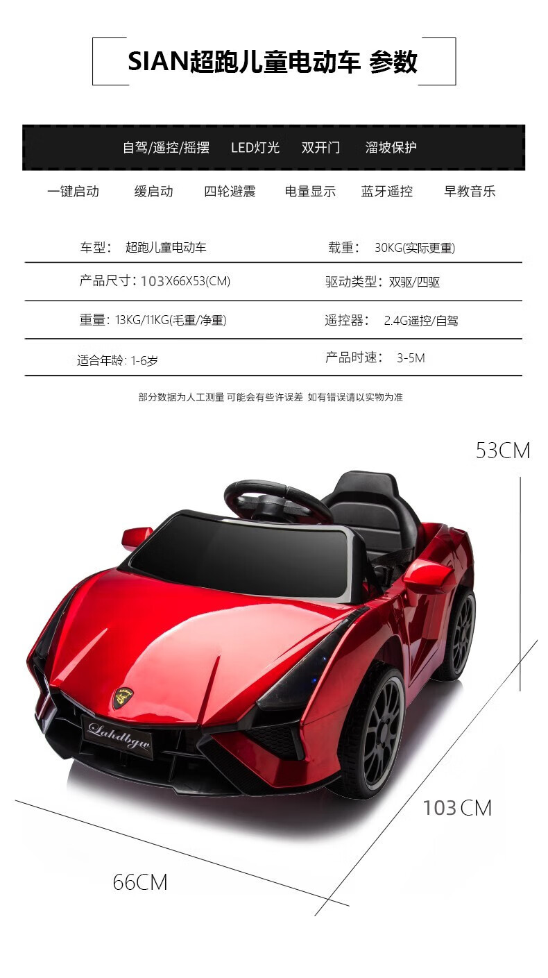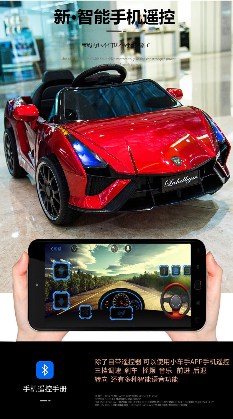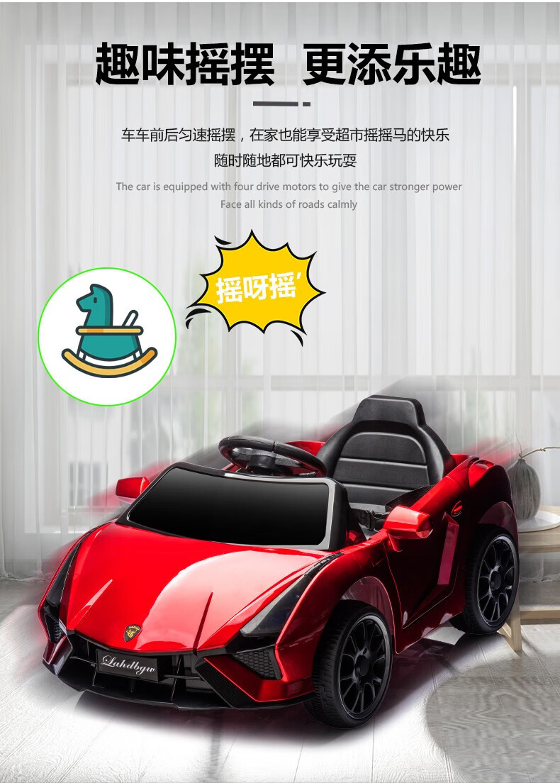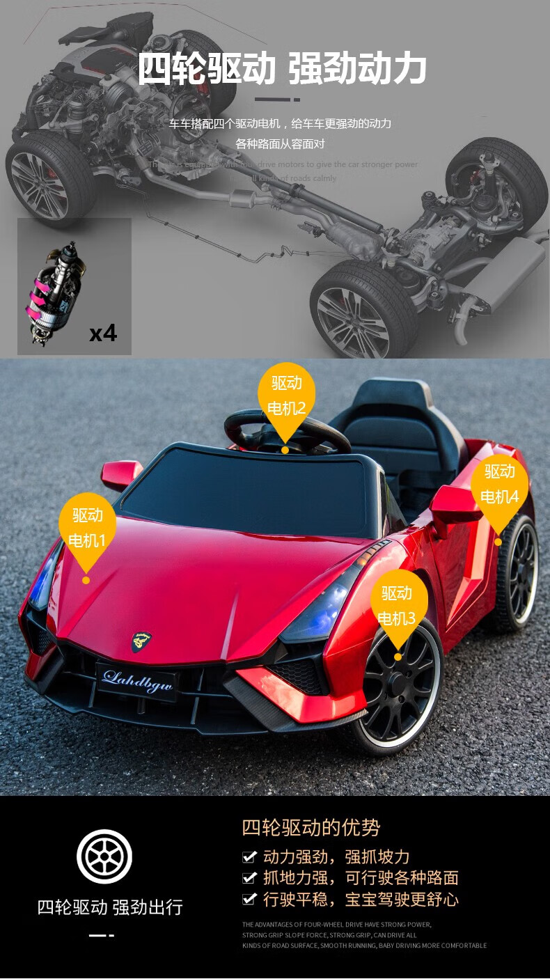Funbaobao children's electric car four-wheel sports car toy car that can seat a child, baby, baby, charging and driving remote control car Rouge powder four-wheel drive + self-driving remote control + music and lighting