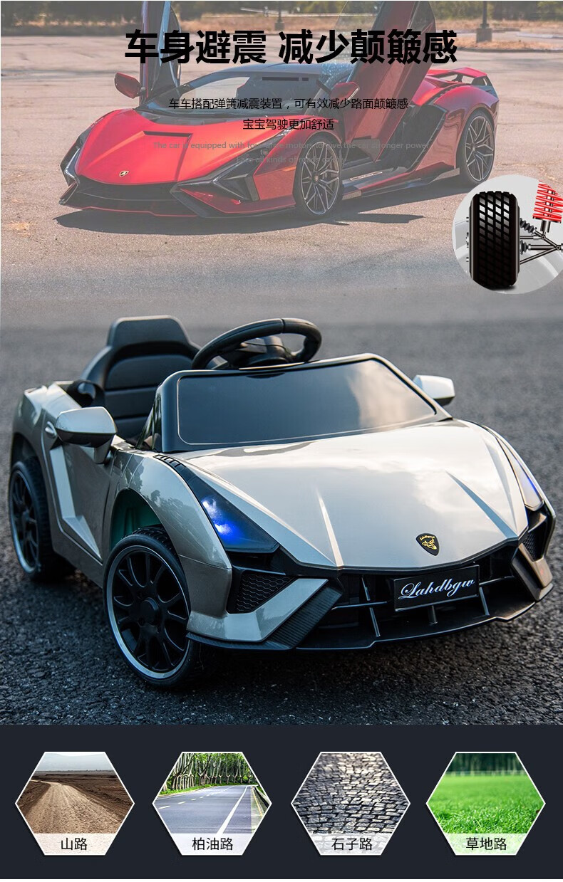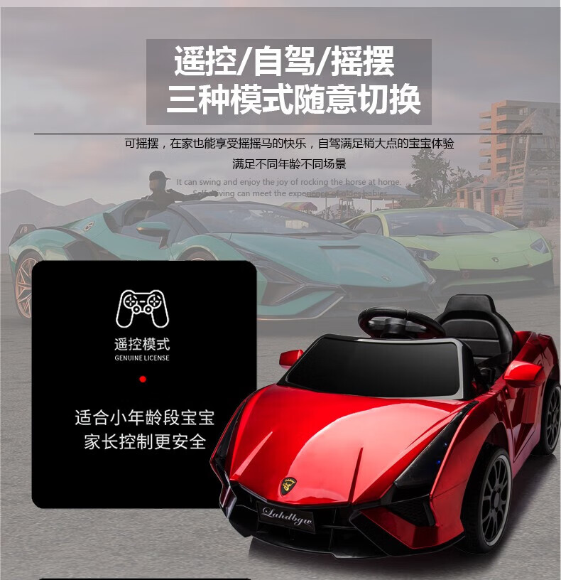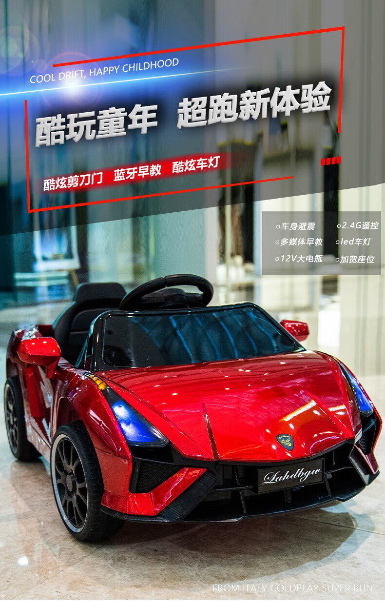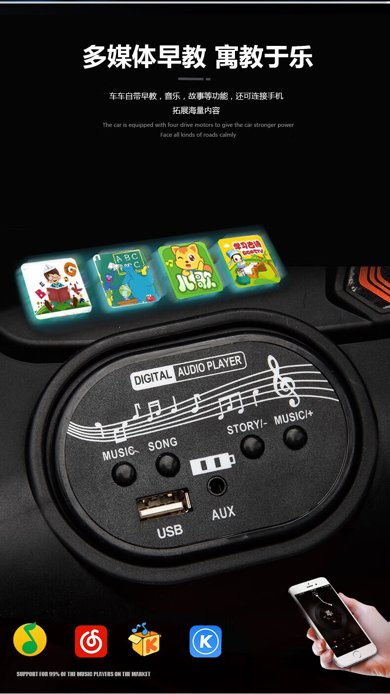 Funbaobao children's electric car four-wheel sports car toy car that can seat a child, baby, baby, charging and driving remote control car Rouge powder four-wheel drive + self-driving remote control + music and lighting