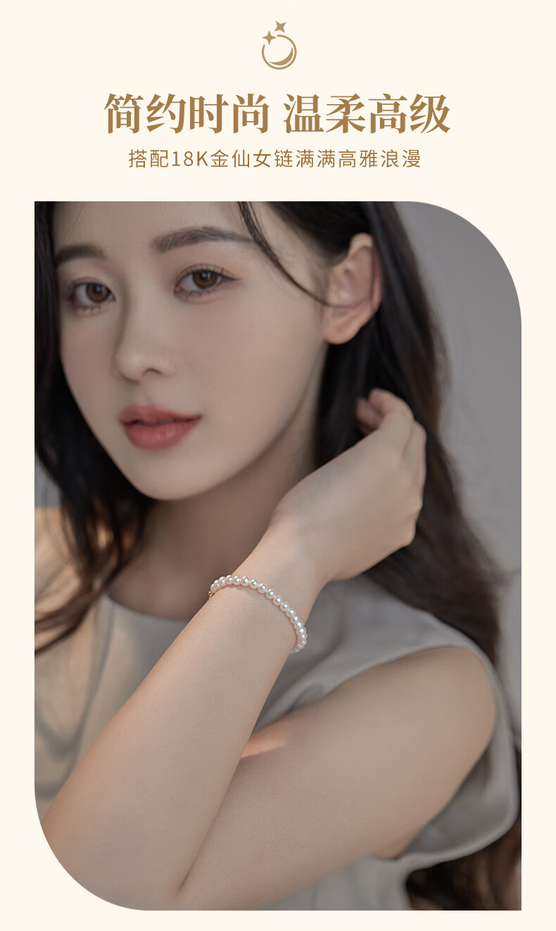 Chinese Gold 18k Gold Freshwater Pearl Bracelet Women's Simple Bracelet Anniversary Gift for Girlfriend and Wife's Birthday Jingsuda 18k Pearl Bracelet