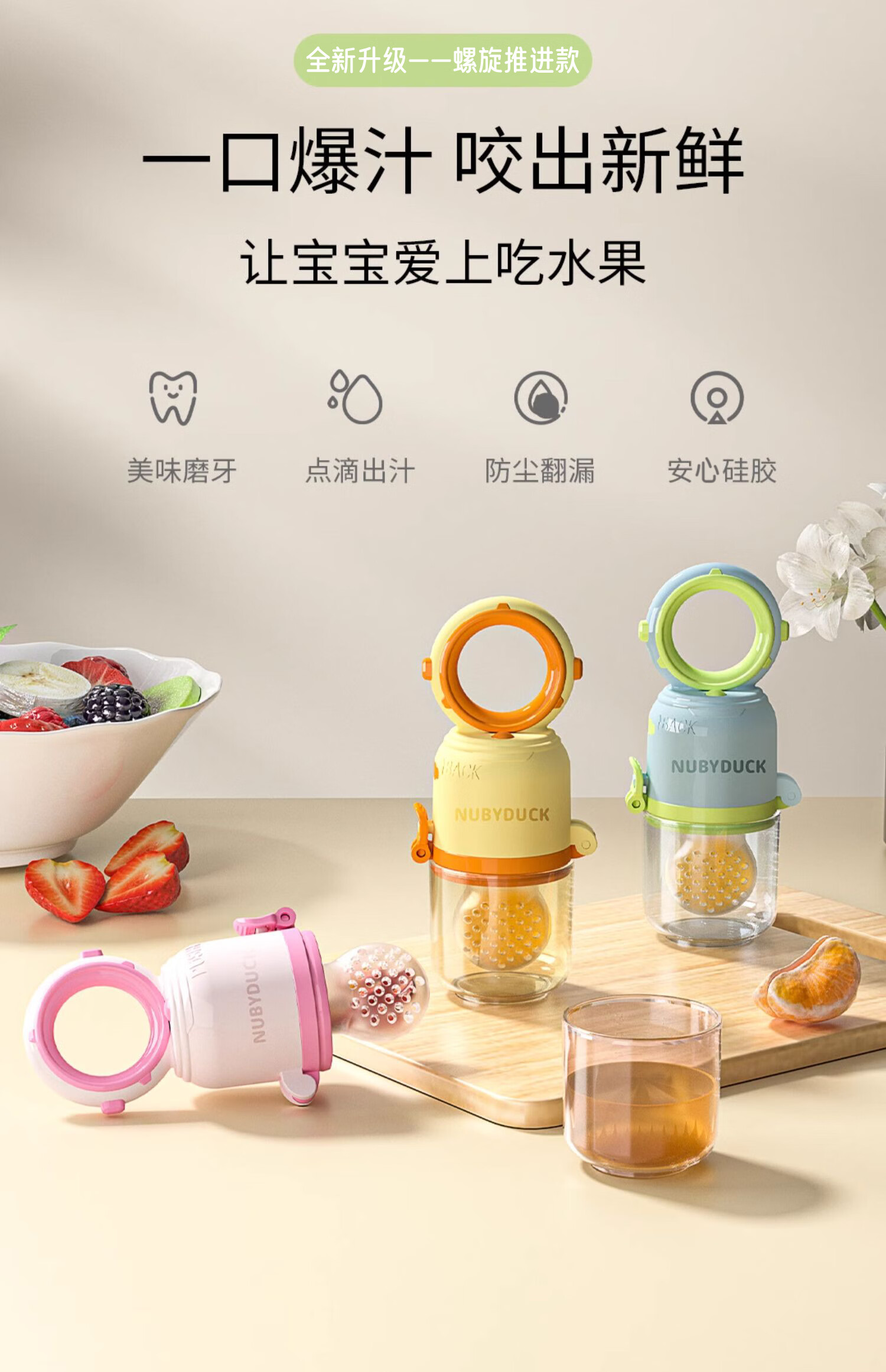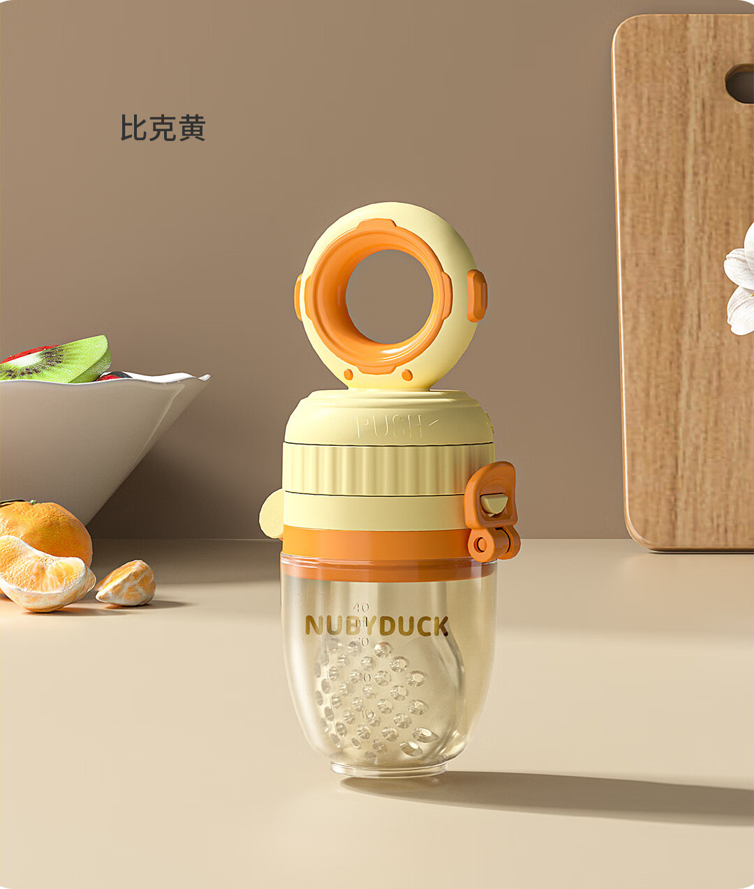 Jin Riman Bite and Bite Baby Fruits for babies over 6 months old, silicone bite bags, food supplements, soothing teethers, yellow model, 1 pack, suitable for babies 6 months+