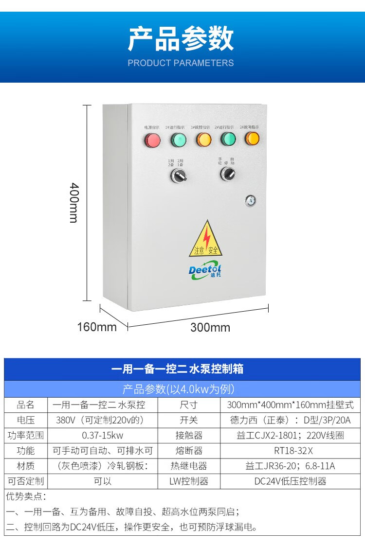 Water pump control box, one use and one standby, automatic liquid level float, 380v submersible sewage pump control cabinet, three-phase distribution box, one use, one standby, 7.5KW ready for delivery in seconds