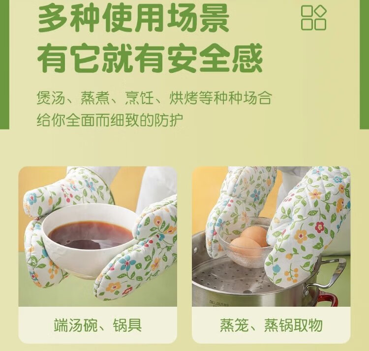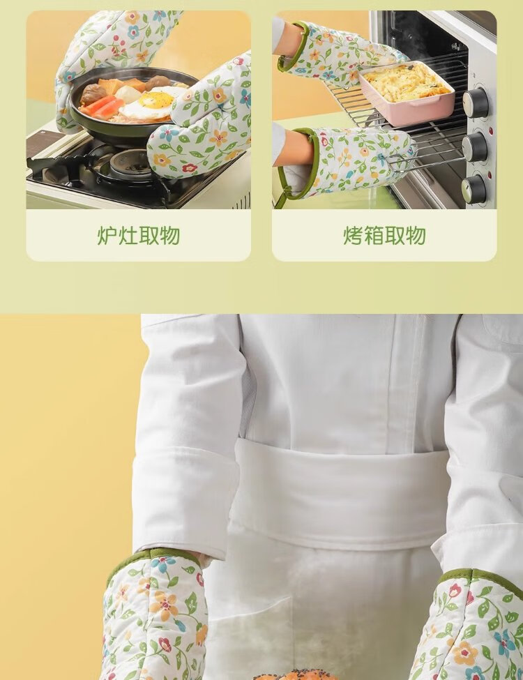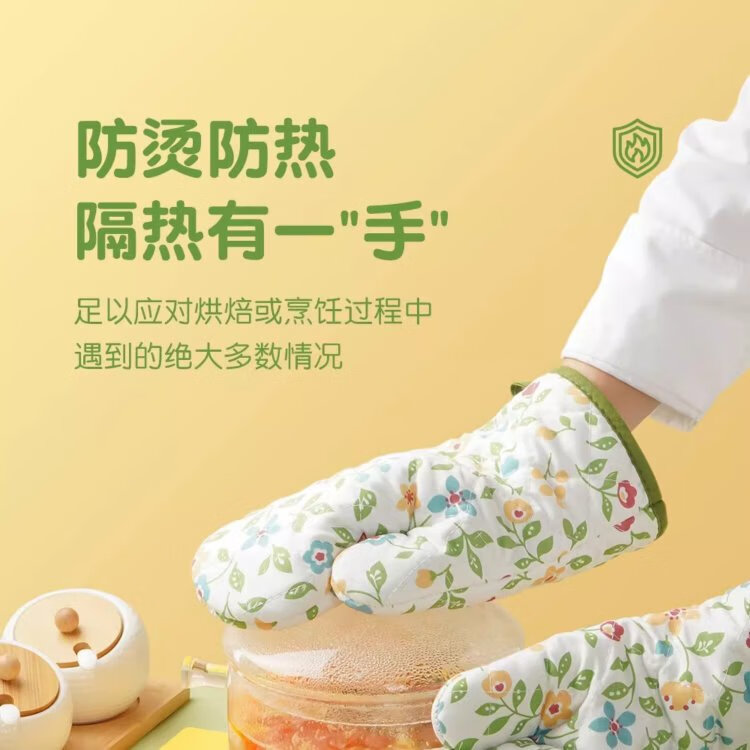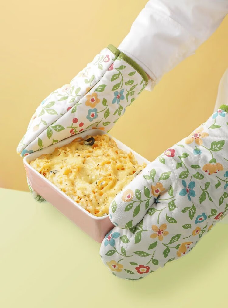 Zhanyi Insulated Gloves, Baking Resistant, Anti-scalding, Heat-Resistant, Thickened Oven Gloves, Microwave Oven Mooncake Special Baking Kitchen, Thickened, 2 Small Florals