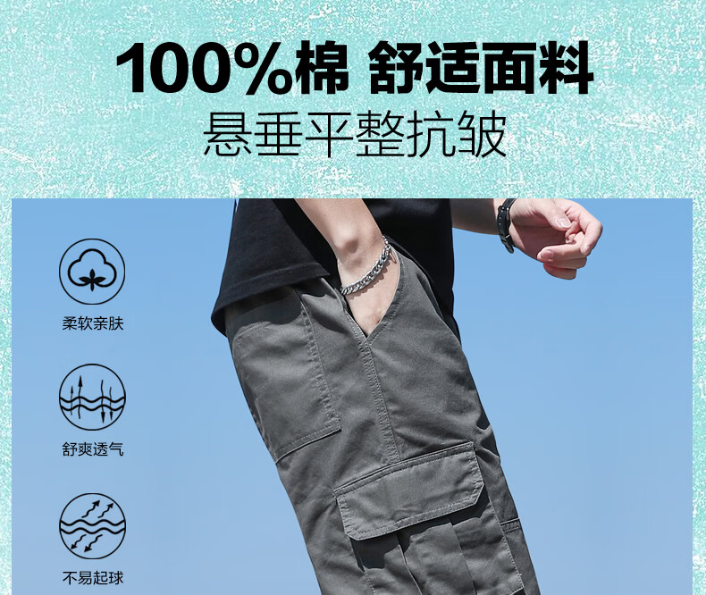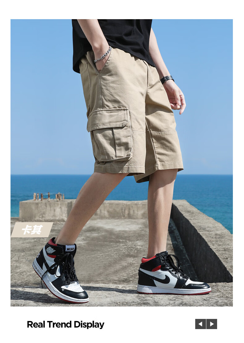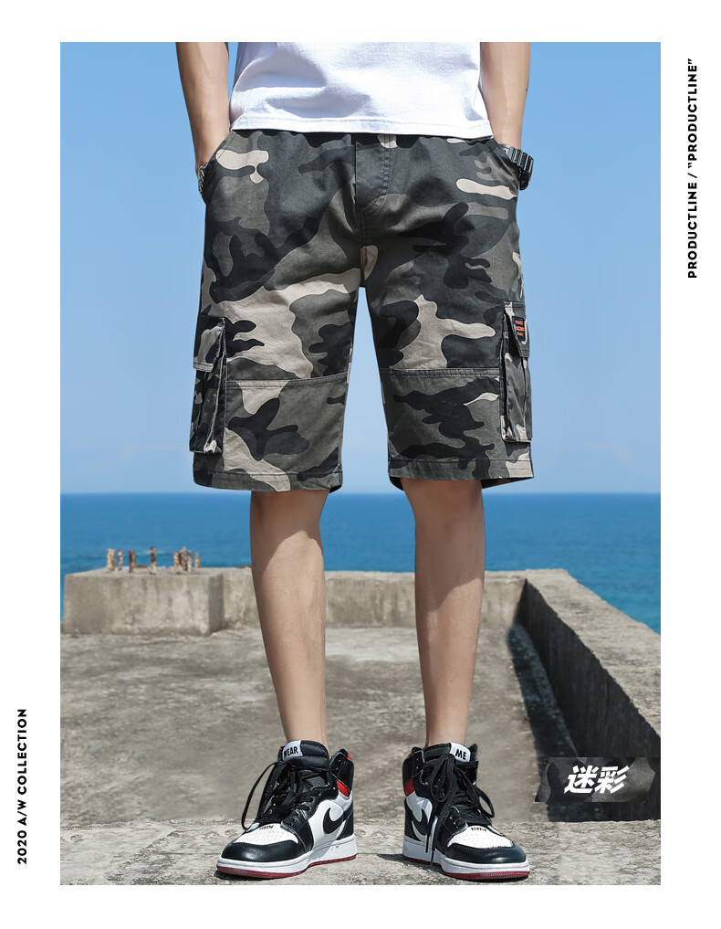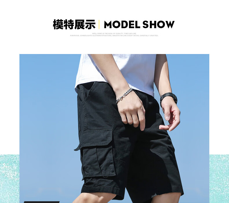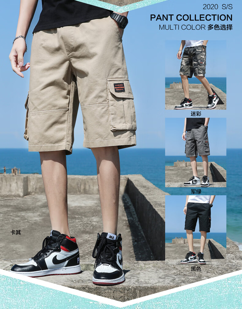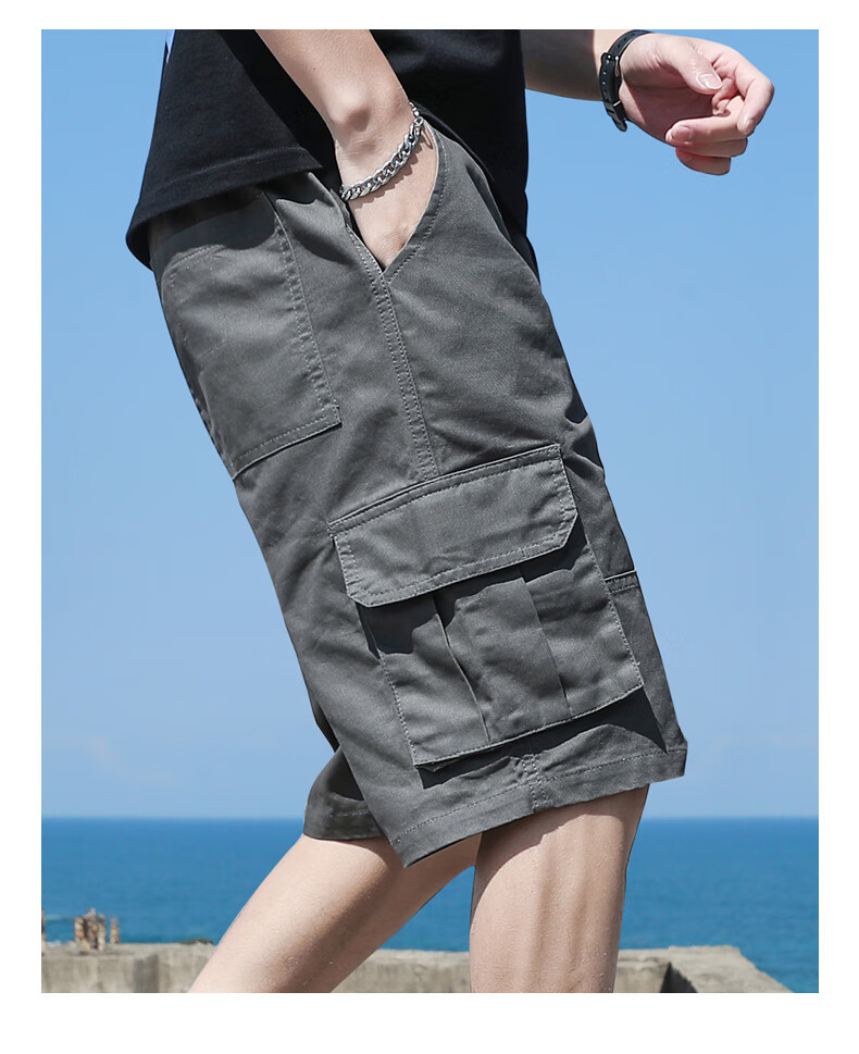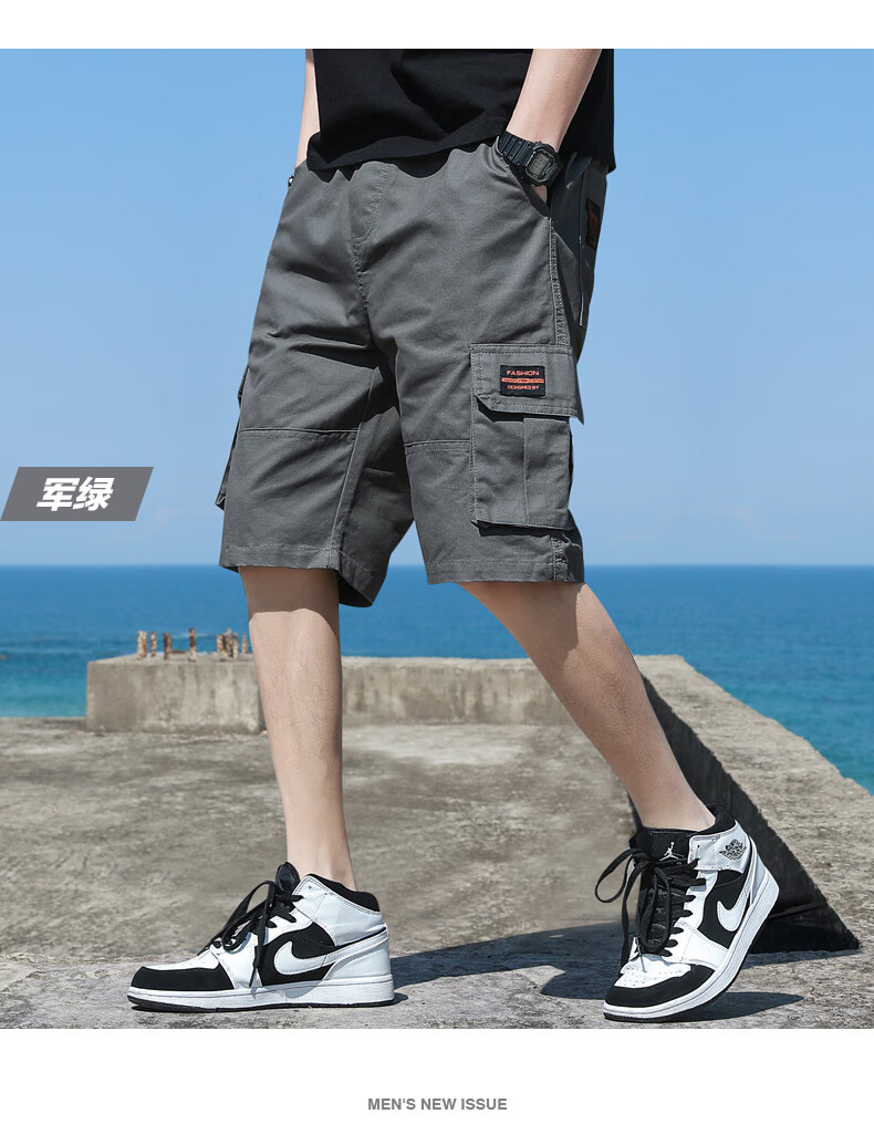 Woodpecker cargo shorts men's summer pure cotton men's outer wear loose pocket five-point medium pants casual sports large pants G19 black single pack 2XL (140-155Jin Jin equals 0.5 kg)