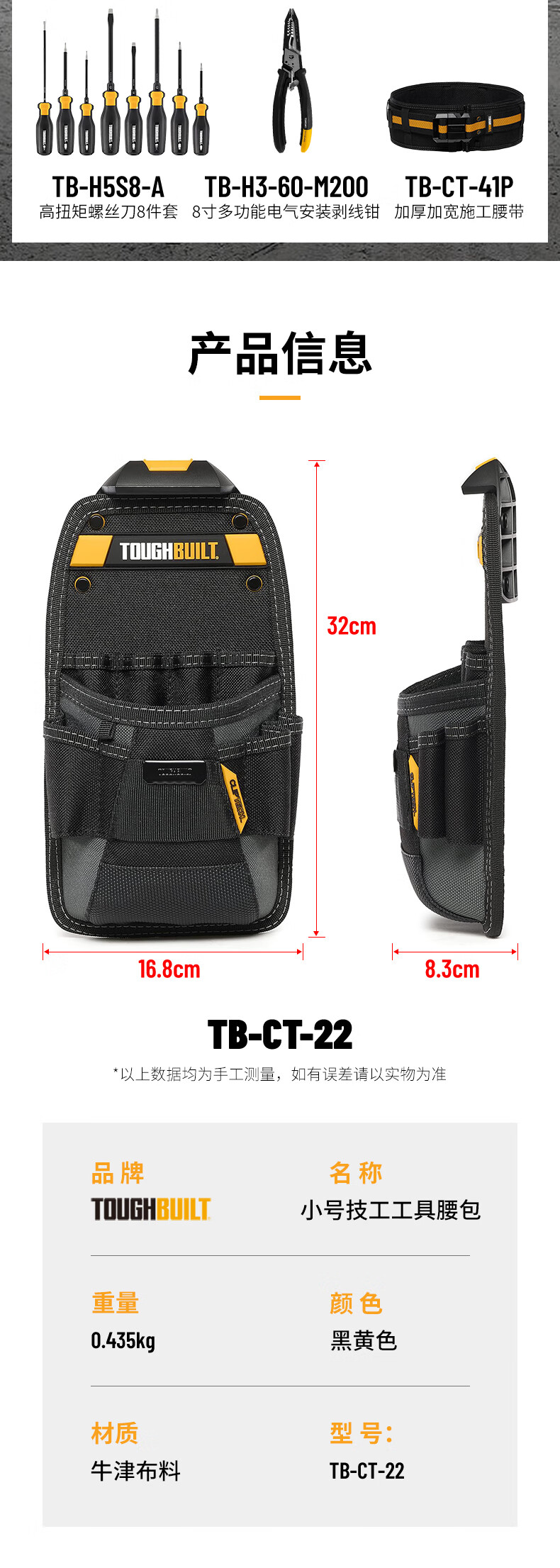 TOUGHBUILT tool quick-release tool bag small mechanic tool belt bag TB-CT-22