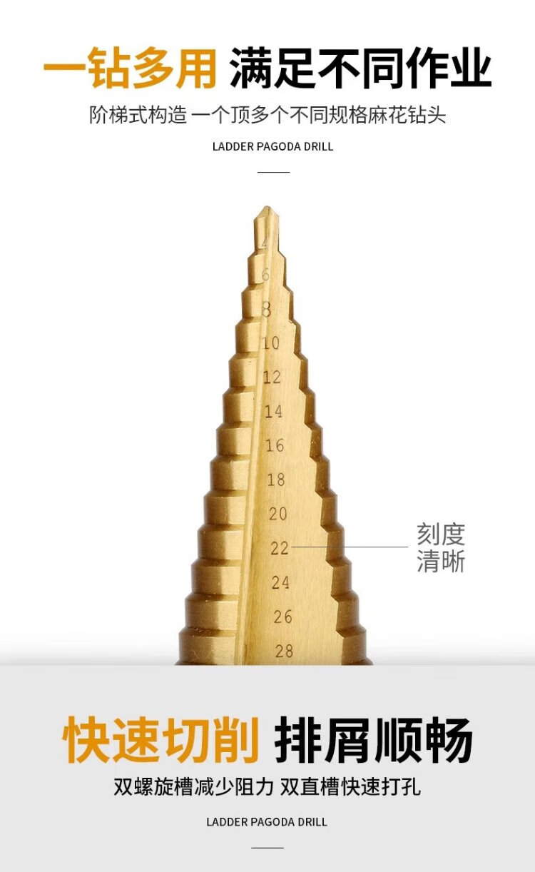 Zhizhou pagoda drill bit hole opener drill bit punching steel plate reaming drill hole opener metal steel special tower-shaped punching steel plate straight slot 4-32mm
