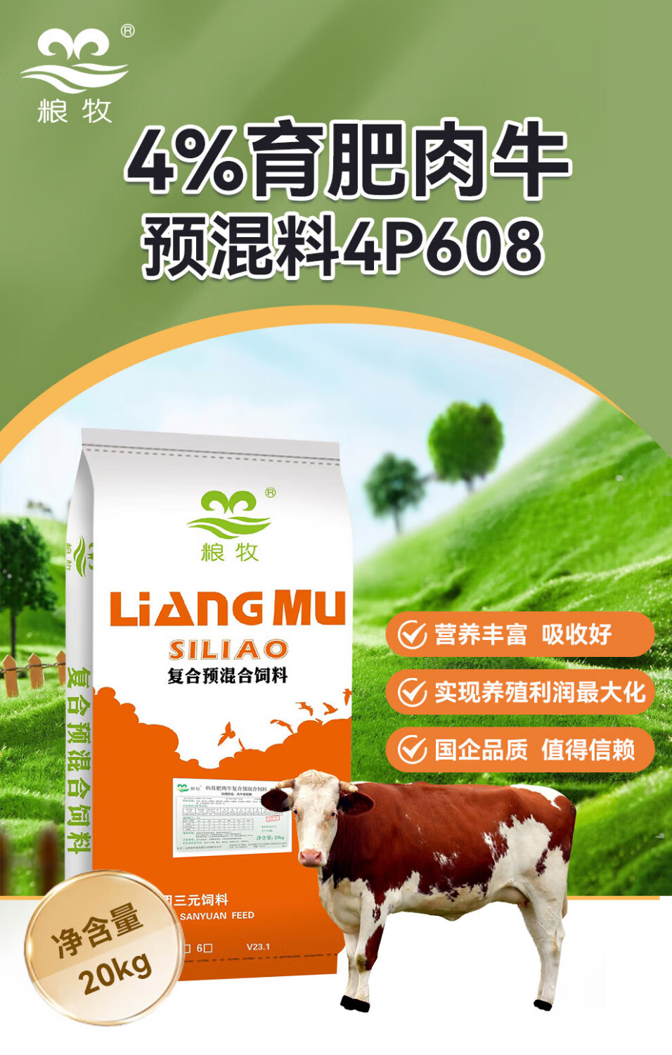 Grain, animal husbandry, grain and animal husbandry three yuan feed, grain and animal husbandry feed, Shounong beef cattle premix, fattening period 4% fattening beef cattle premix