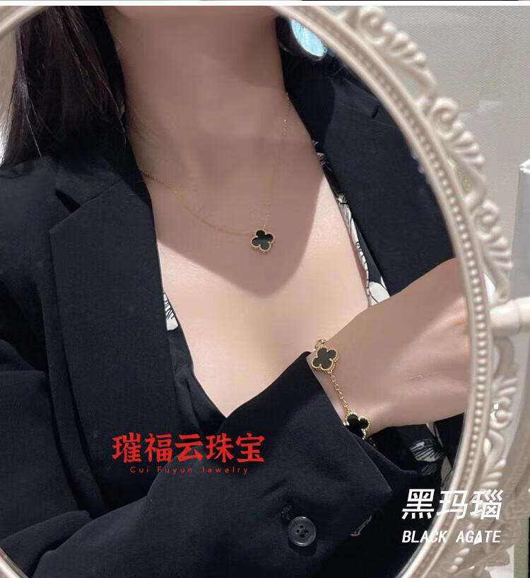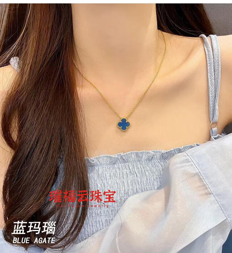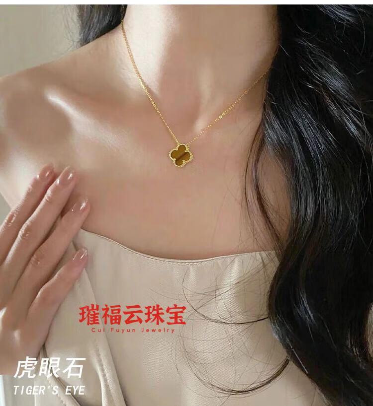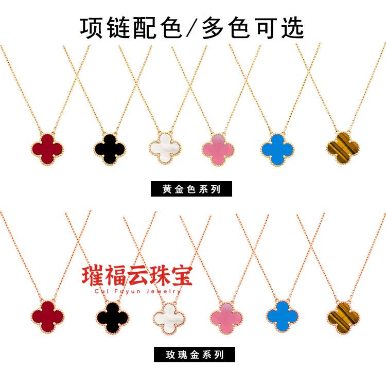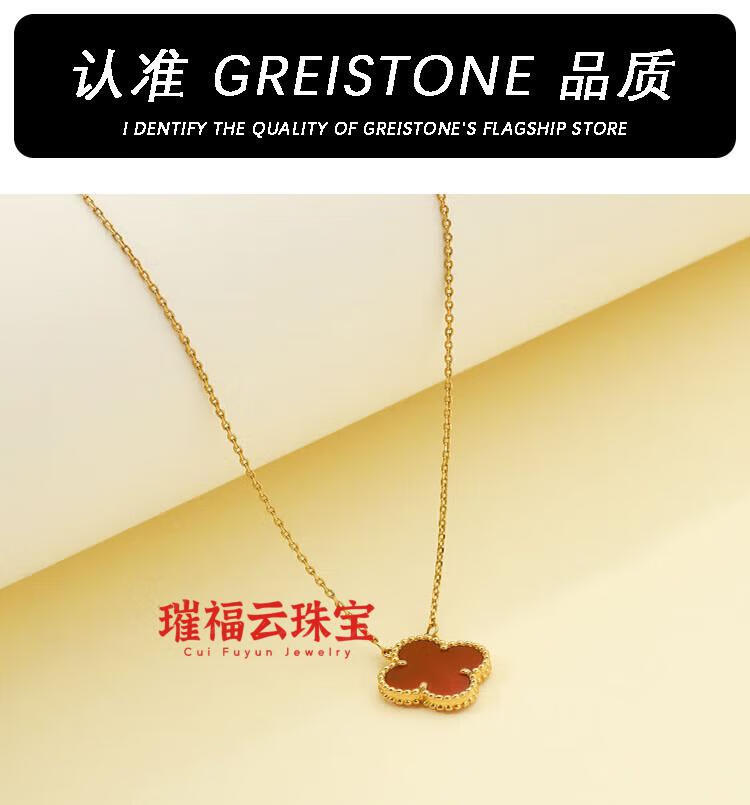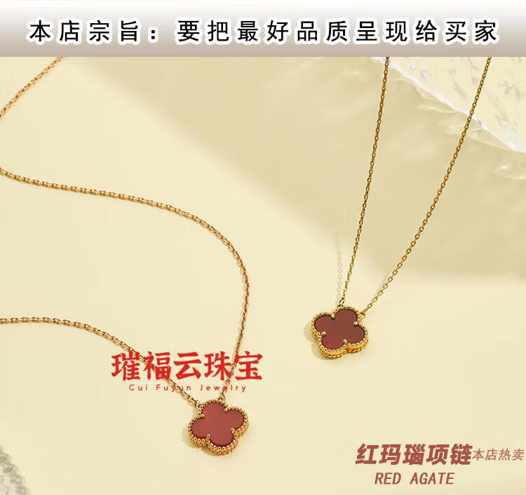 18K gold four-leaf clover pendant necklace women's high version 18K rose gold mother-of-pearl clavicle chain 999 medium necklace - yellow gold red agate