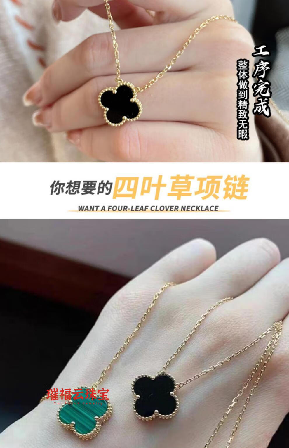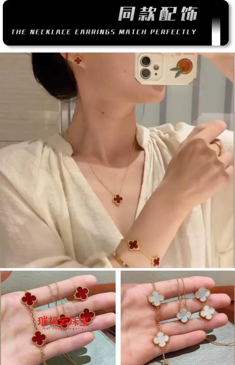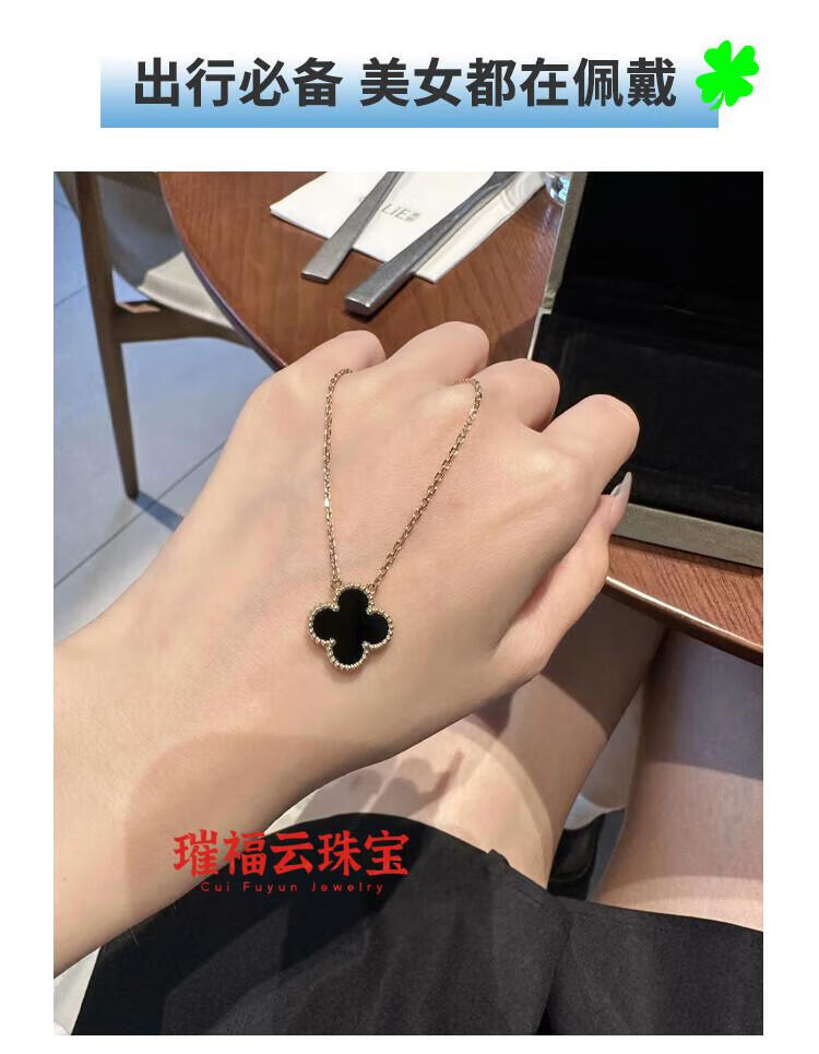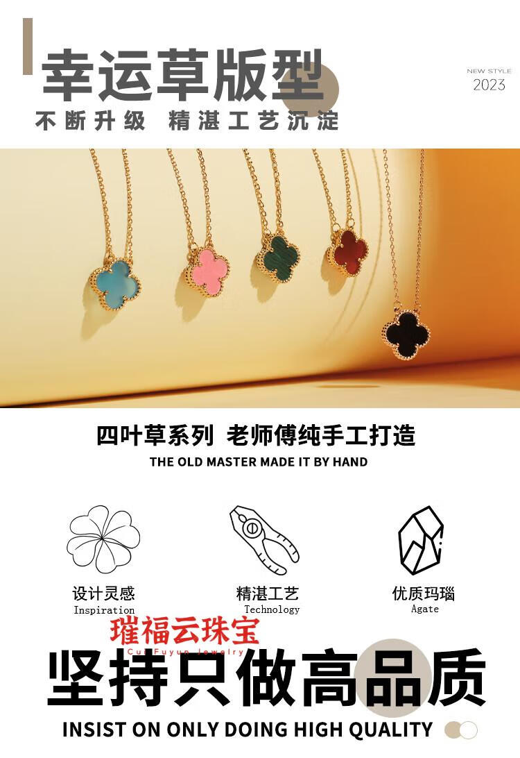 18K gold four-leaf clover pendant necklace women's high version 18K rose gold mother-of-pearl clavicle chain 999 medium necklace - yellow gold red agate