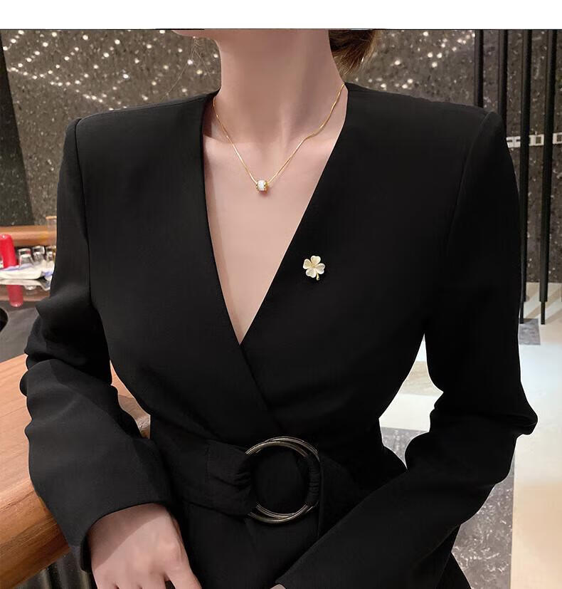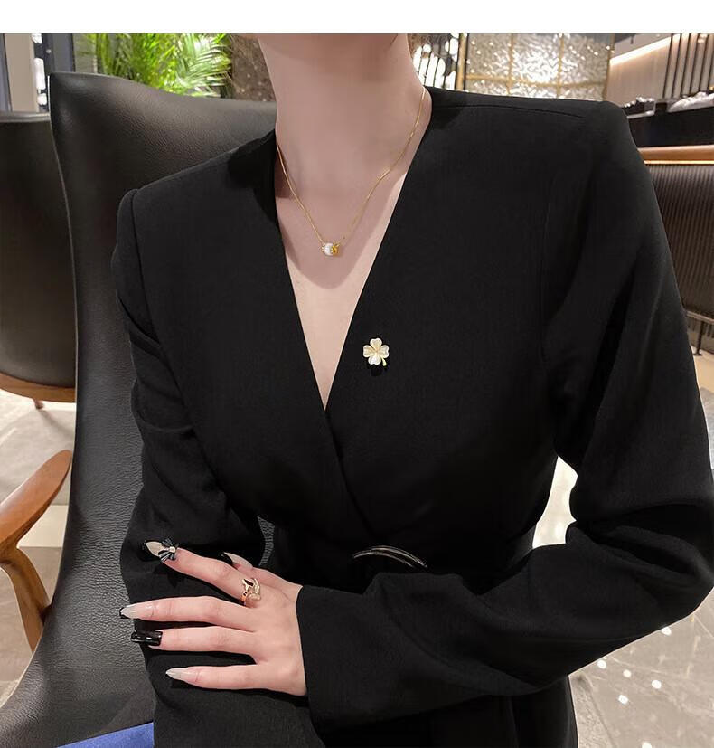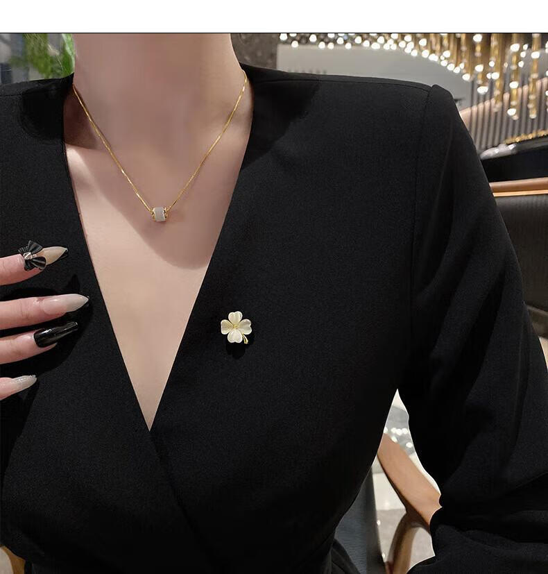 MIEG small four-leaf clover brooch for women, anti-exposure buckle, simple fixed clothing buckle, corsage accessories, gift for girlfriend, four-leaf clover small brooch