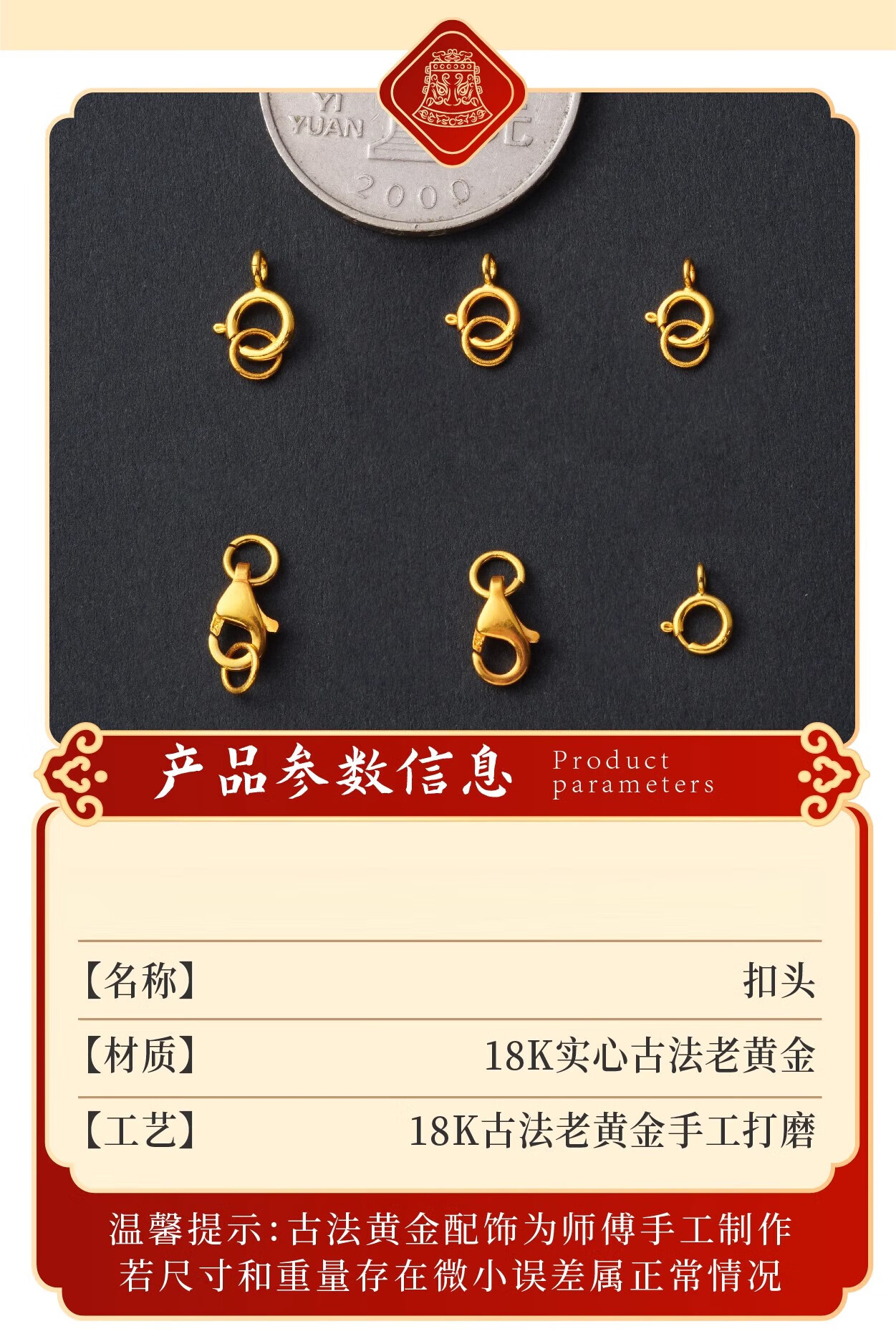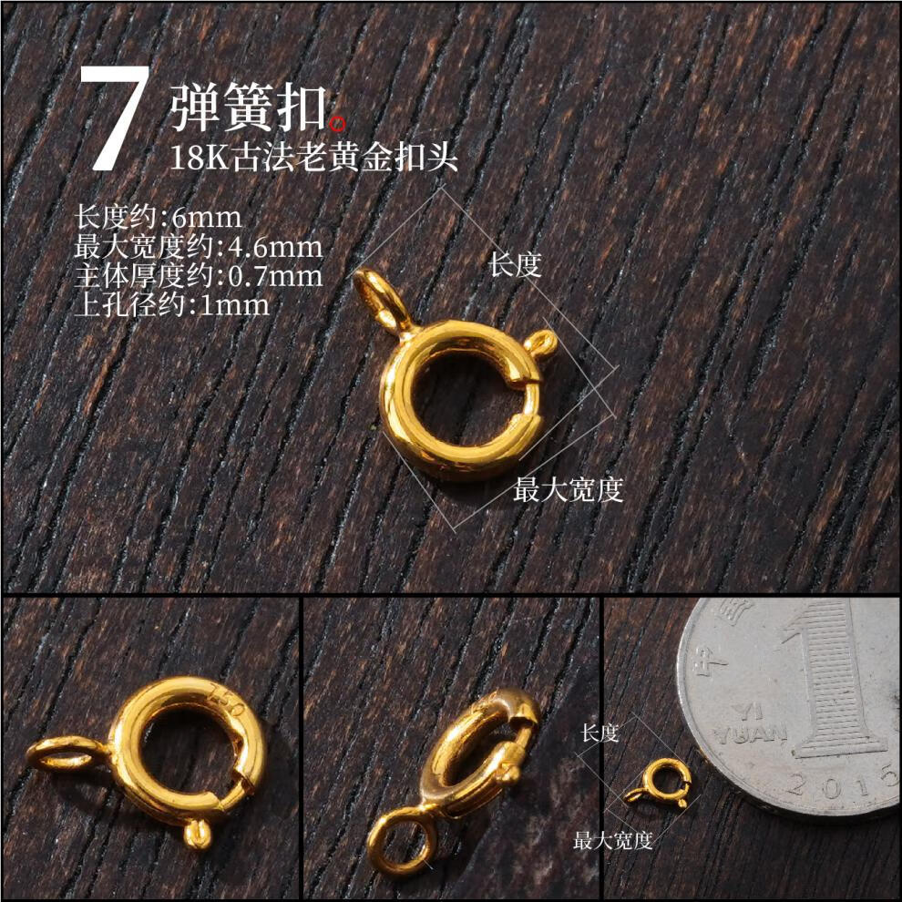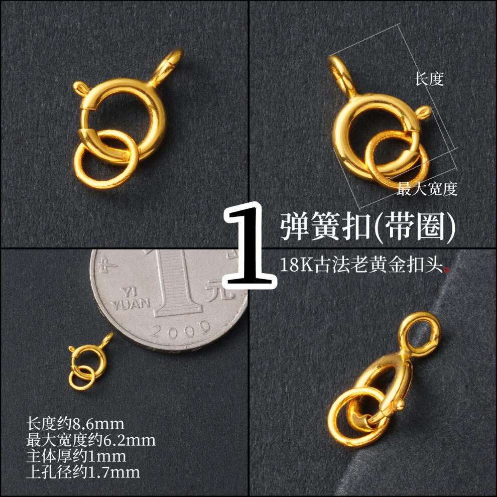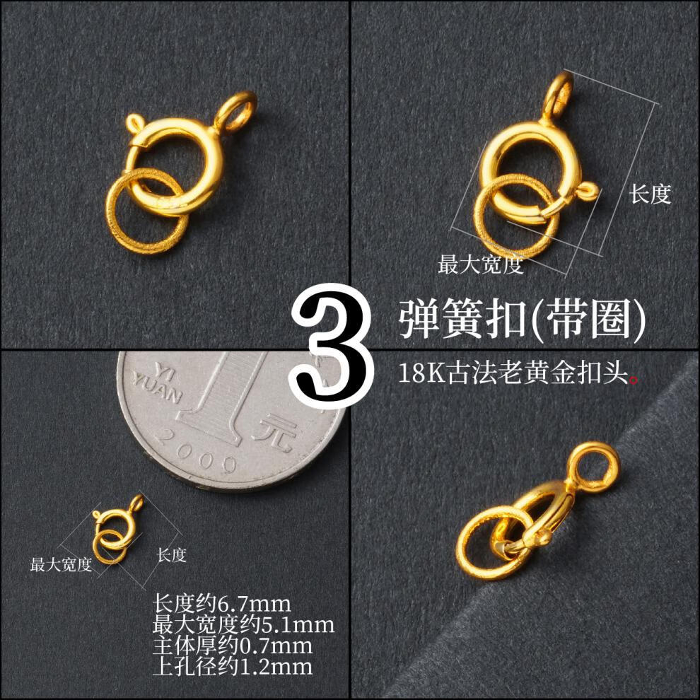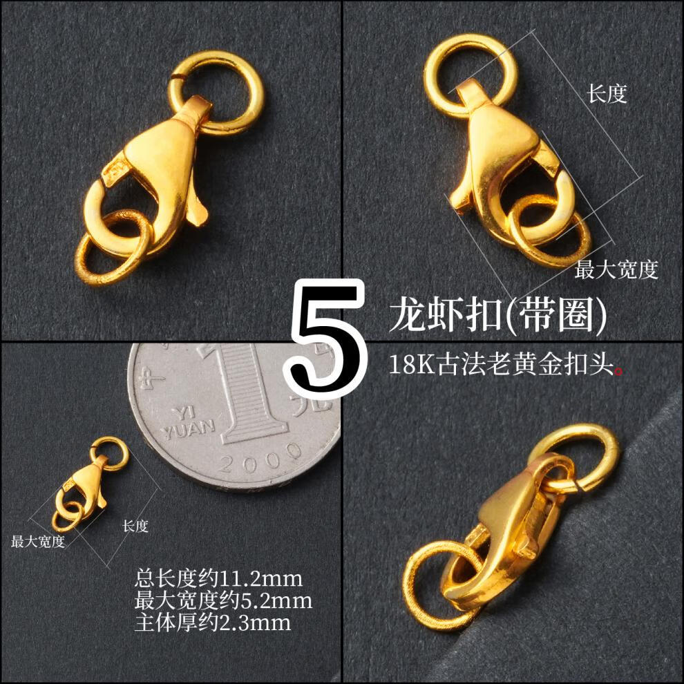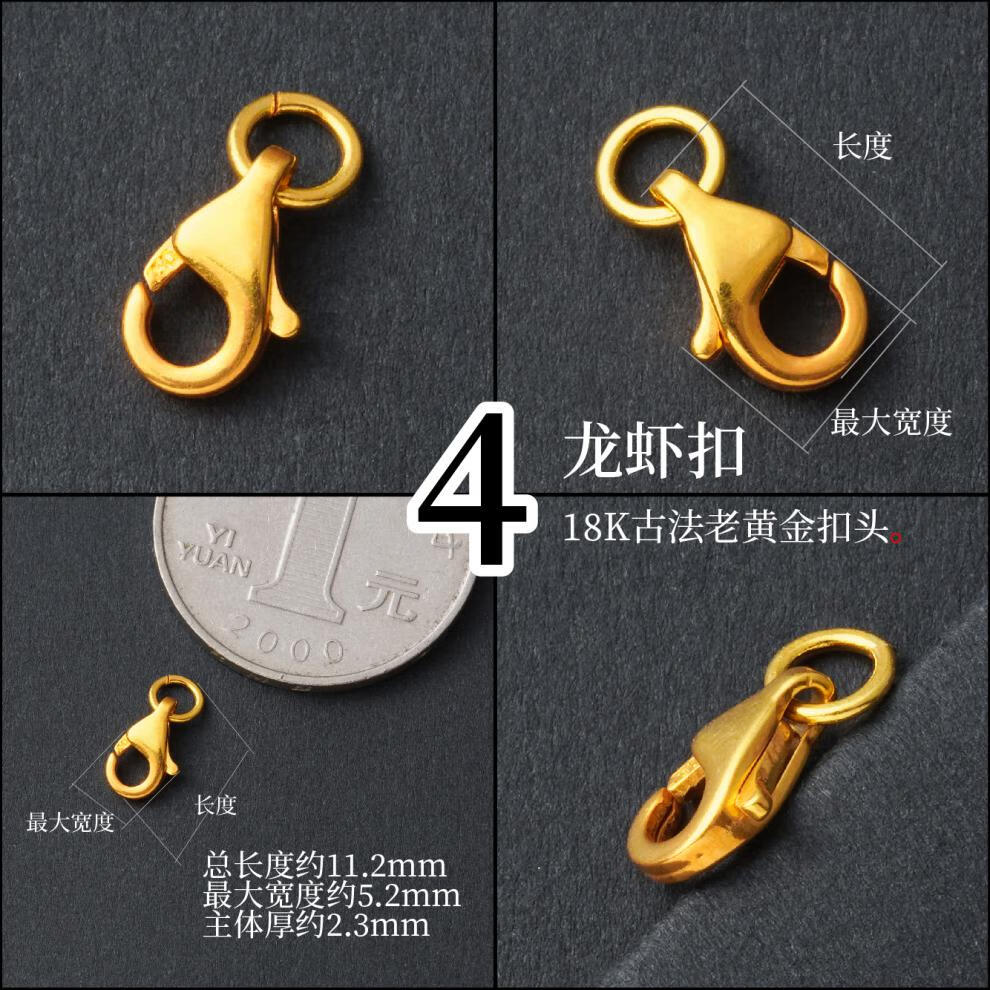 DL 1998 Fat Donglai same style pendant buckle head 18k gold thickened spring clasp lobster clasp necklace buckle pearl diy accessories gold buckle head and tail ring defaults to open ring, belt ring is closed