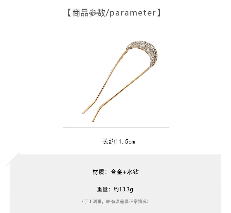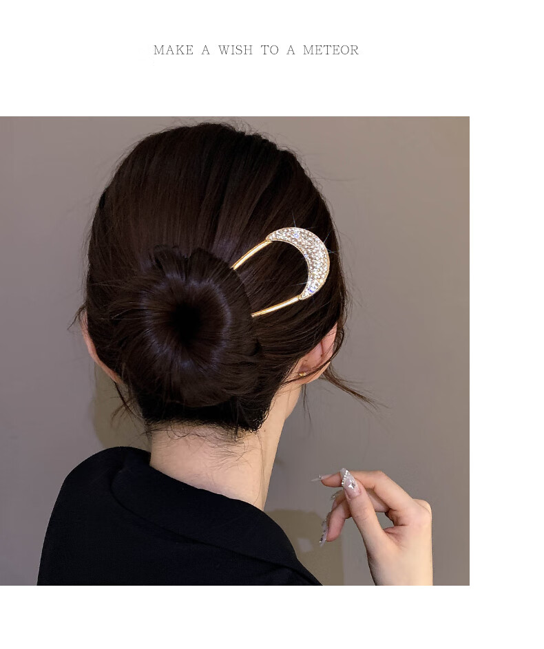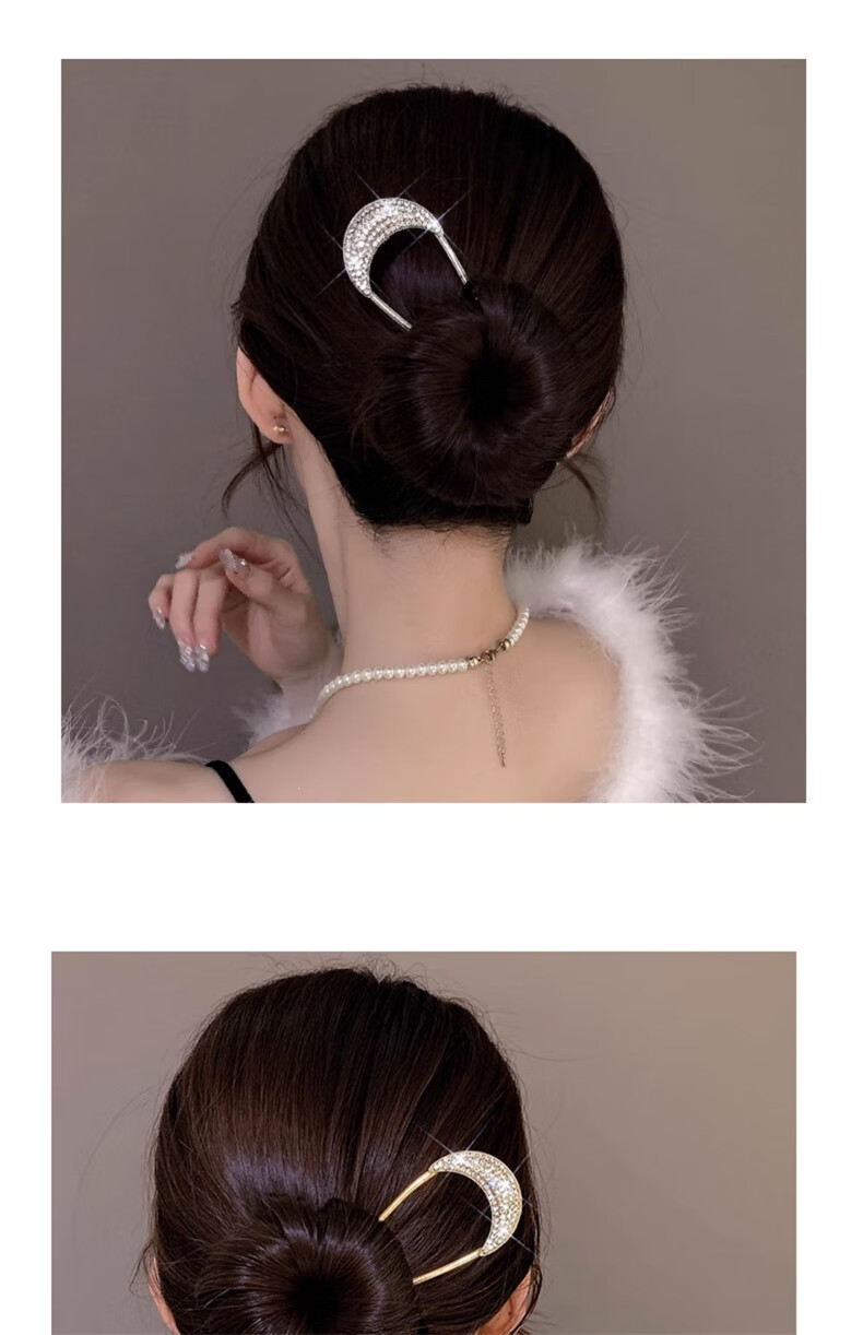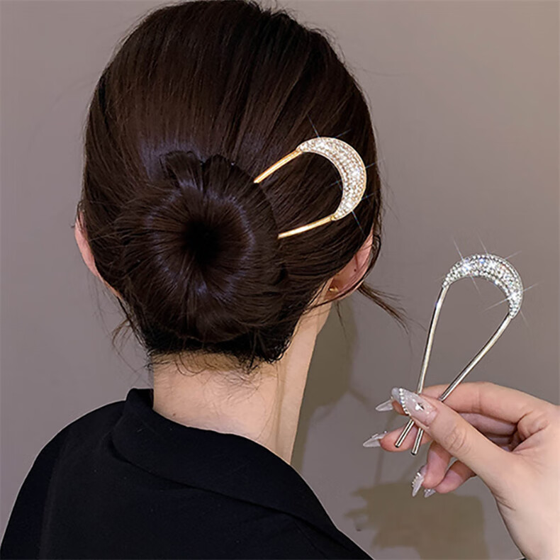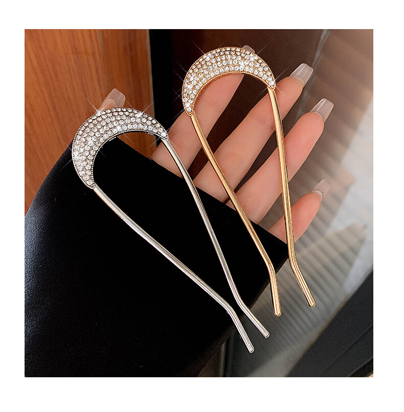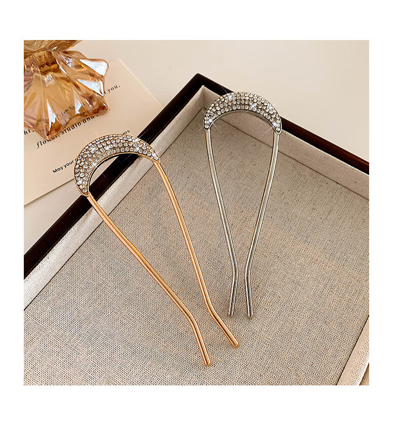 Zhuo Keke rhinestone high-end u-shaped hairpin for women new ancient style hairpin Chinese daily hairpin zhan hairpin u-shaped clip hairpin summer golden crescent full diamond U-shaped hairpin