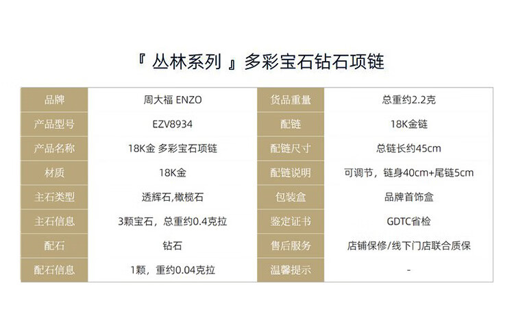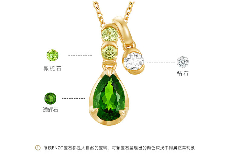 Chow Tai Fook ENZO Jungle Series 18K Gold Diopside Peridot Diamond Necklace for Women EZV8934 40cm