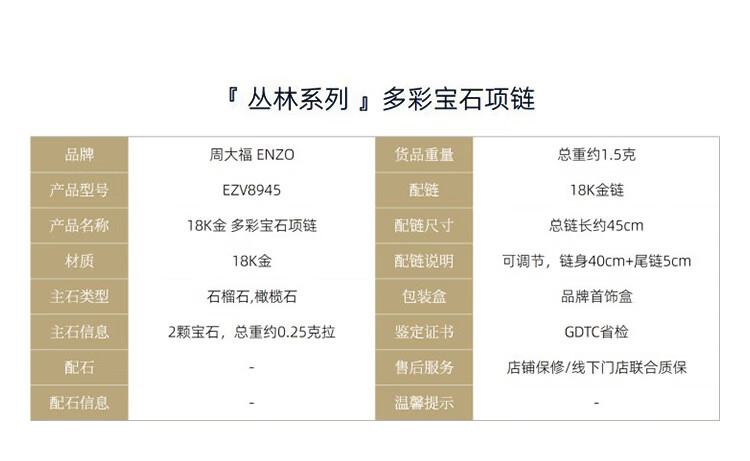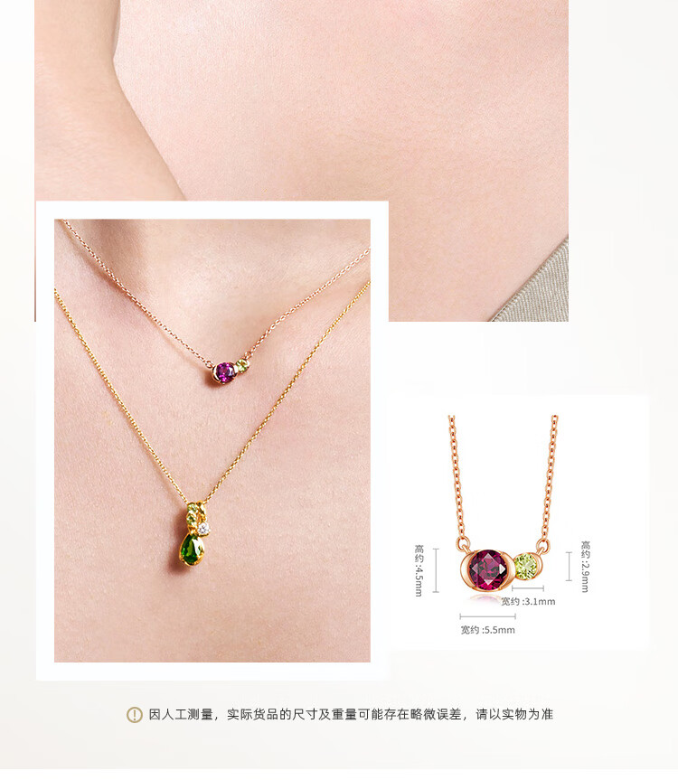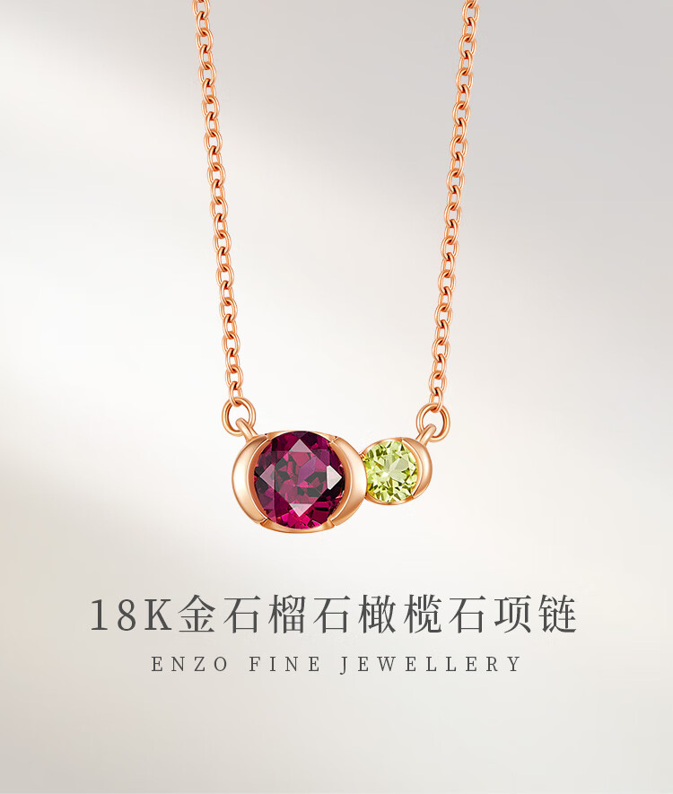 Chow Tai Fook ENZO Jungle Series 18K Gold Garnet Peridot Necklace for Women EZV8945 Birthday Gift 40cm
