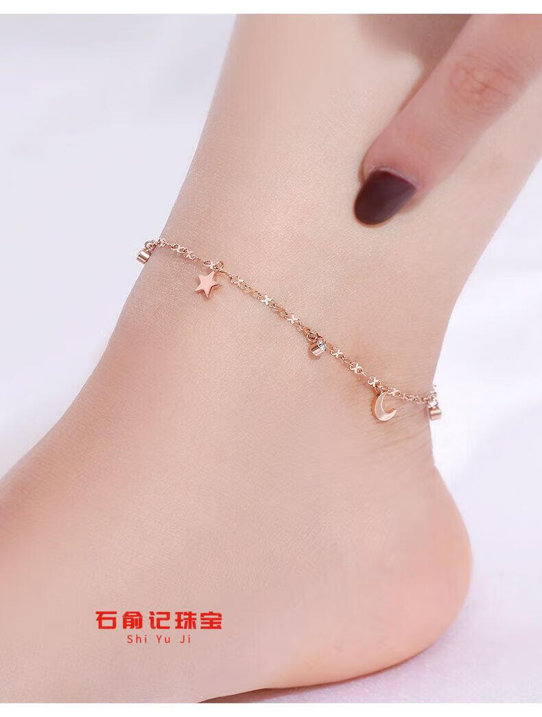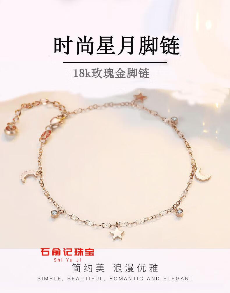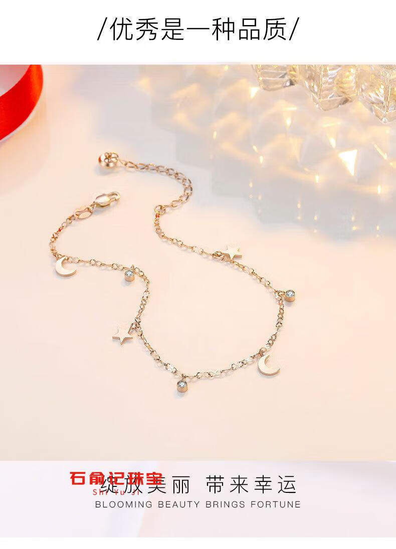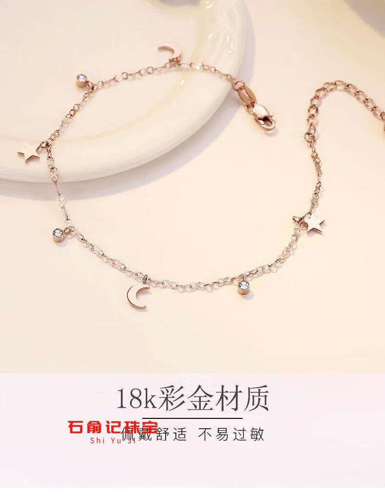 Fat Donglai's same 18k rose gold anklet 18K gold star and moon anklet for women AU750 gold inlaid with diamonds gold chain feeling light K yellow l gold star and moon anklet